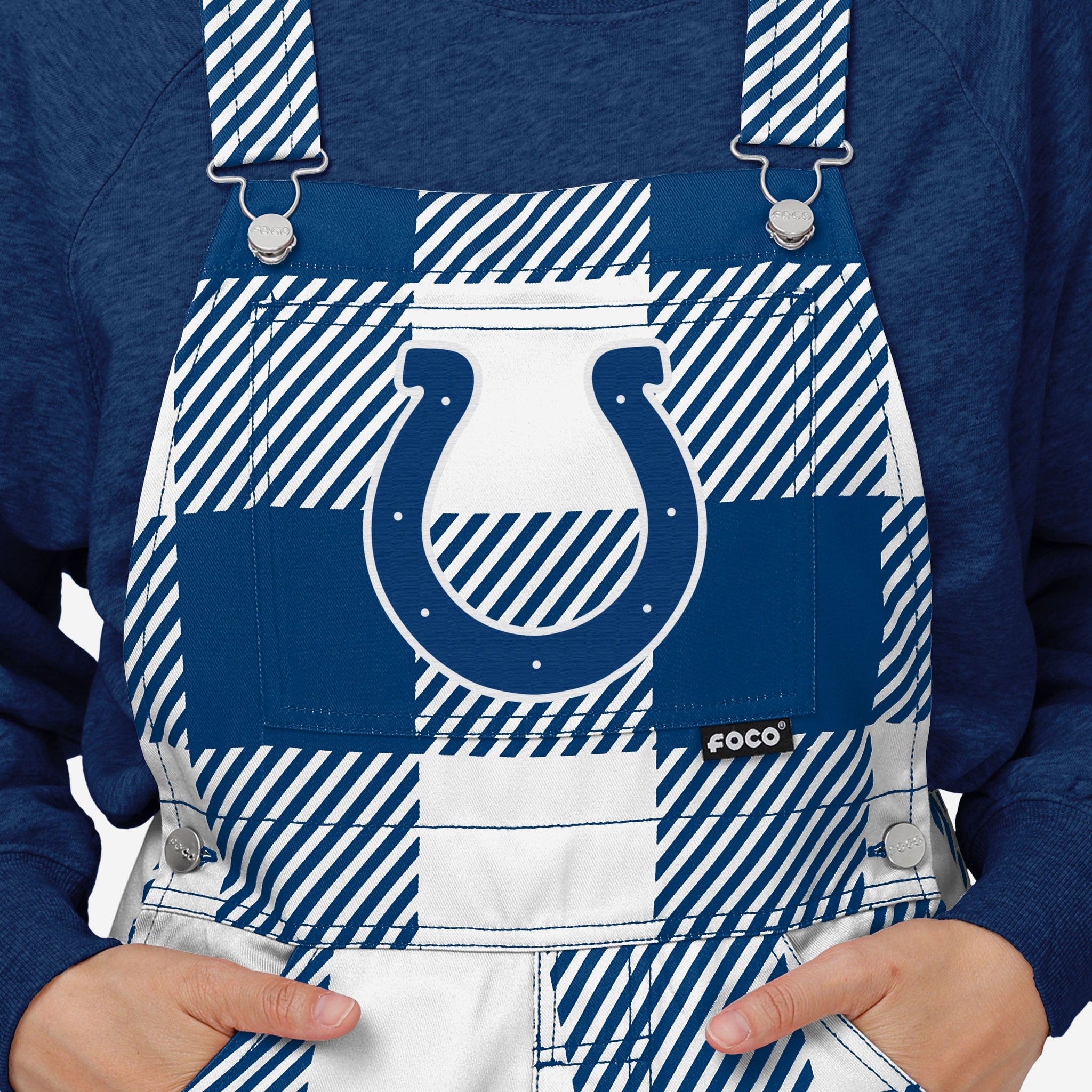 Indianapolis Colts Womens Plaid Bib Overalls FOCO XS - FOCO.com