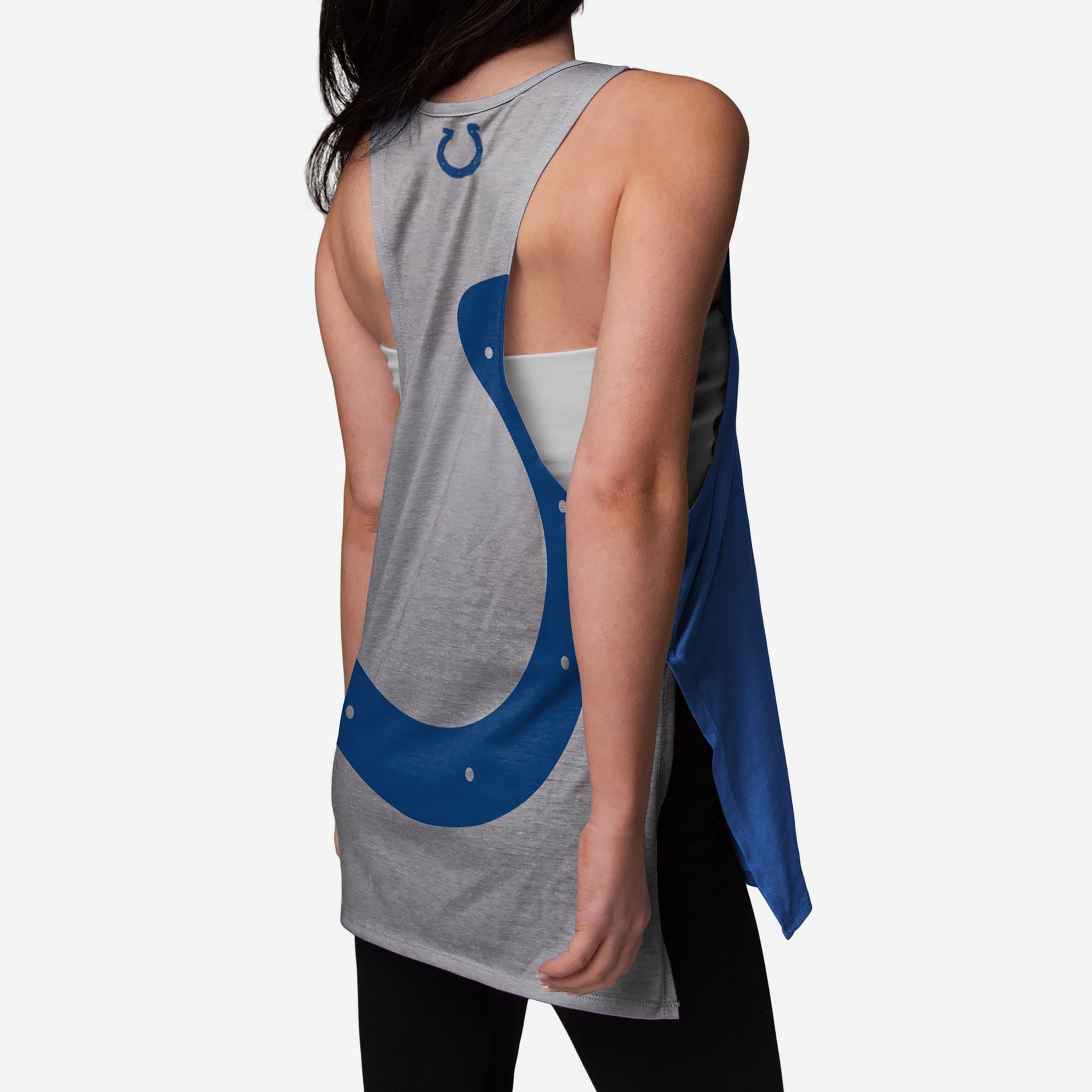 Bold fans like you need to boldly show off your fandom. That's where this Indianapolis Colts Women's Side-Tie Sleeveless Top comes in. It has your team colors on display on the front and the back, because two ways to show off your team spirit are better than one.