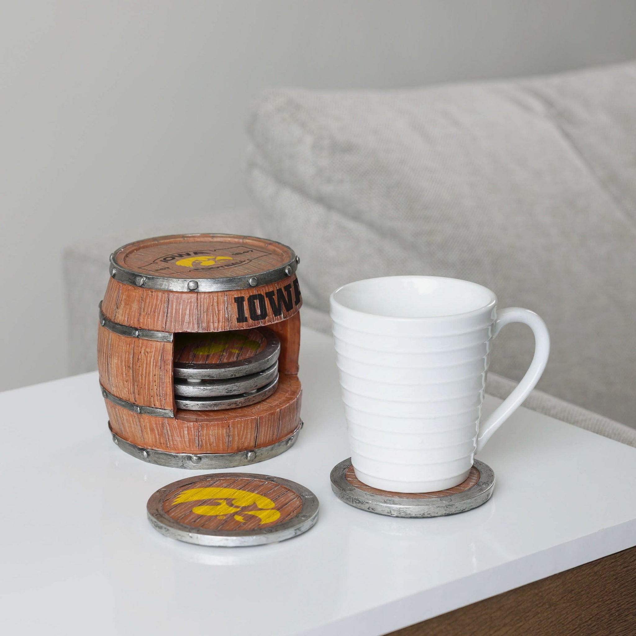 Championship rings? Yay! Unsightly rings on the coffee table? Boo! Break out the beverages worry-free and get ready for every watch party with this Iowa Hawkeyes 5 Pack Barrel Coaster Set.