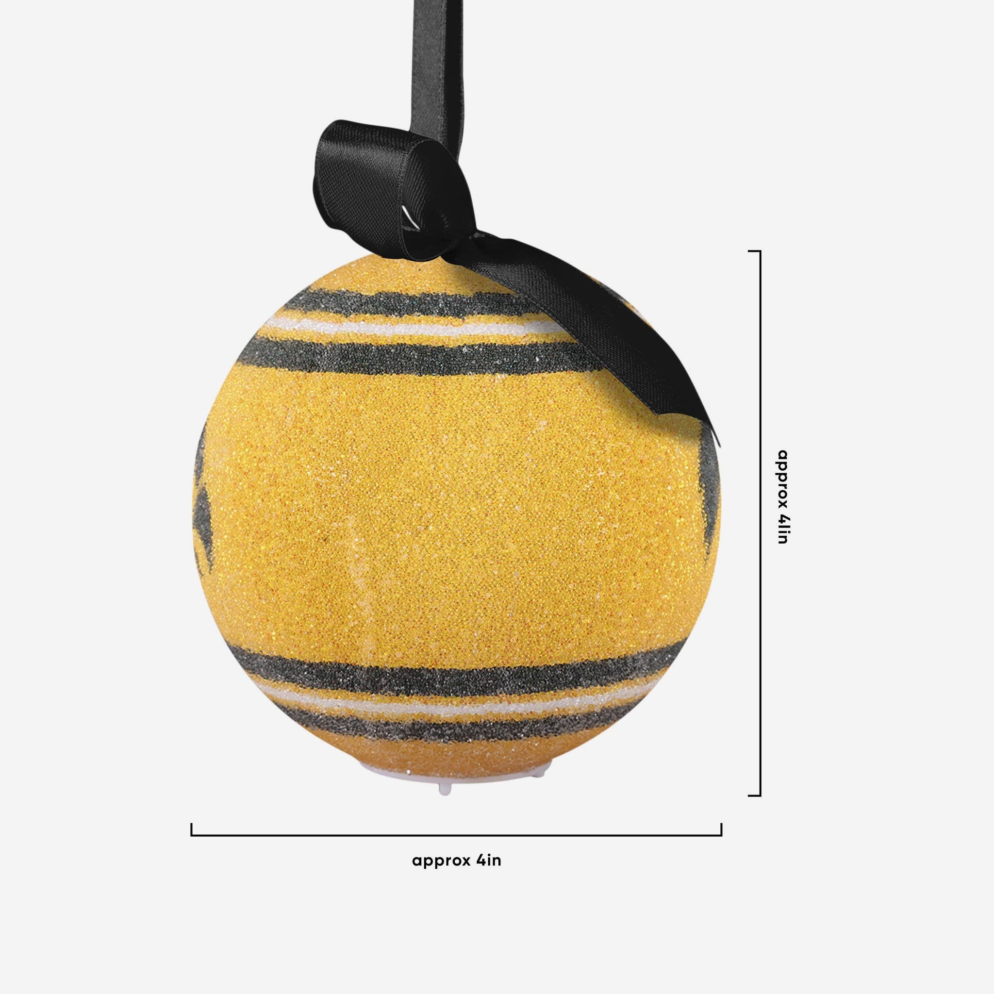 • Team-colored stripe accents on top and bottom of ornament to make your tree look extra awesome