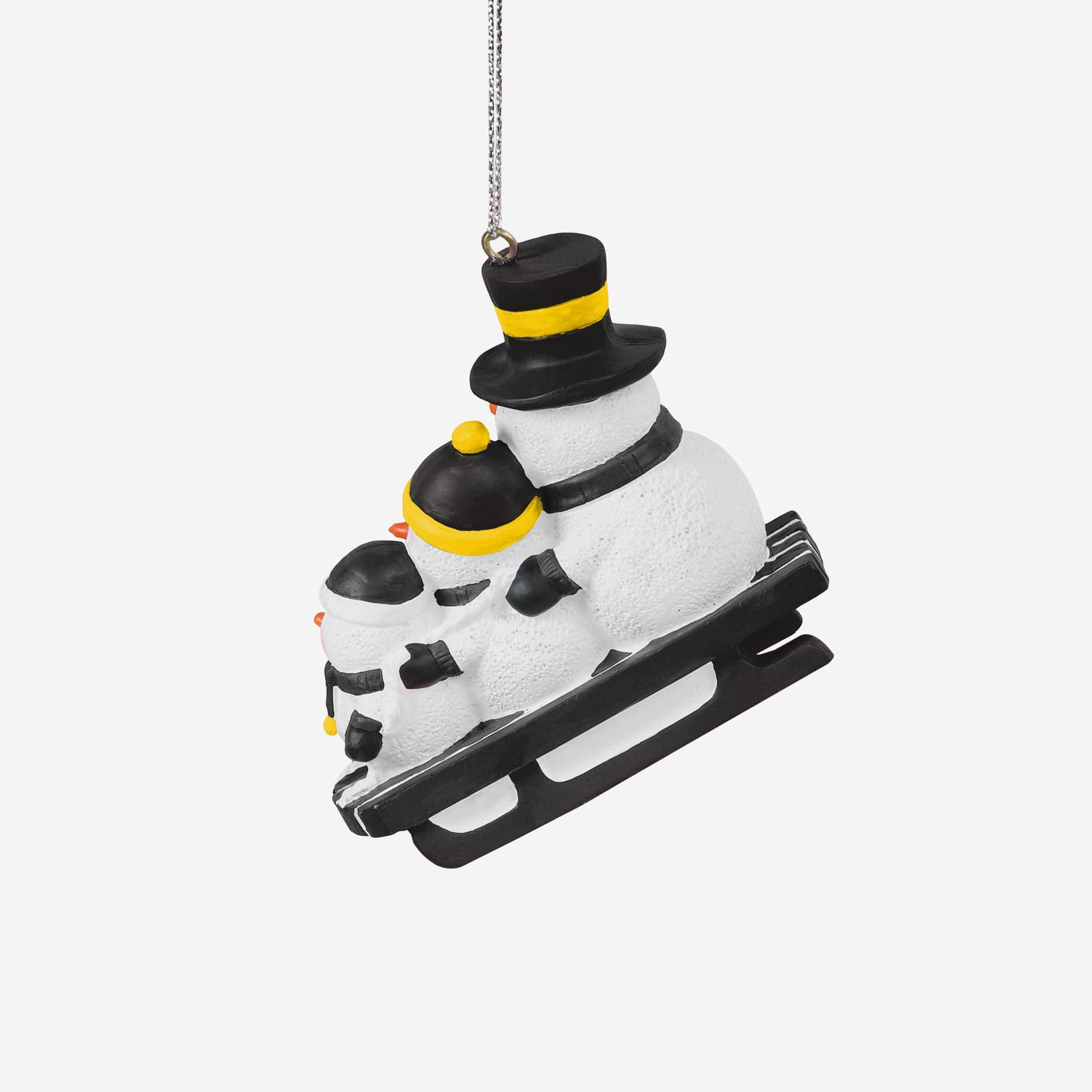• Portrays three snowmen riding team-colored sled, repping the team in style