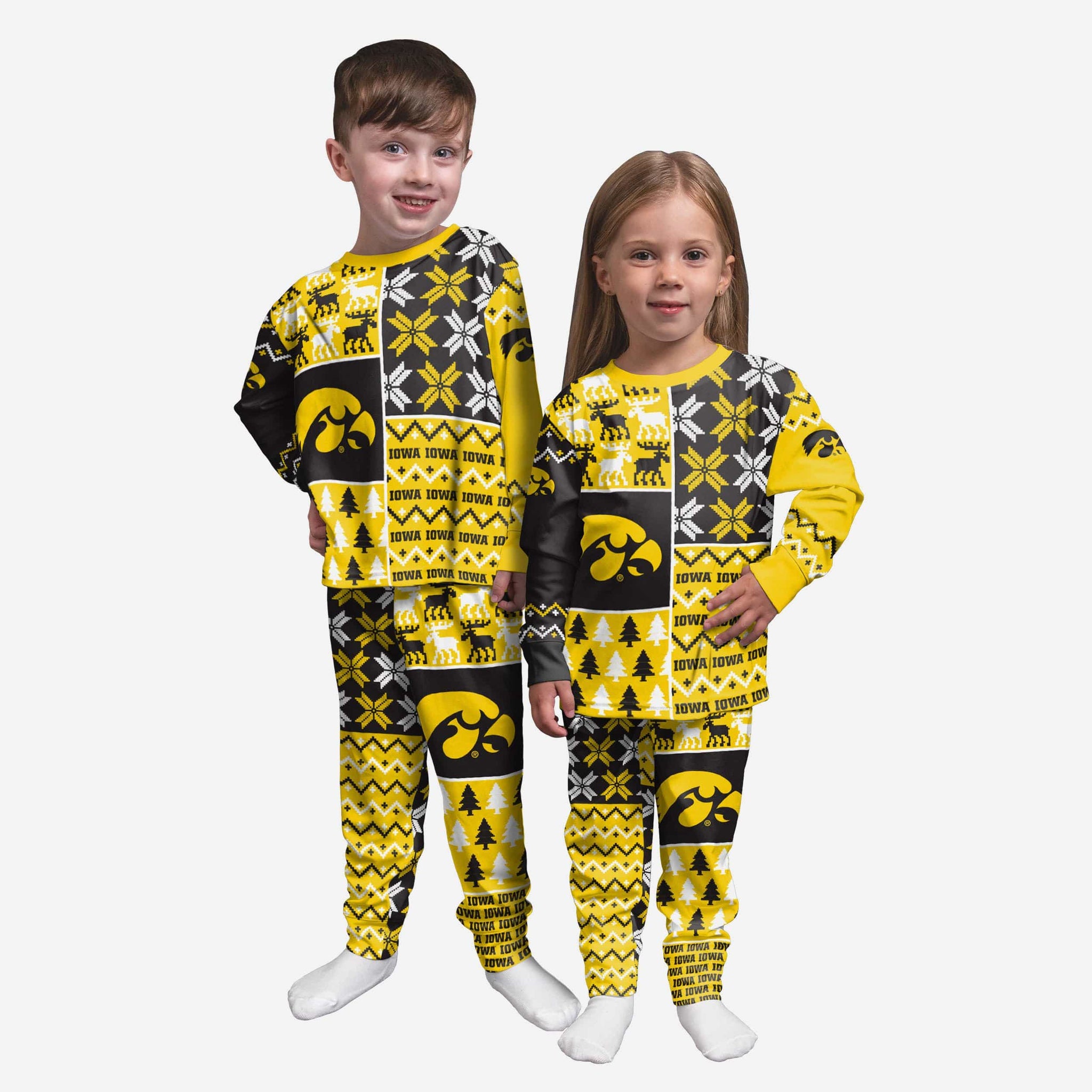 Get some matching family pajamas and dress to impress this holiday season! You won't want to miss these kids' team pajamas! These youth PJ's are comfortable and show off your team spirit in the form of some sweet youth jammies. Introducing the Iowa Hawkeyes Toddler Busy Block Family Holiday Pajamas! Don't forget to take your holiday photo with the whole family wearing matching Christmas pajamas!