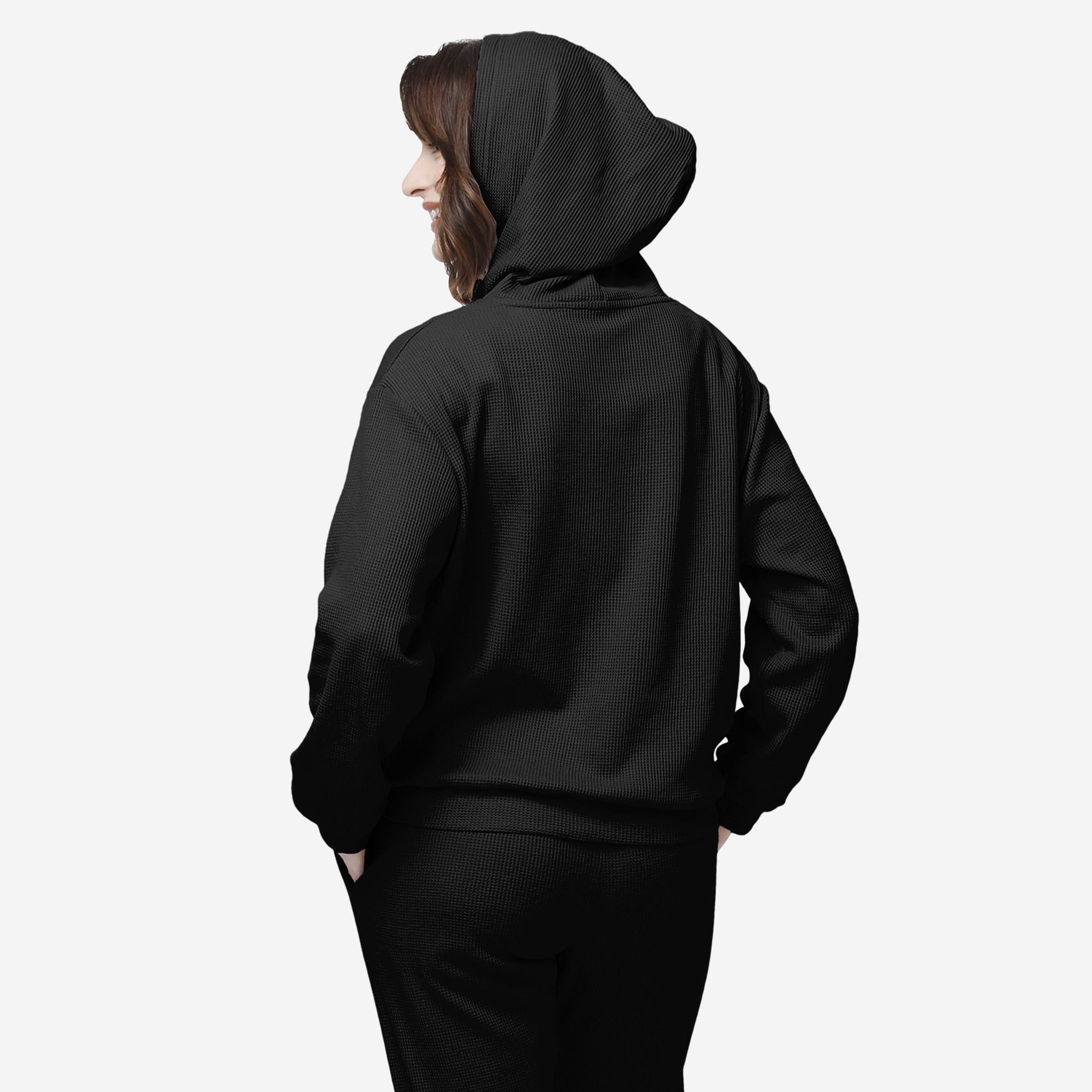 - Durable, waffle-knit sweatshirt construction for warmth and comfort