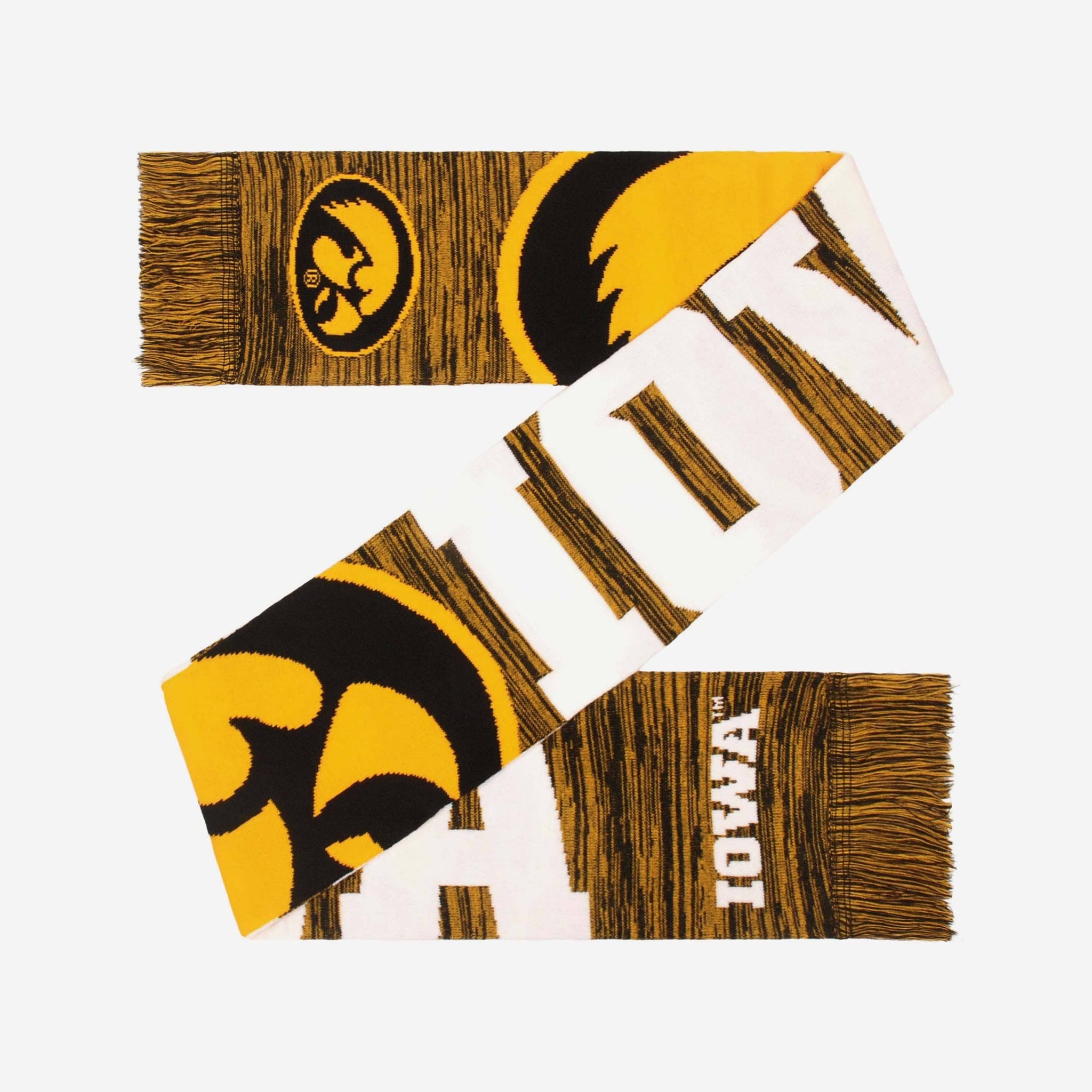 It might be a little chilly outside, but cold weather's got nothing on you, because you've got your fandom to keep you warm. More specifically, this Iowa Hawkeyes Wordmark Big Logo Colorblend Scarf will keep you warm while looking cool this winter.