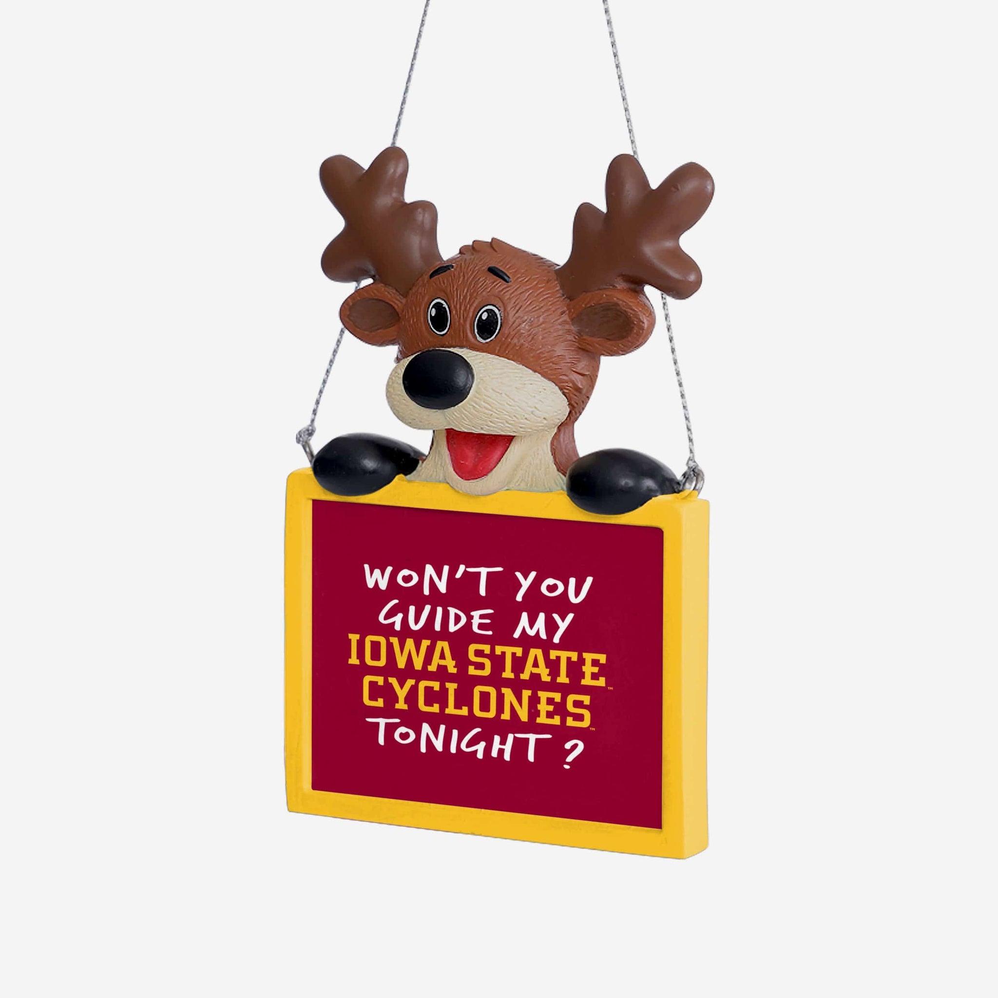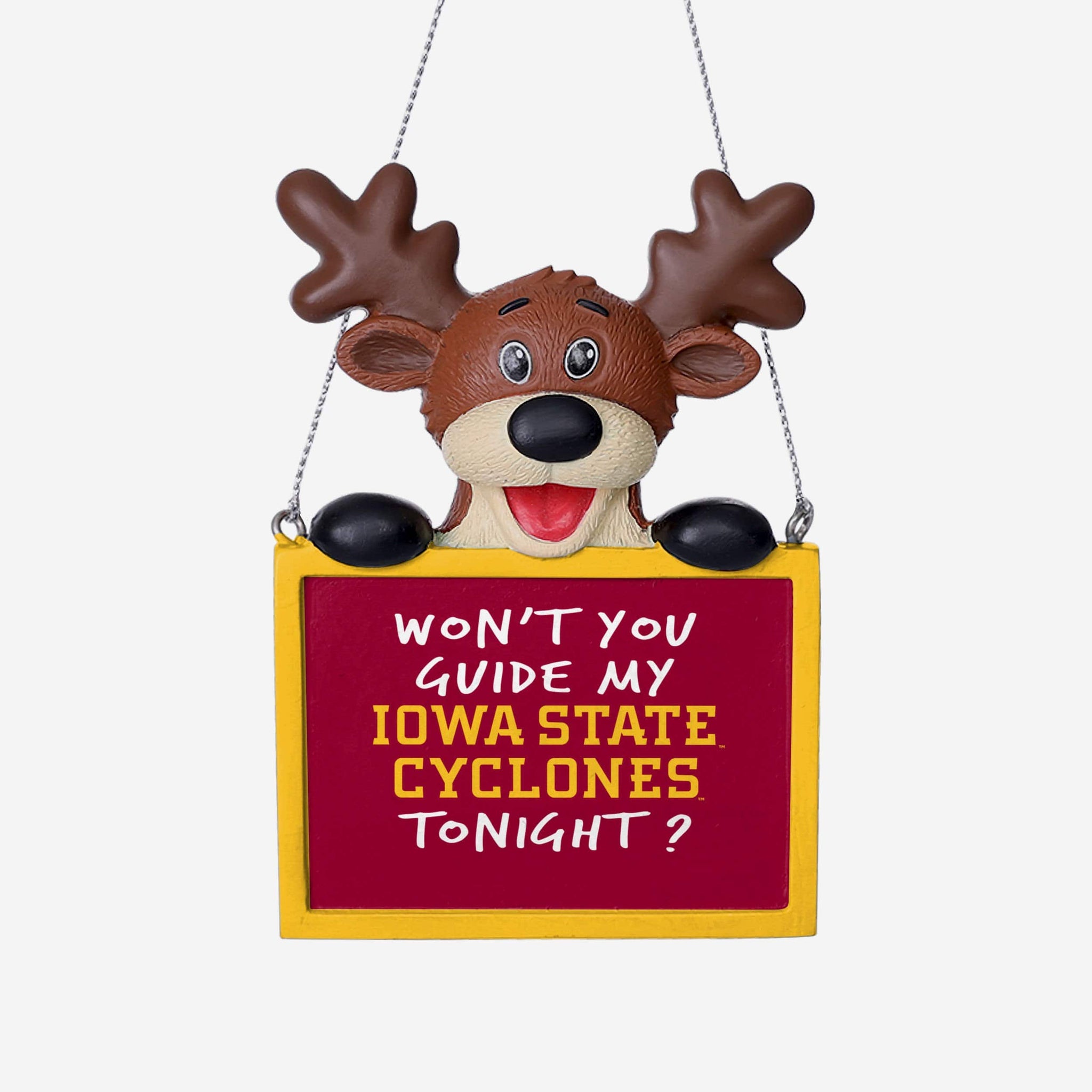 Iowa State Cyclones Reindeer With Sign Ornament FOCO - FOCO.com