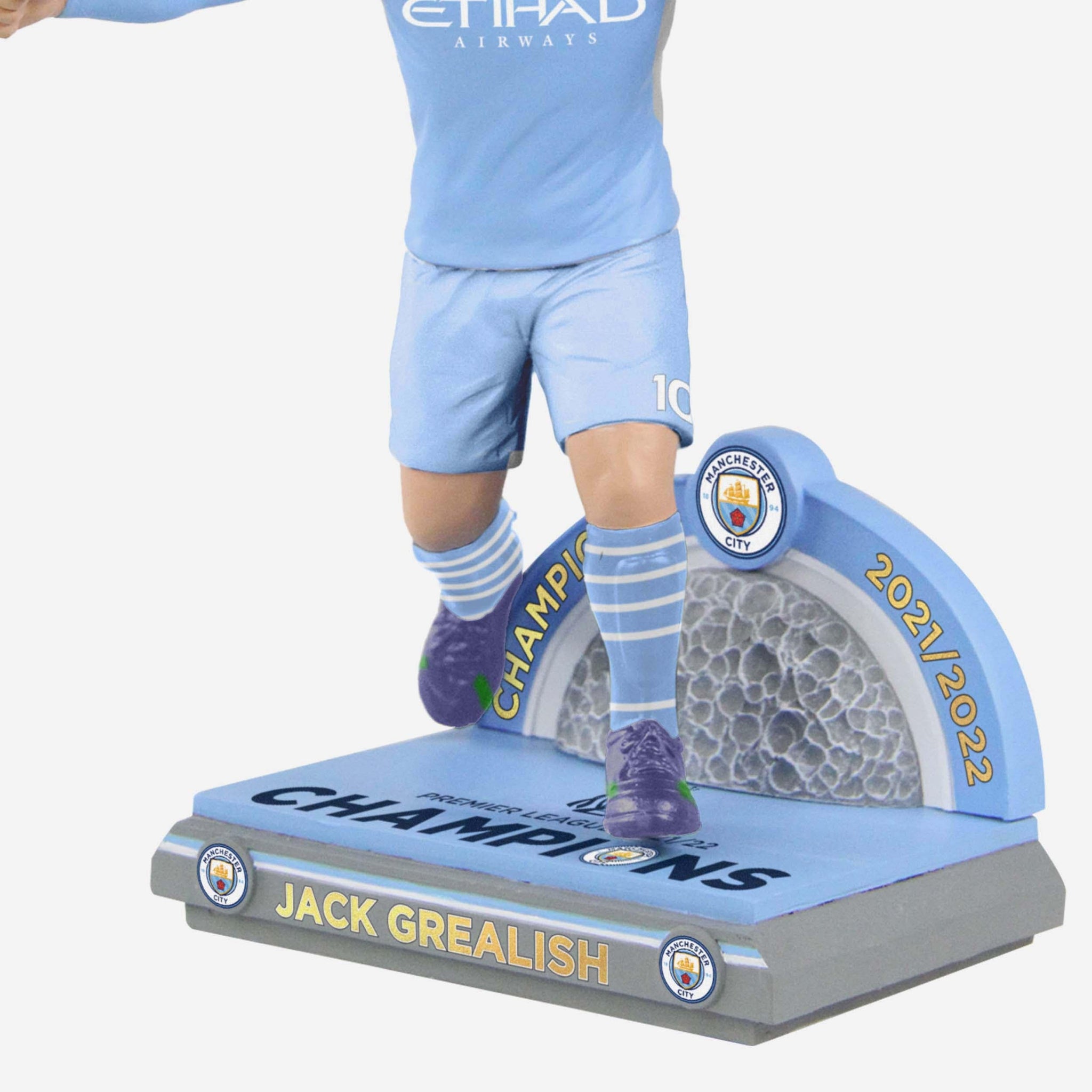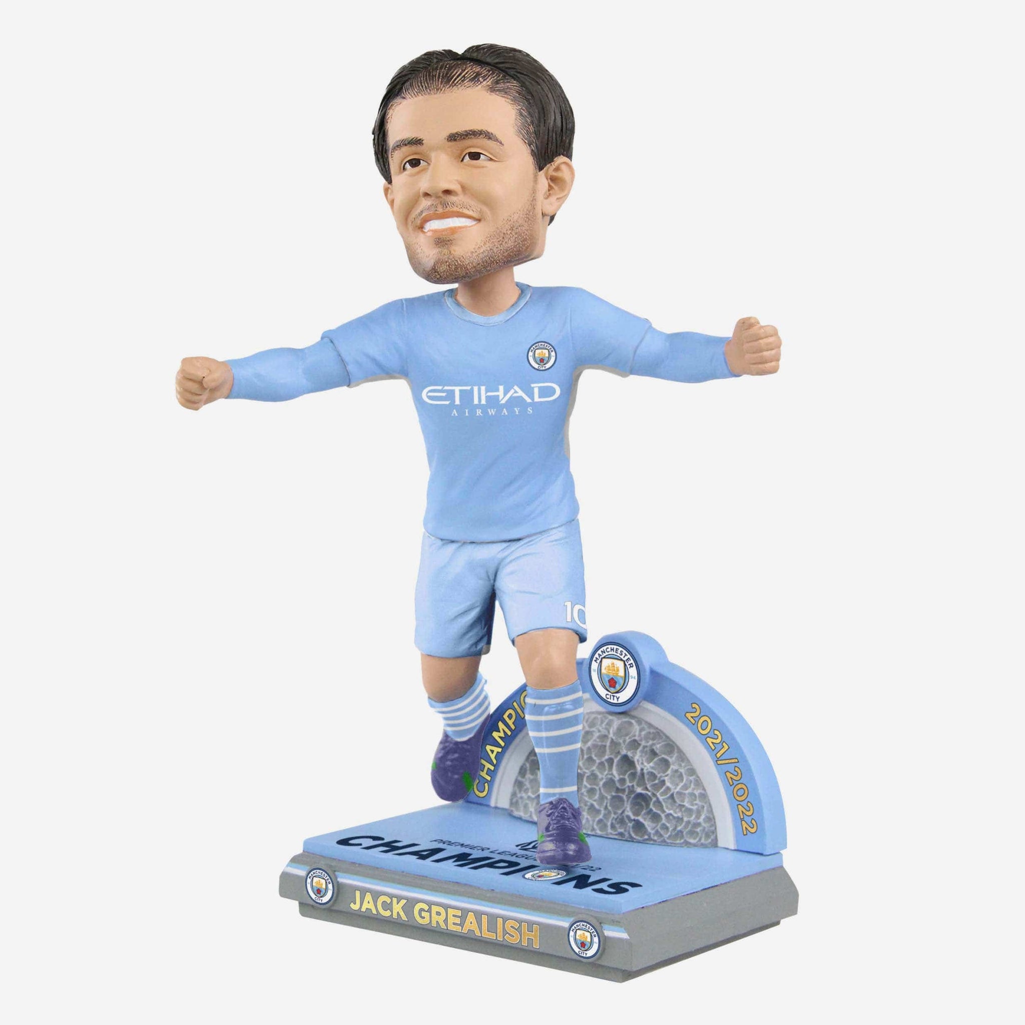 You may not have been able to celebrate with your favorite superstar on the pitch, but you CAN celebrate with him in your collection thanks to this Jack Grealish Manchester City FC Premier League Champions Bobblehead!