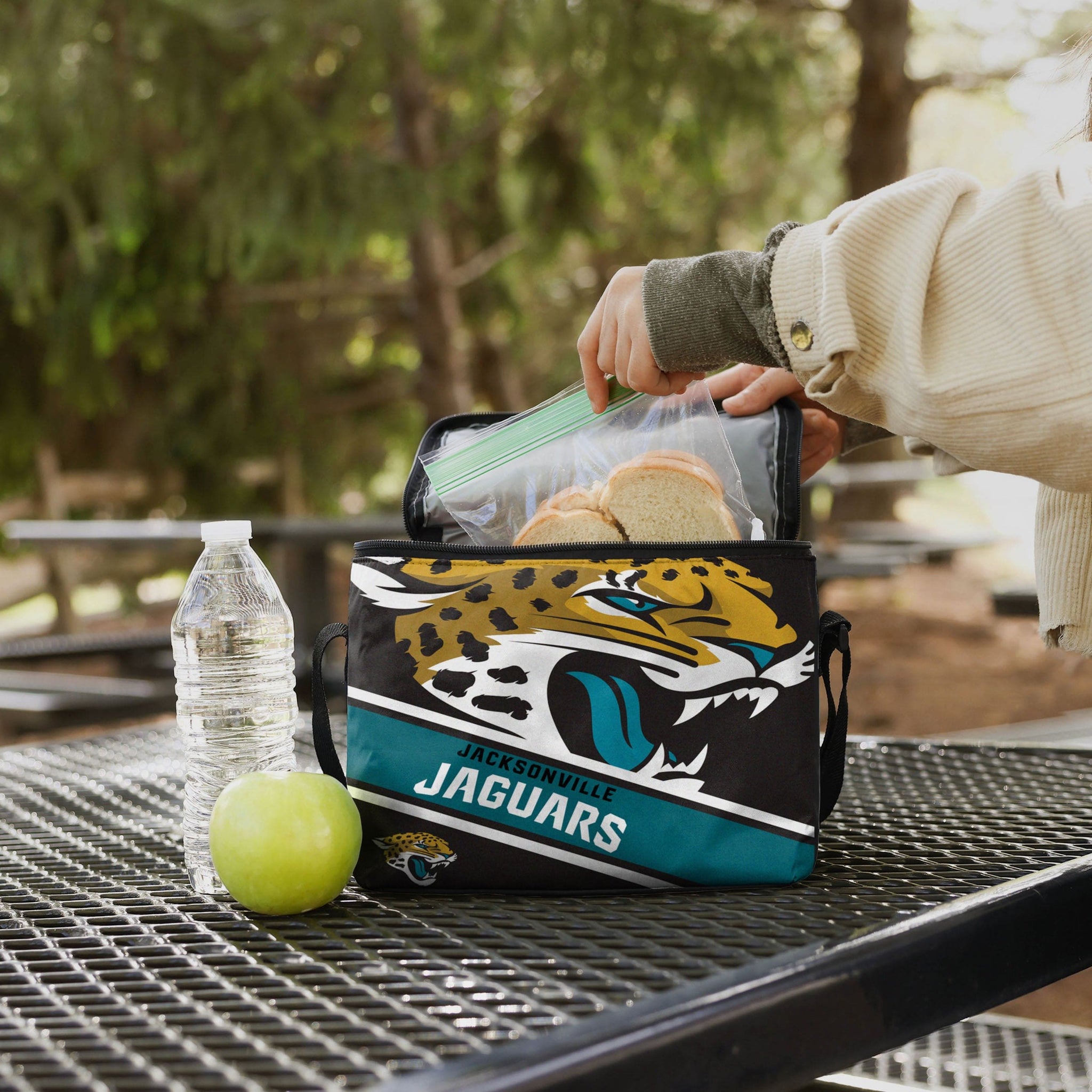 Tailgates. The beach. Road trips. No matter where you go, take your fandom (and your beverages) along for the ride with the Jacksonville Jaguars Big Logo Stripe 6 Pack Cooler.
