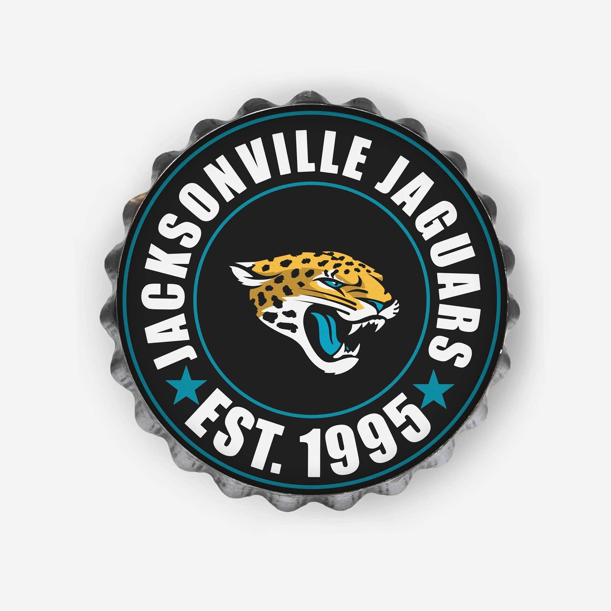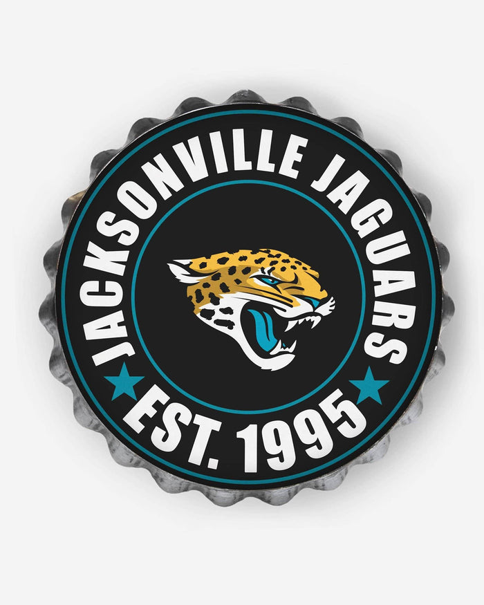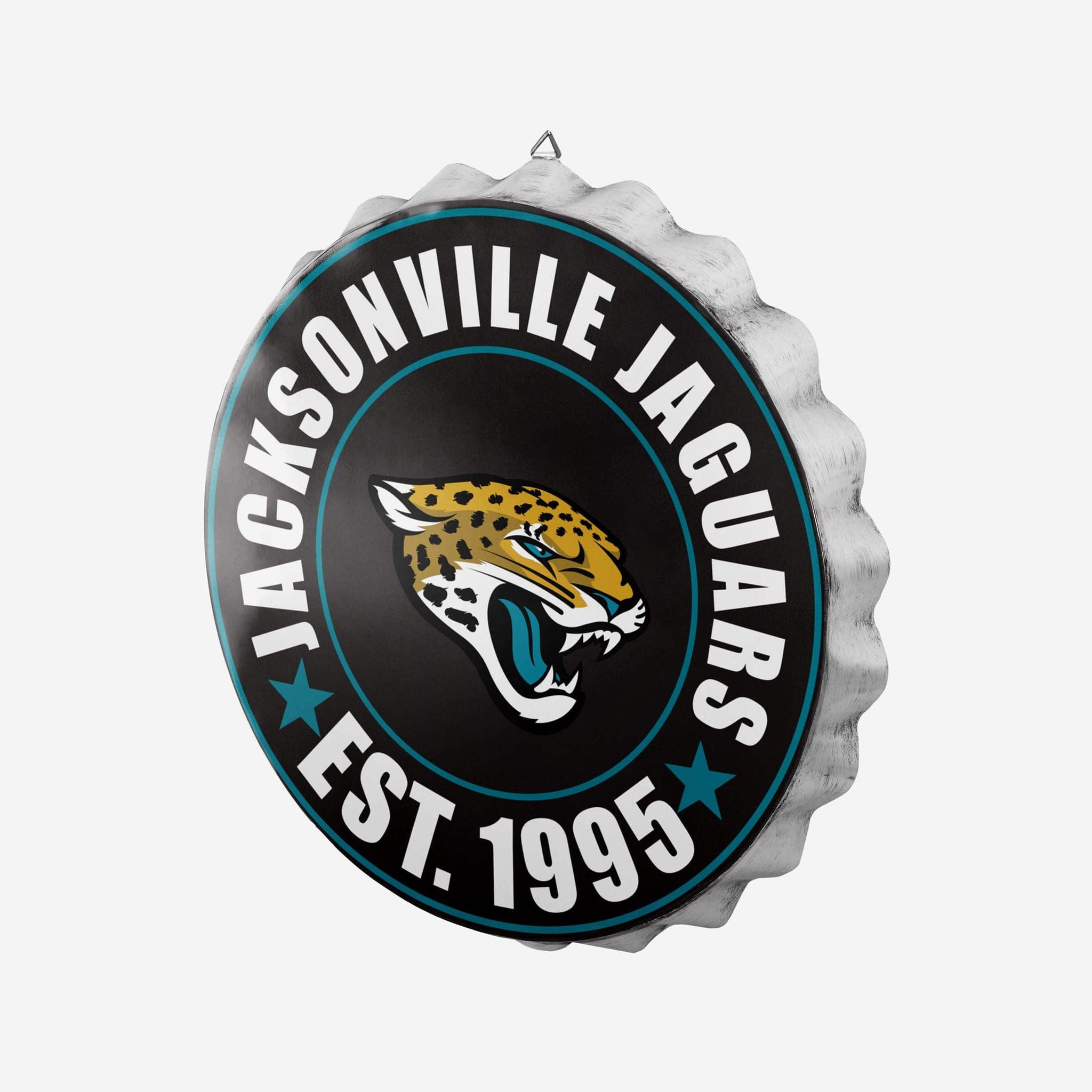 So, which team are you rooting for? That won't be a question you'll hear when you've got this Jacksonville Jaguars Bottle Cap Wall Sign on display in your fancave, because the sign will answer it for you.