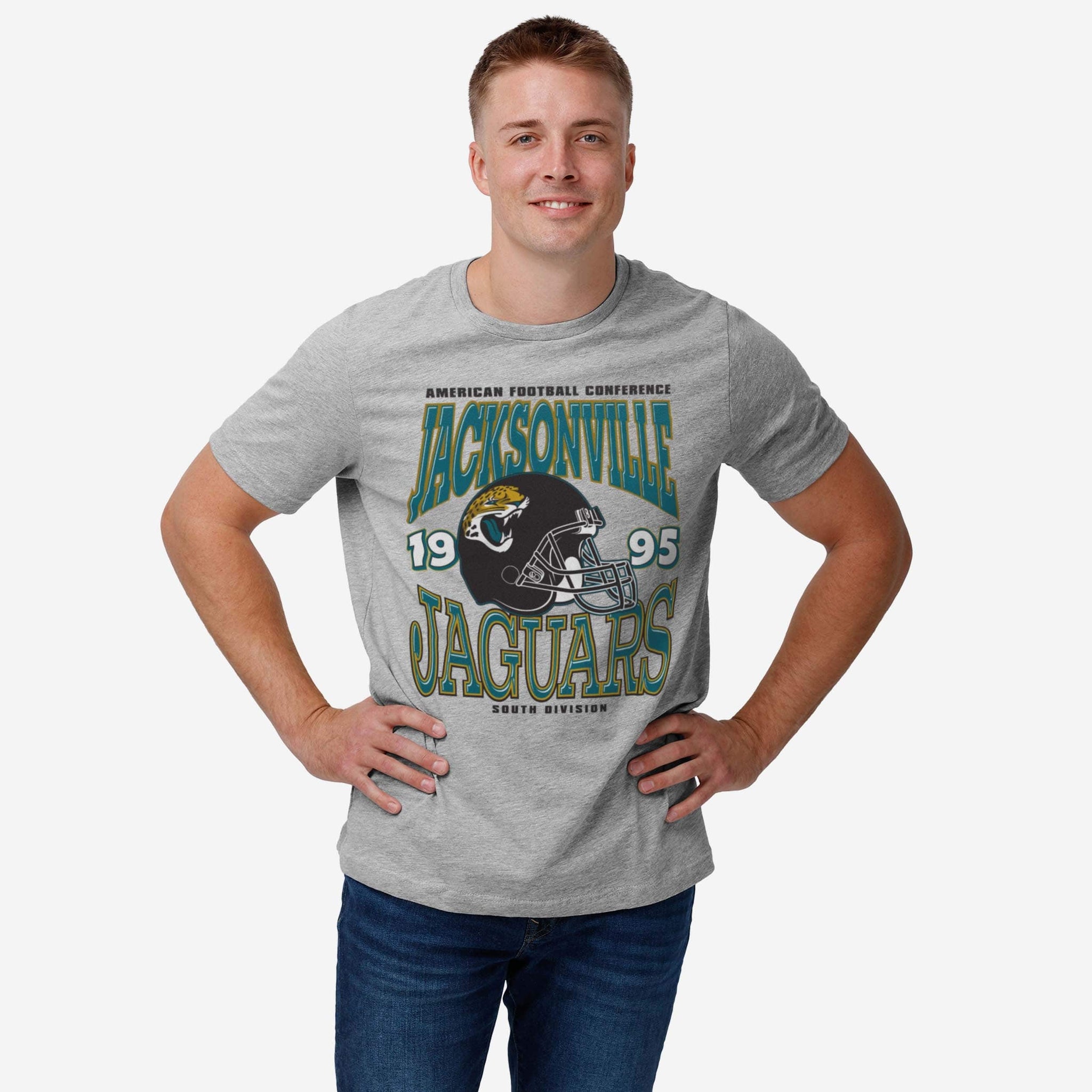 Style worthy of gridiron glory! Whether you’re at the tailgate, in the stands, or watching from the couch, the Jacksonville Jaguars Classic Team Helmet T-Shirt will get your head in the game.