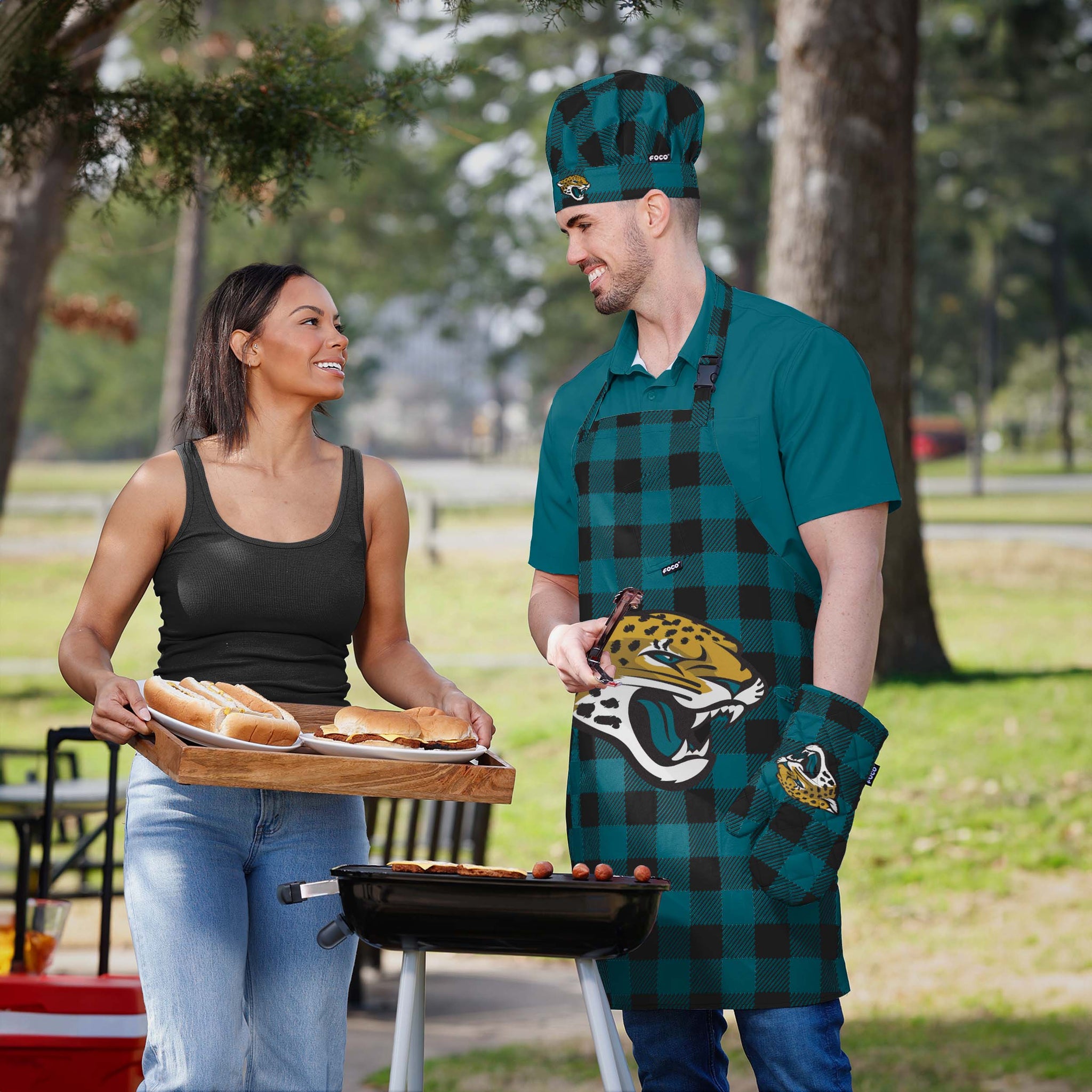 Get ready to serve up the best food in the greatest fan fit. From the kitchen, to the table, to game day, do it all in style with the Jacksonville Jaguars Plaid Chef Set.
