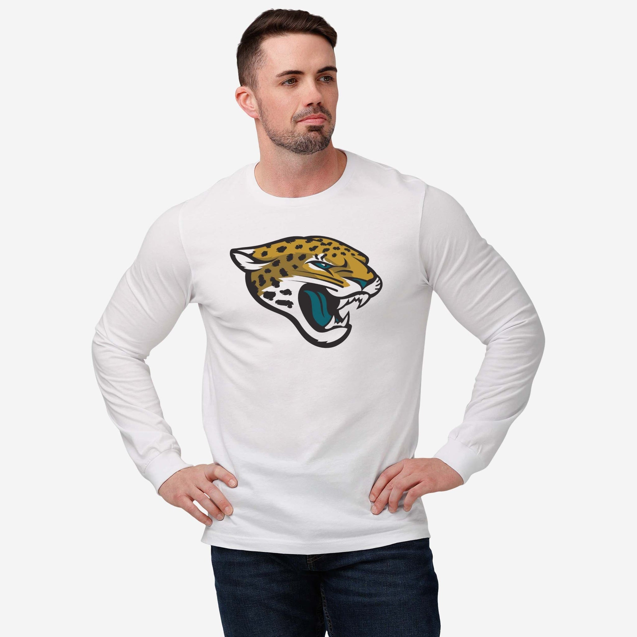 You’re the best fan. You could use a shirt that shows off the ultimate team pride. Look no further than this Jacksonville Jaguars Primary Logo Long Sleeve T-Shirt! Get ready to be the star of every tailgate group picture and MVP of the in-game jumbotron.