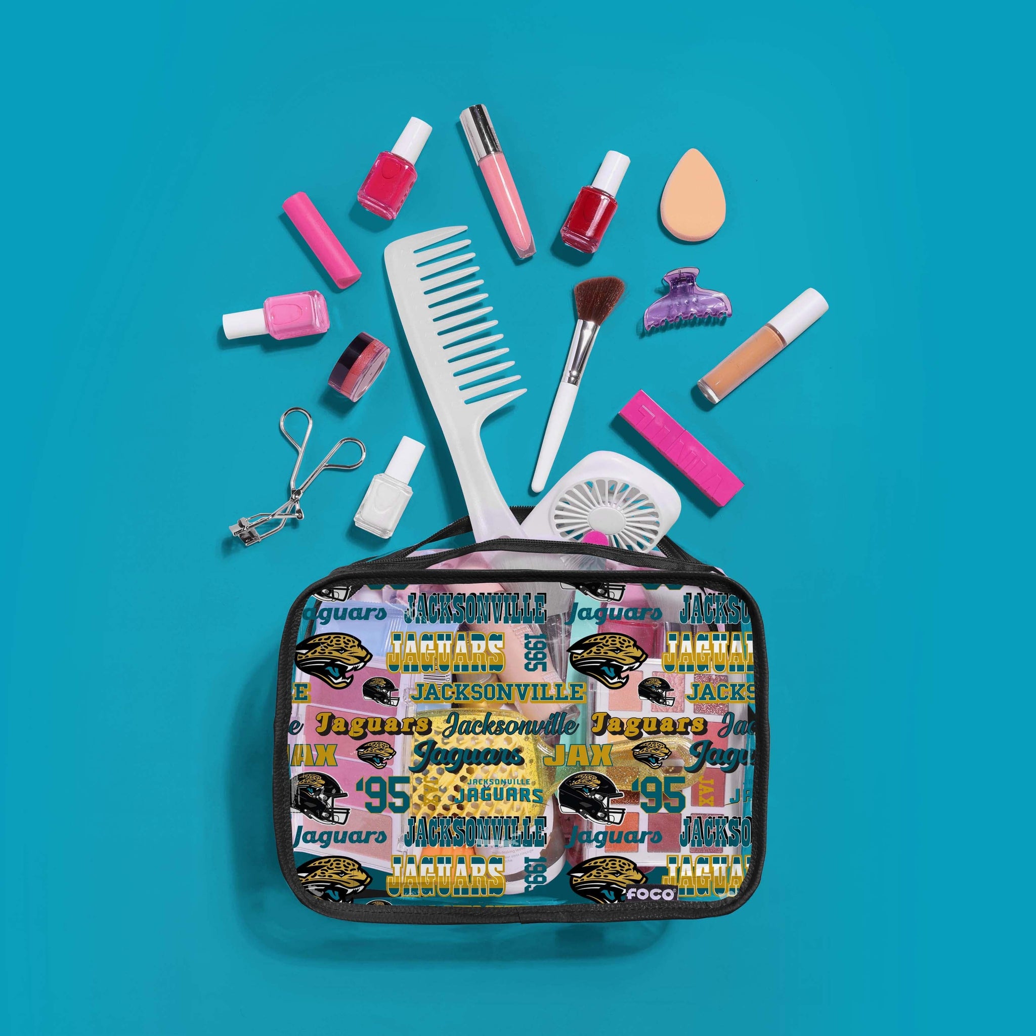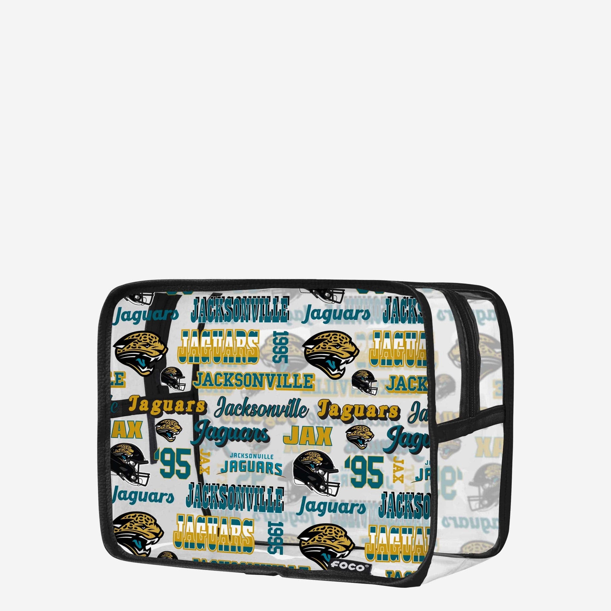 Lipstick. Hair care. Fandom. Get ready to carry it all! Wherever you go, let everyone clearly see which team you root for with a Jacksonville Jaguars Repeat Retro Print Clear Cosmetic Bag.