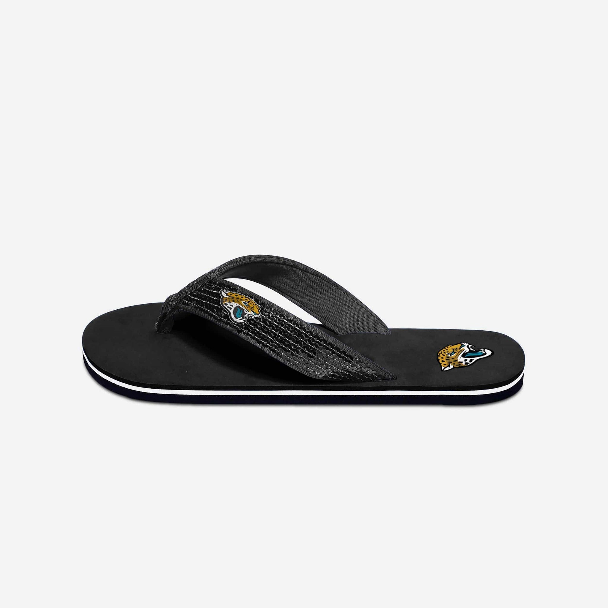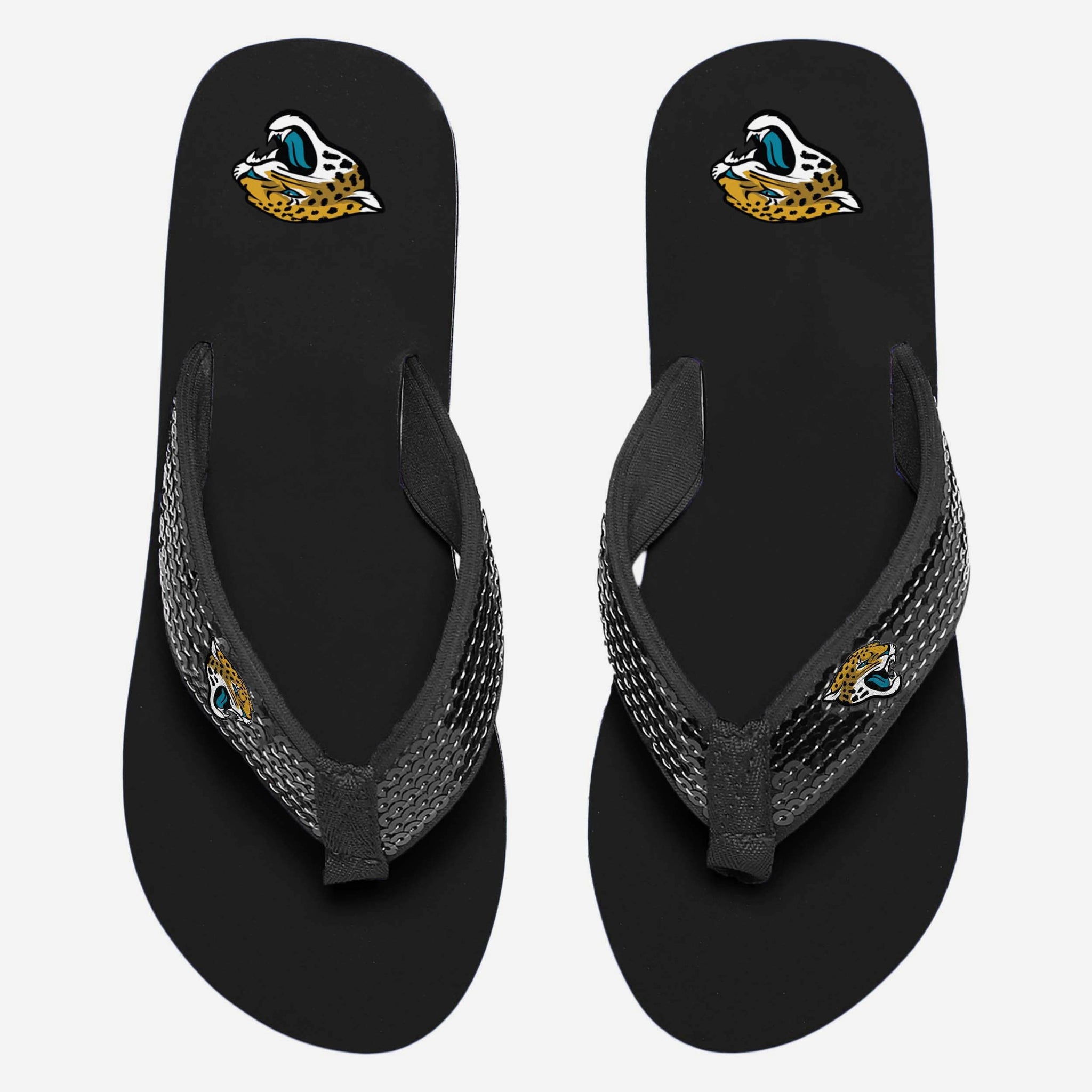 Nothing comes close to shining as bright as your team spirit. Well, nothing other than these Jacksonville Jaguars Sequin Flip Flops. Rock your fandom in comfort and style. Just don't be surprised when people need sunglasses when they look at you.