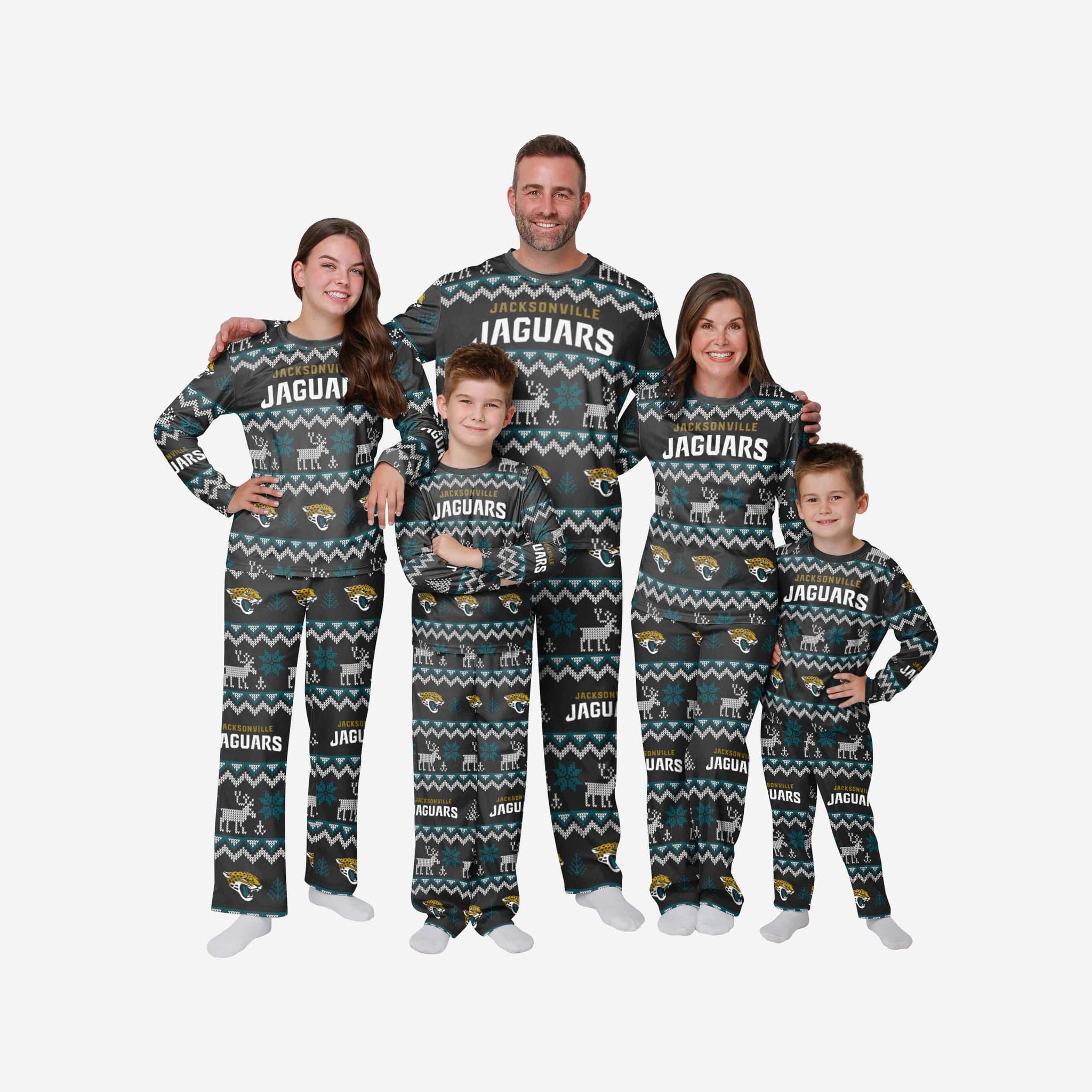 Get some matching family pajamas and dress to impress this holiday season! You won't want to miss these kids' team pajamas! These youth PJ's are comfortable and show off your team spirit in the form of some sweet youth jammies. Introducing the Jacksonville Jaguars Youth Ugly Pattern Family Holiday Pajamas! Don't forget to take your holiday photo with the whole family wearing matching Christmas pajamas!