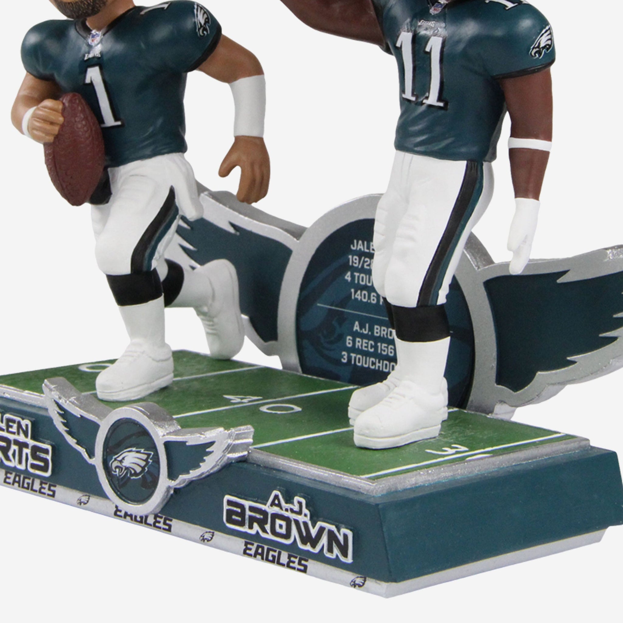 This Eagles duo is flying high! Look away, opposing defenders - The Jalen Hurts & A.J. Brown Philadelphia Eagles Gamebreaker Dual Bobblehead is ready for a trip to the end zone (aka your collection).