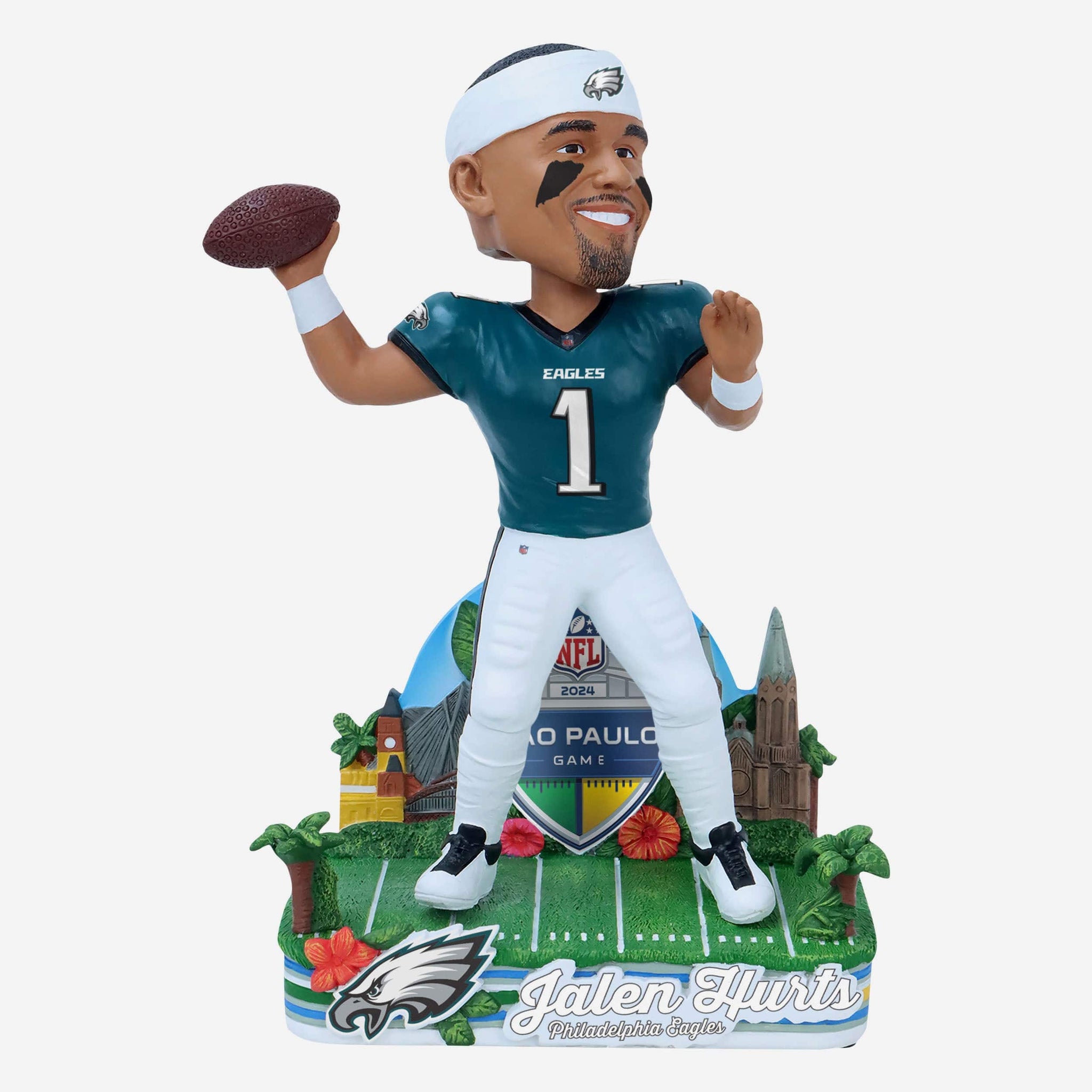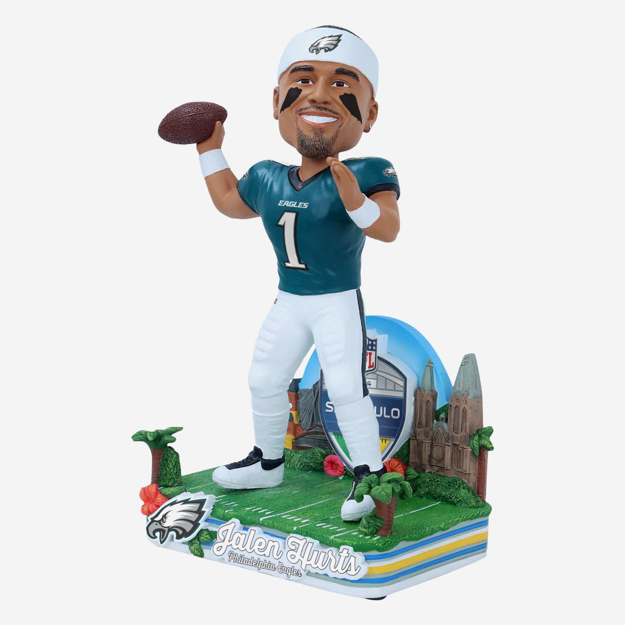 No need to pack your passport for this trip! Just Secure the Jalen Hurts Philadelphia Eagles 2024 International Game Bobblehead for a dose of global goodness.