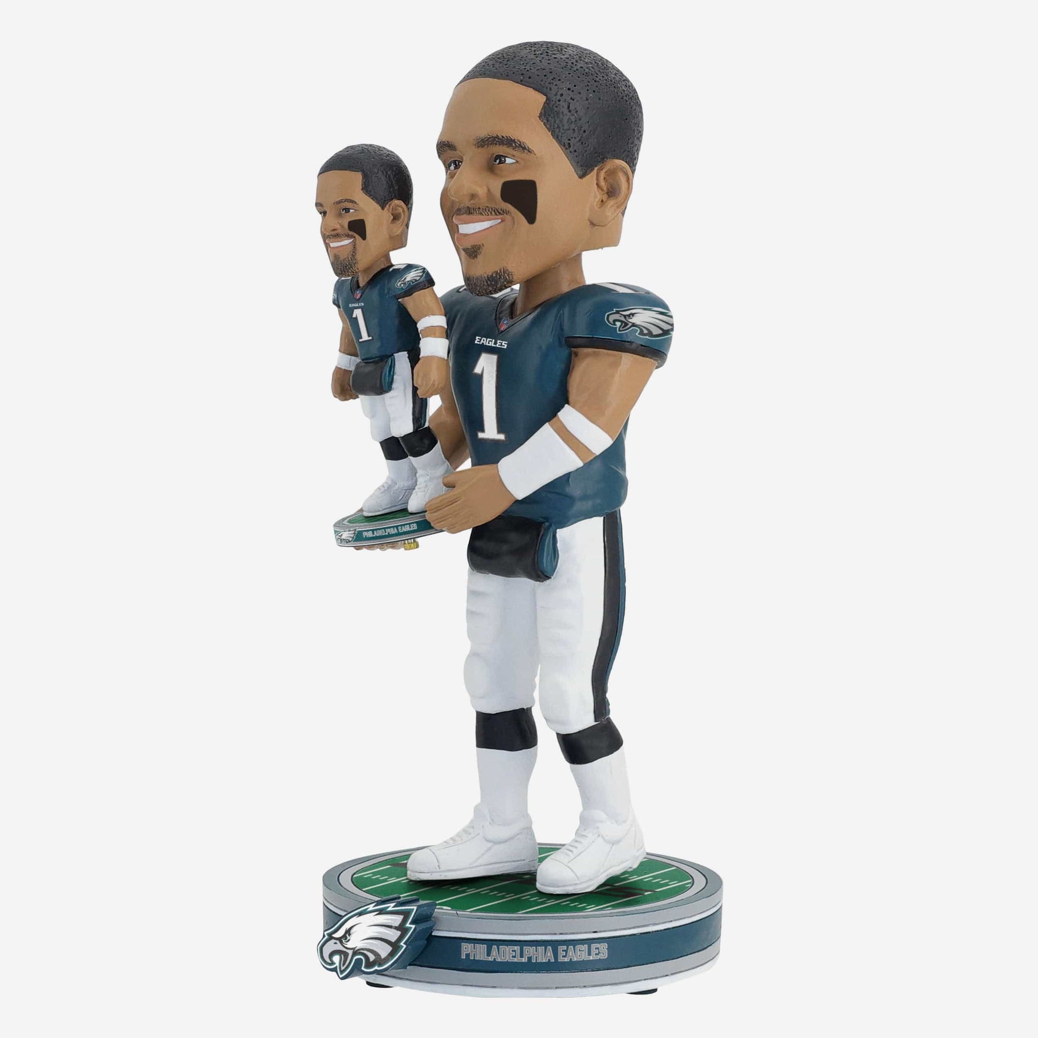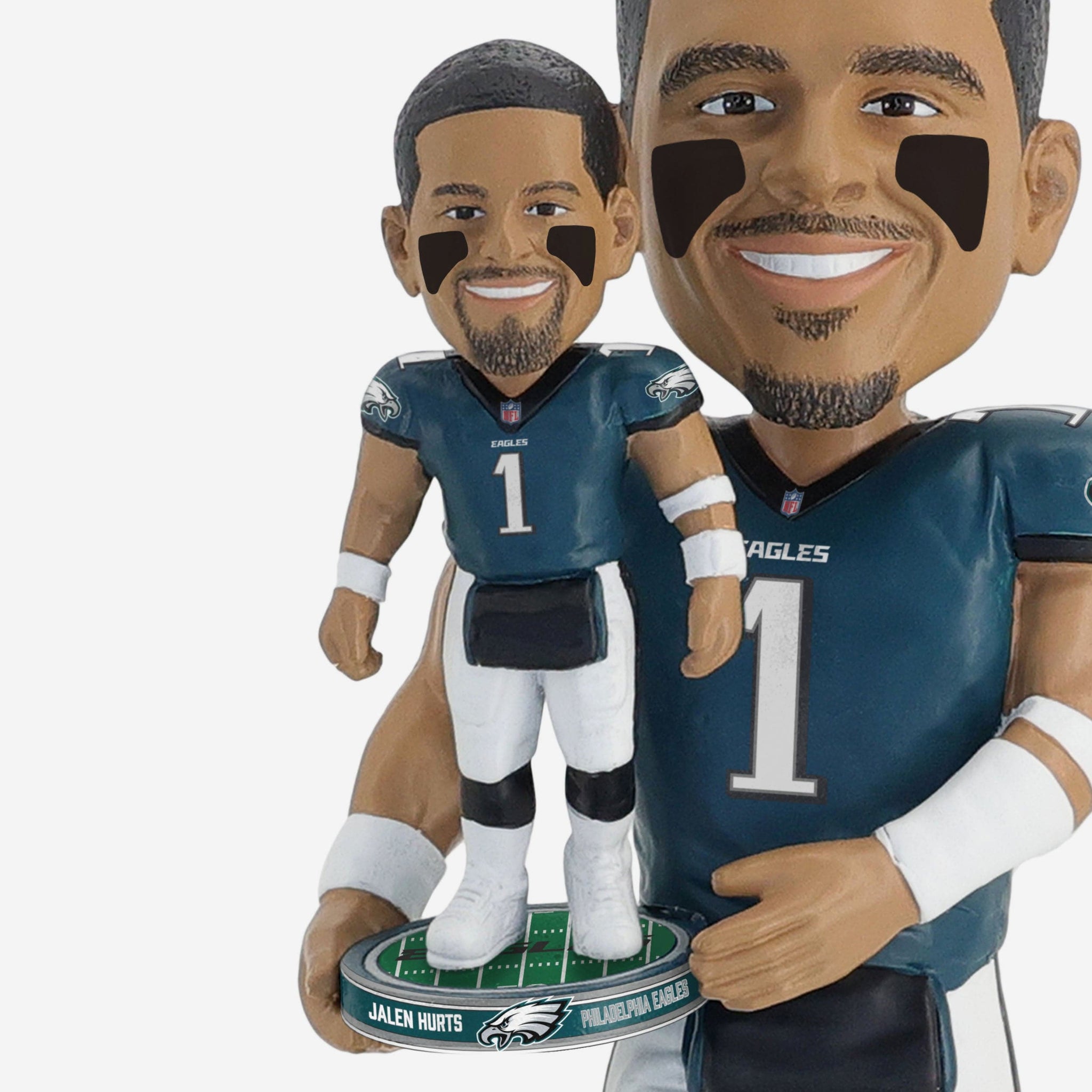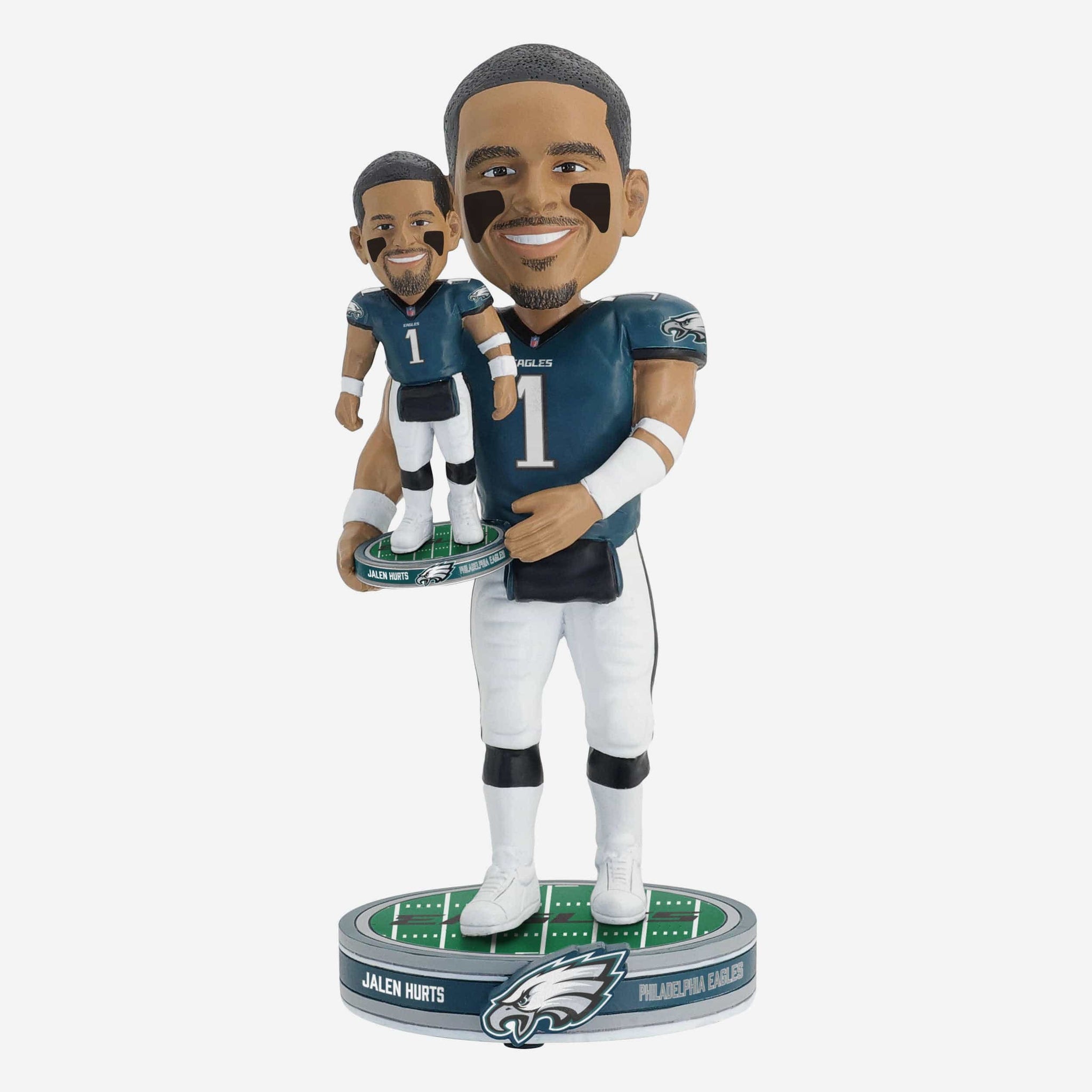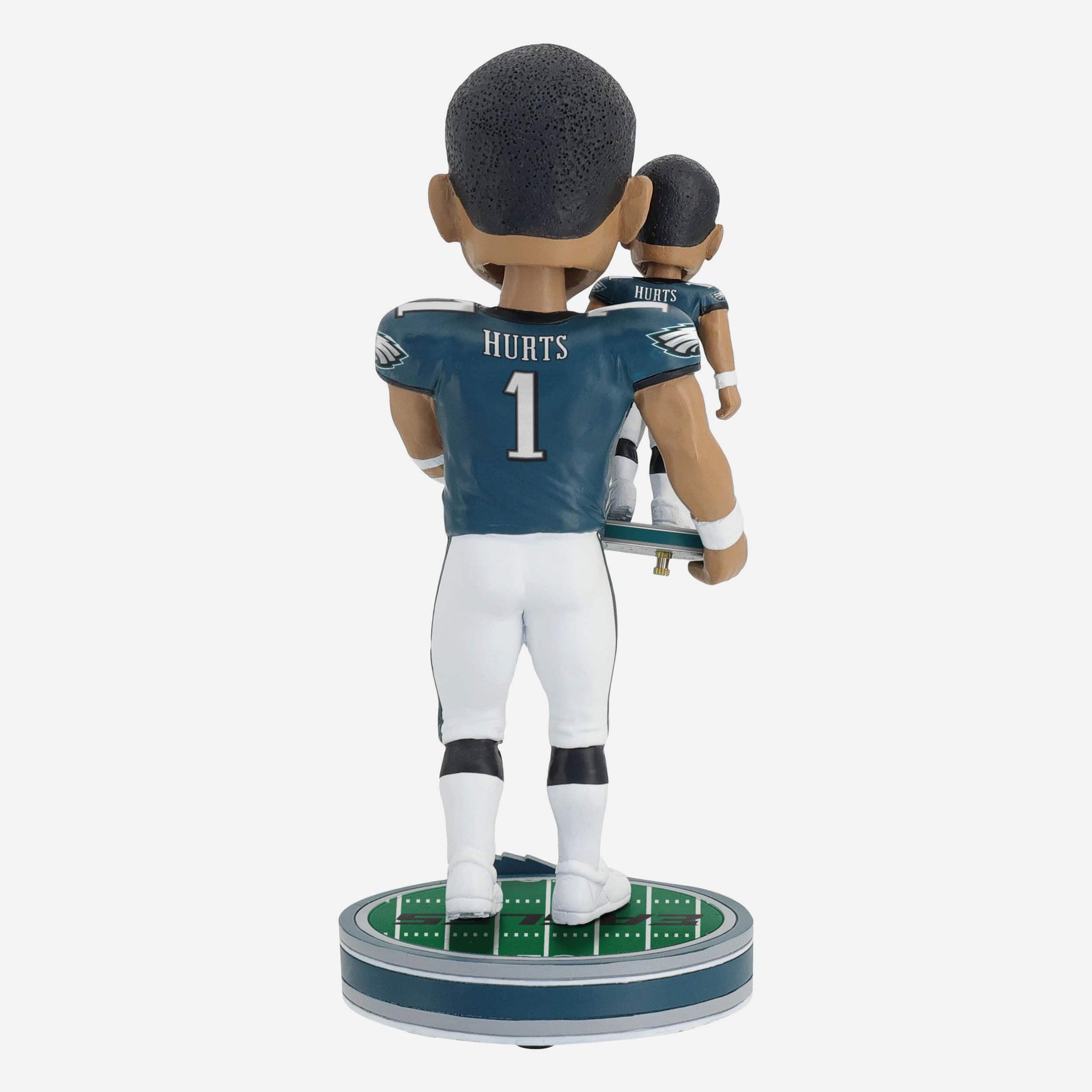 Itĺs a bobble, holding a bobble! Bring twice the excitement to your collection with this Jalen Hurts Philadelphia Eagles Bobble Dubblz Bobblehead.