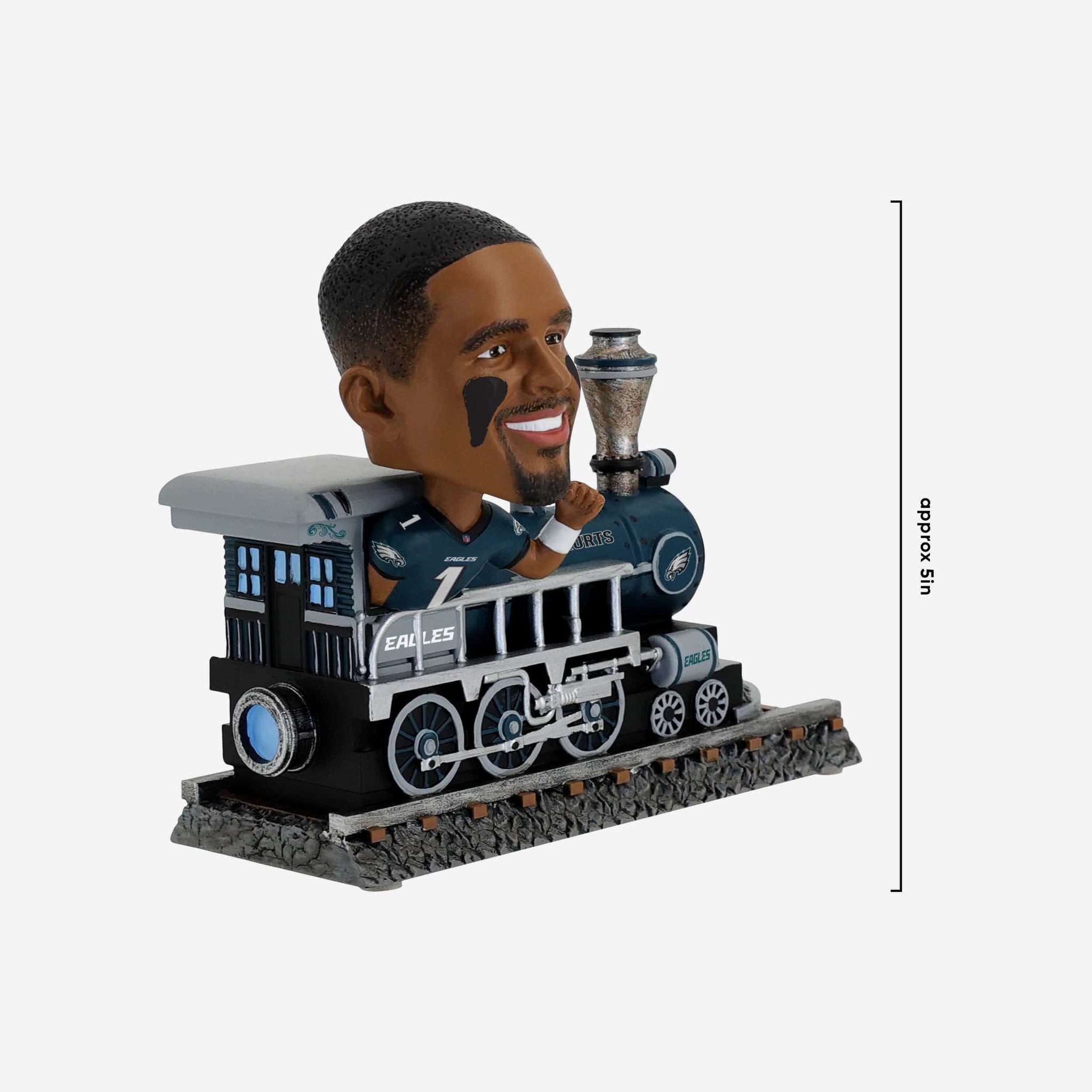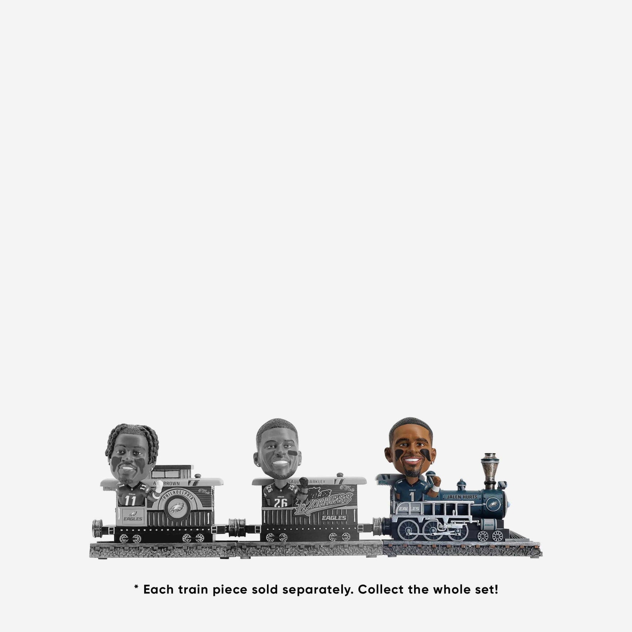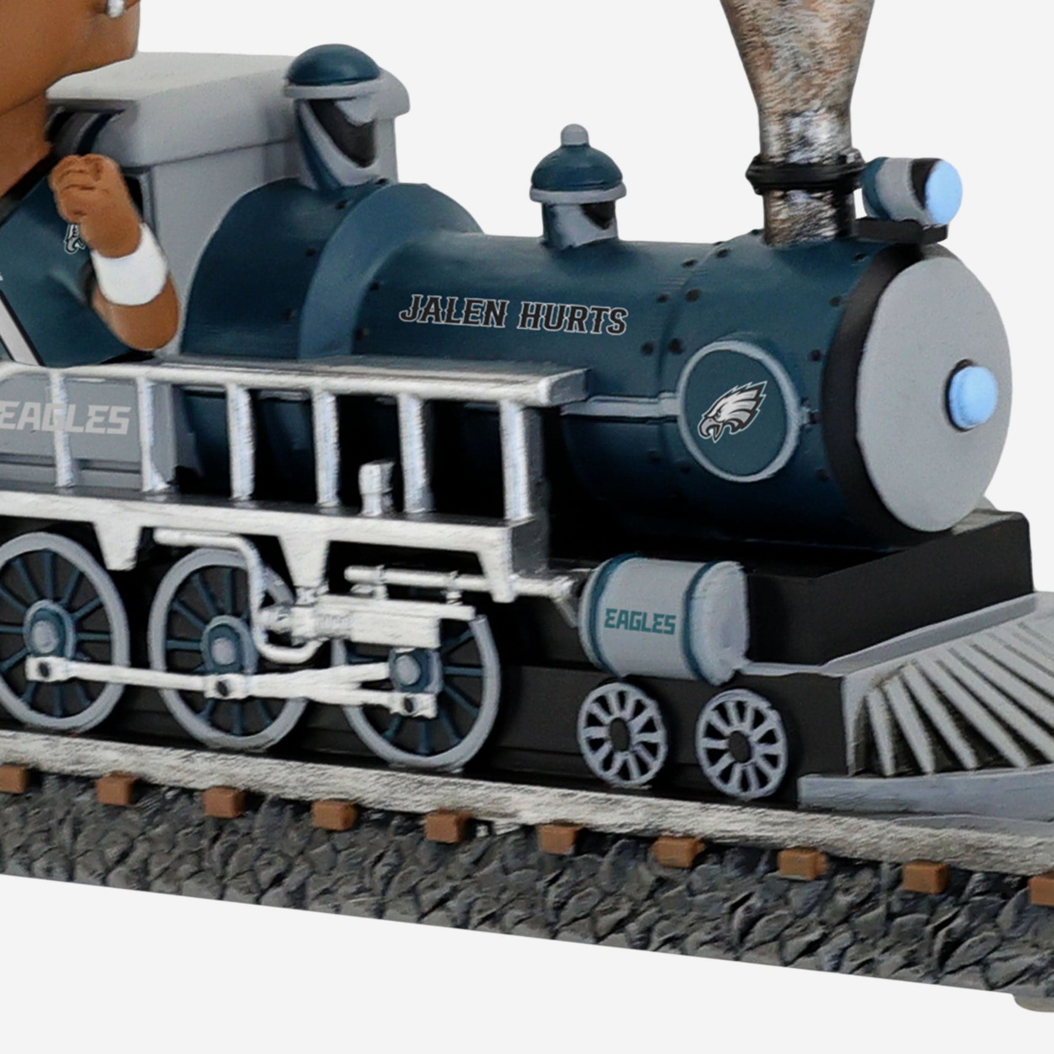 Chugga chugga choo choo! Rolling on down the tracks and into your collection, it's the Jalen Hurts Philadelphia Eagles Express Train Bobblehead.