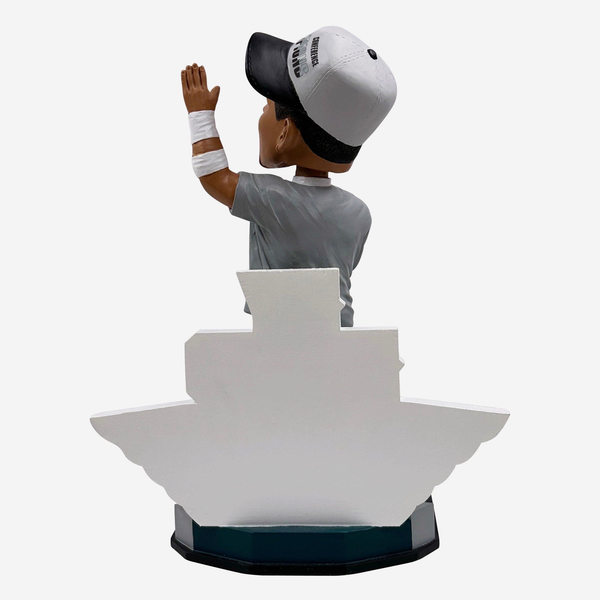 - Portrays Hurts posing in his gameday uniform and wearing commemorative NFC Champions t-shirt and cap, ready to celebrate their big win
