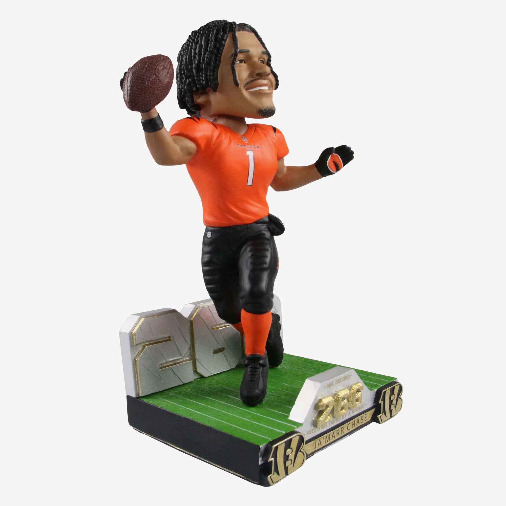 Ja'Marr is chasing greatness! Celebrate his unforgettable performance where he set the NFL rookie single-game receiving yards record with this Ja'Marr Chase Cincinnati Bengals Gamebreaker Bobblehead!