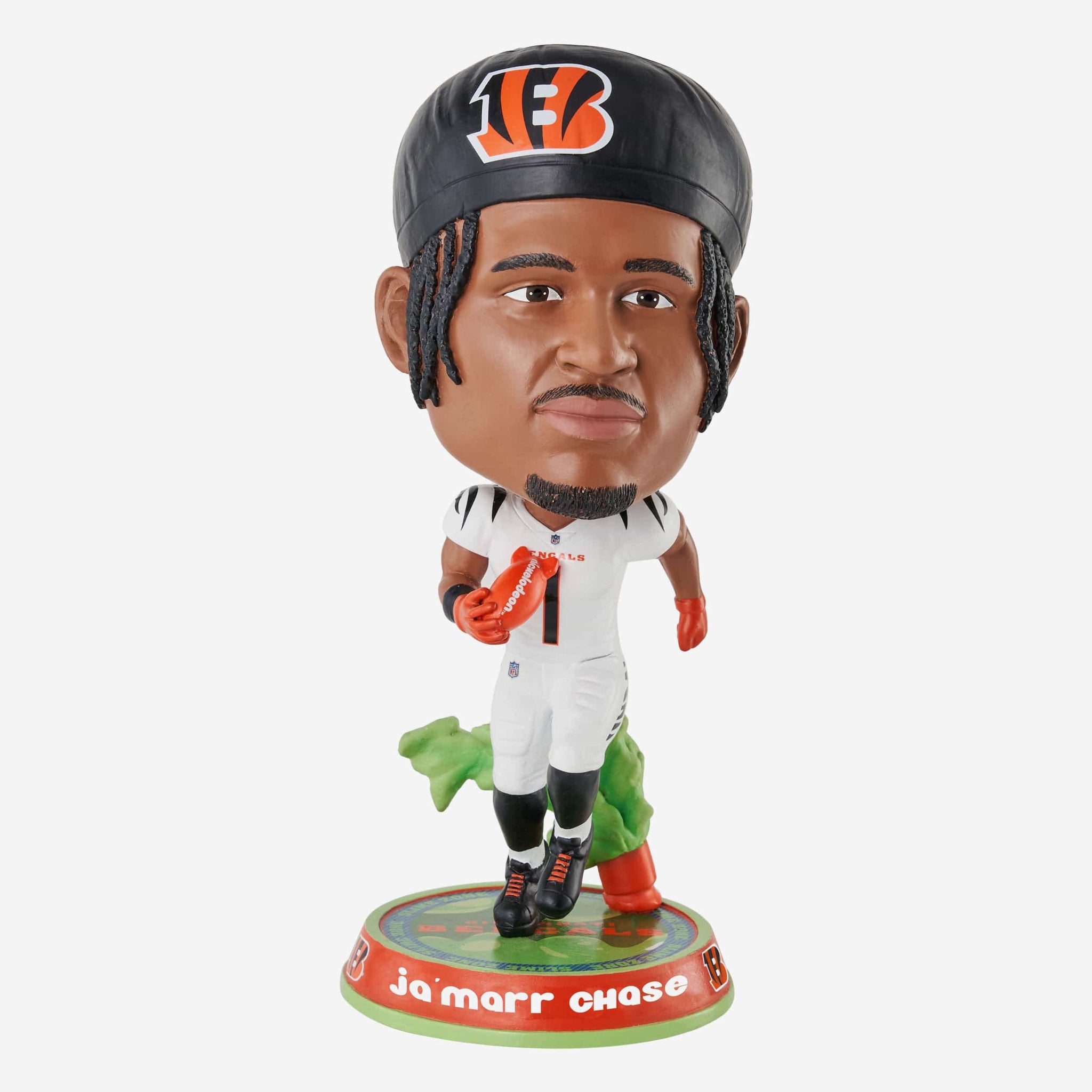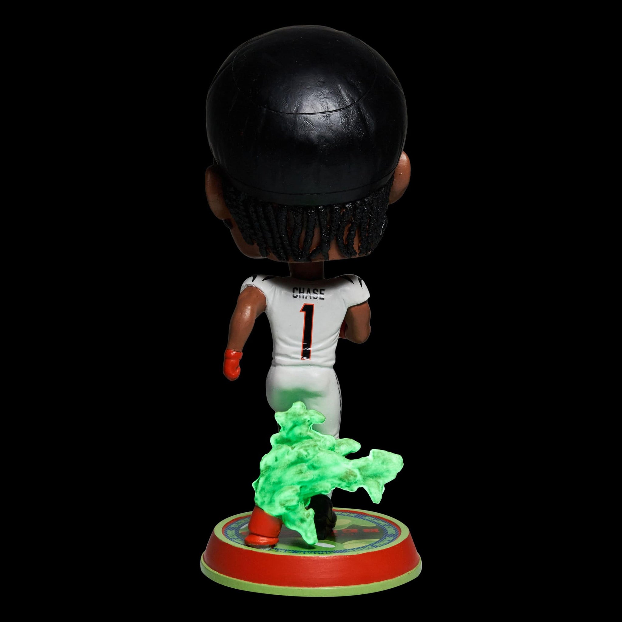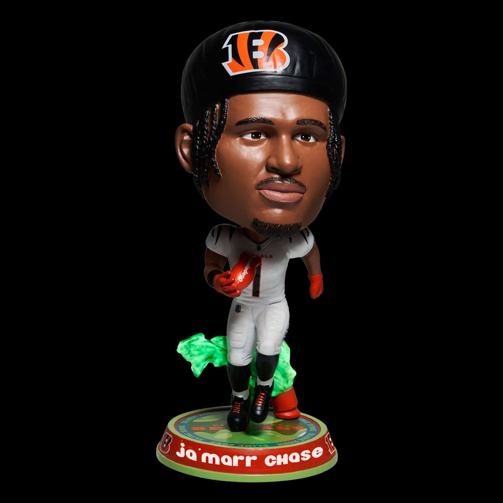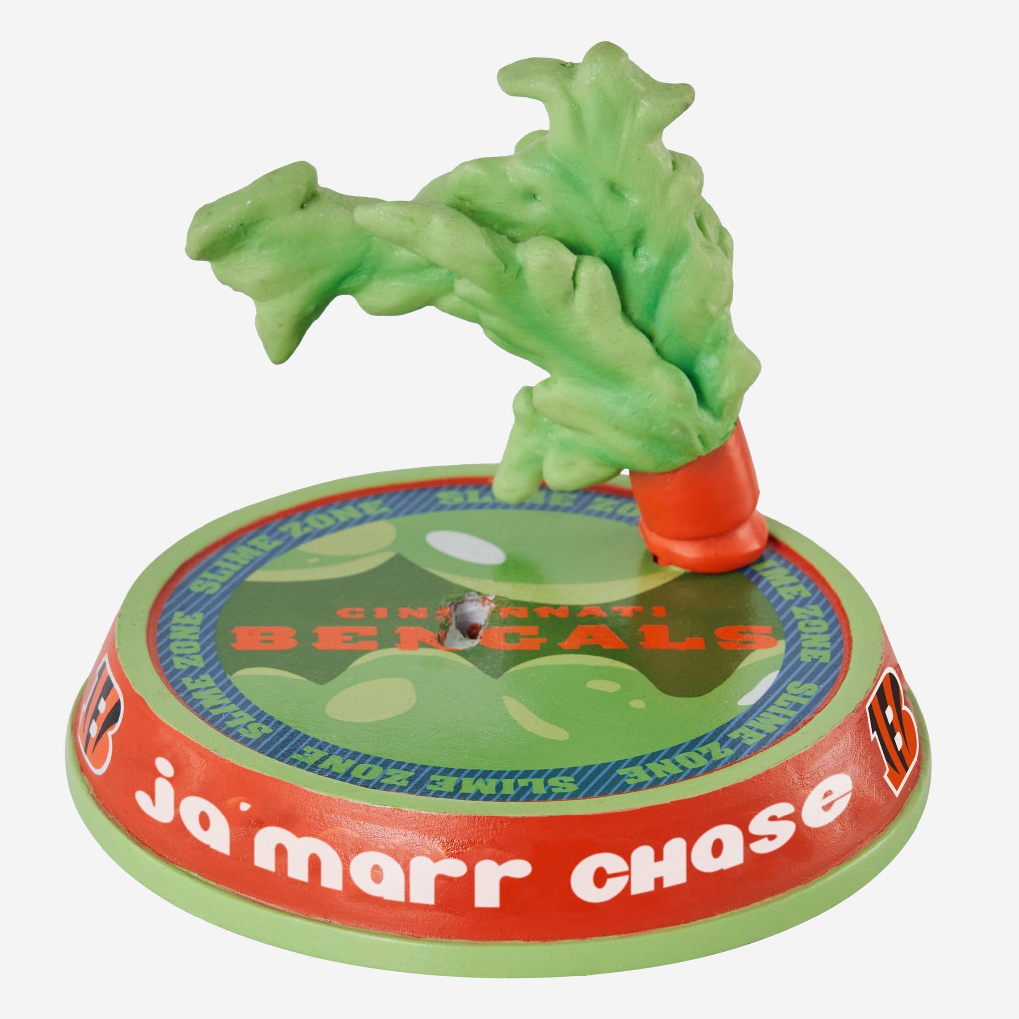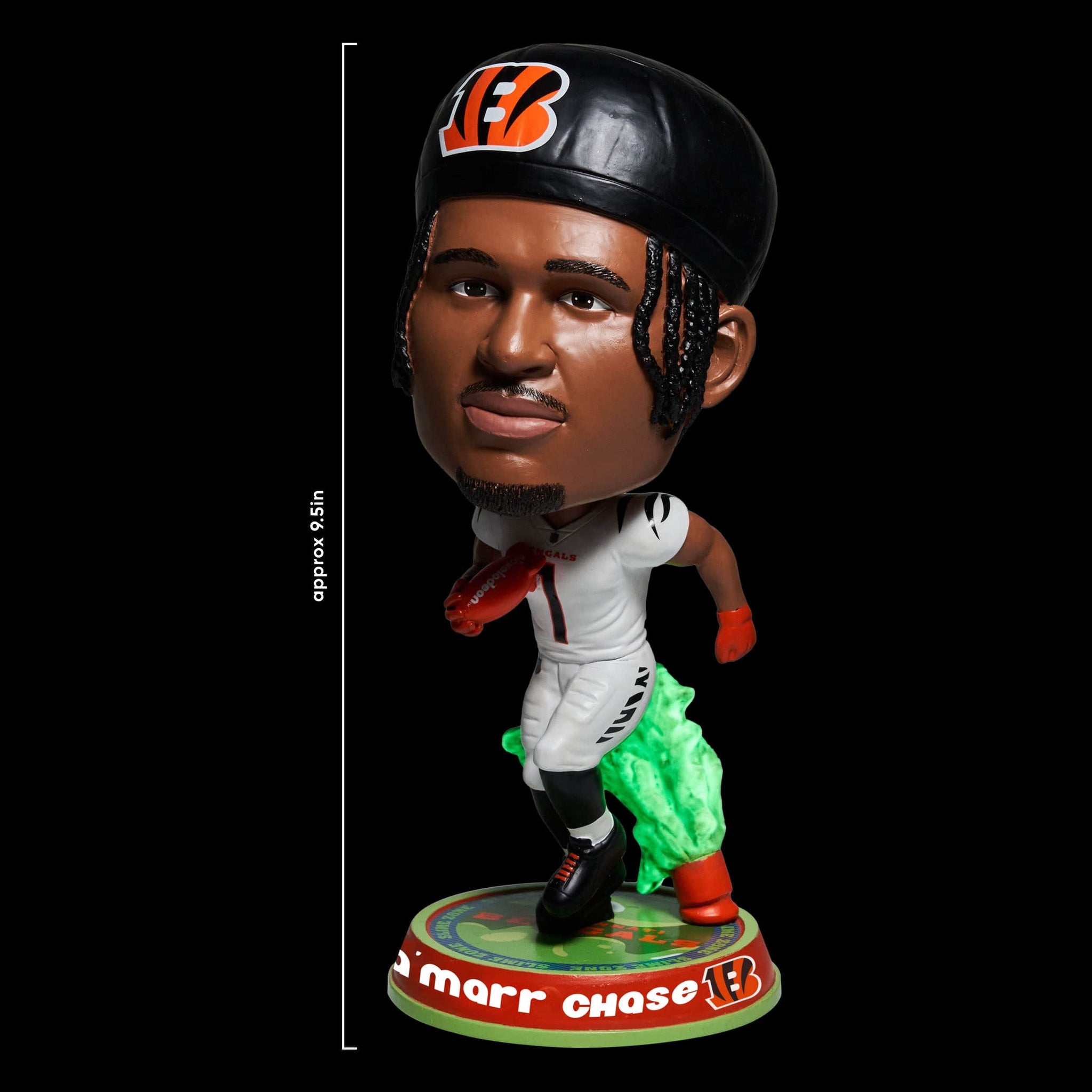 Don’t get stuck “Chase”-ing the glow. Take your collection to slime slime time in prime time with this Ja’Marr Chase Cincinnati Bengals Nickelodeon Glow in the Dark Bighead Bobblehead.