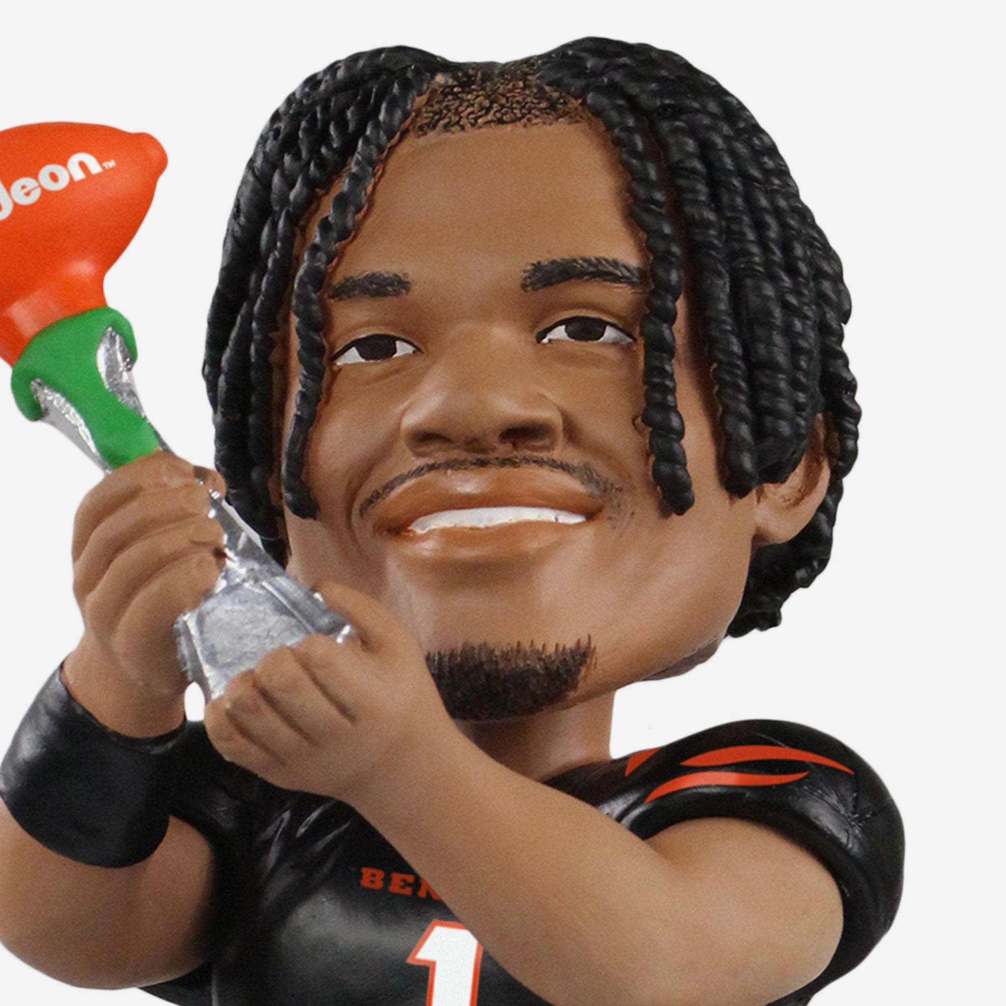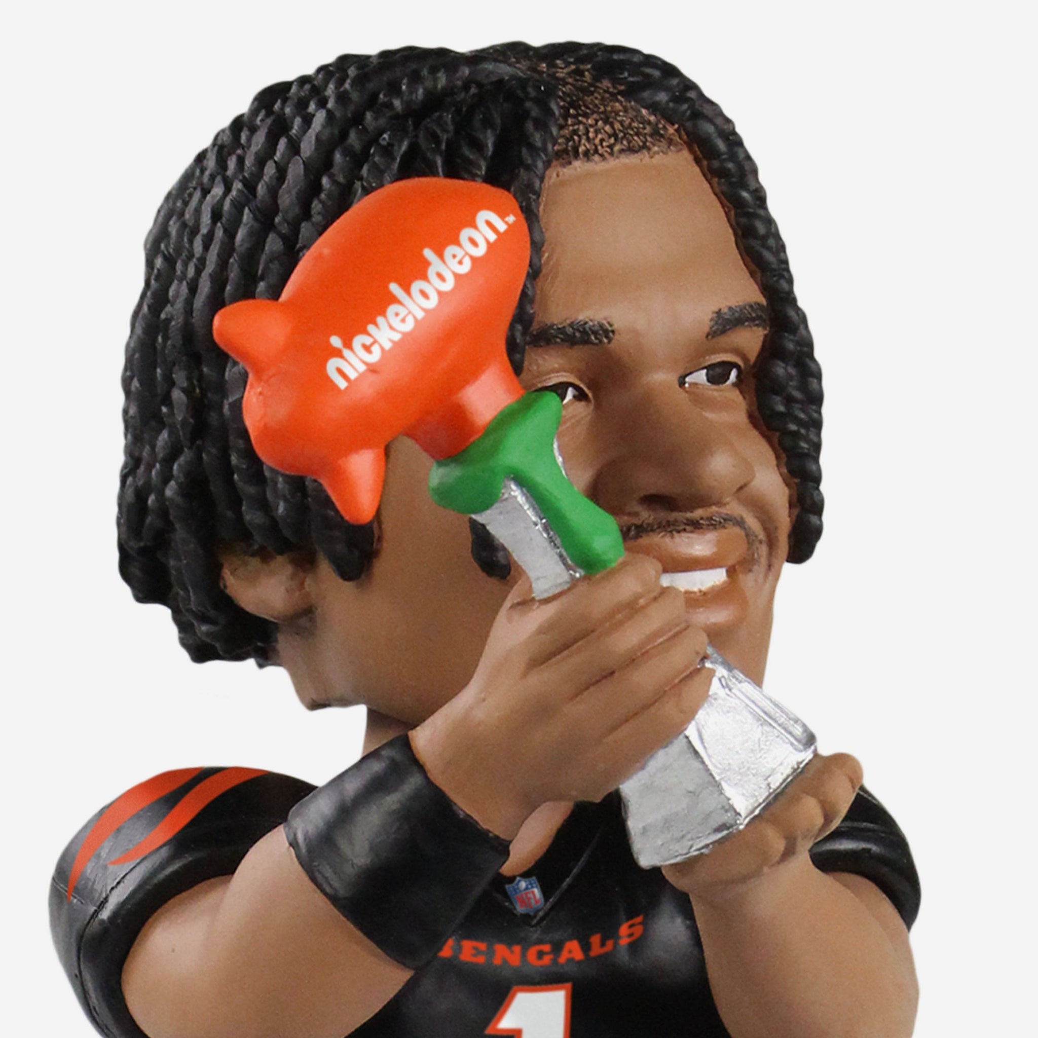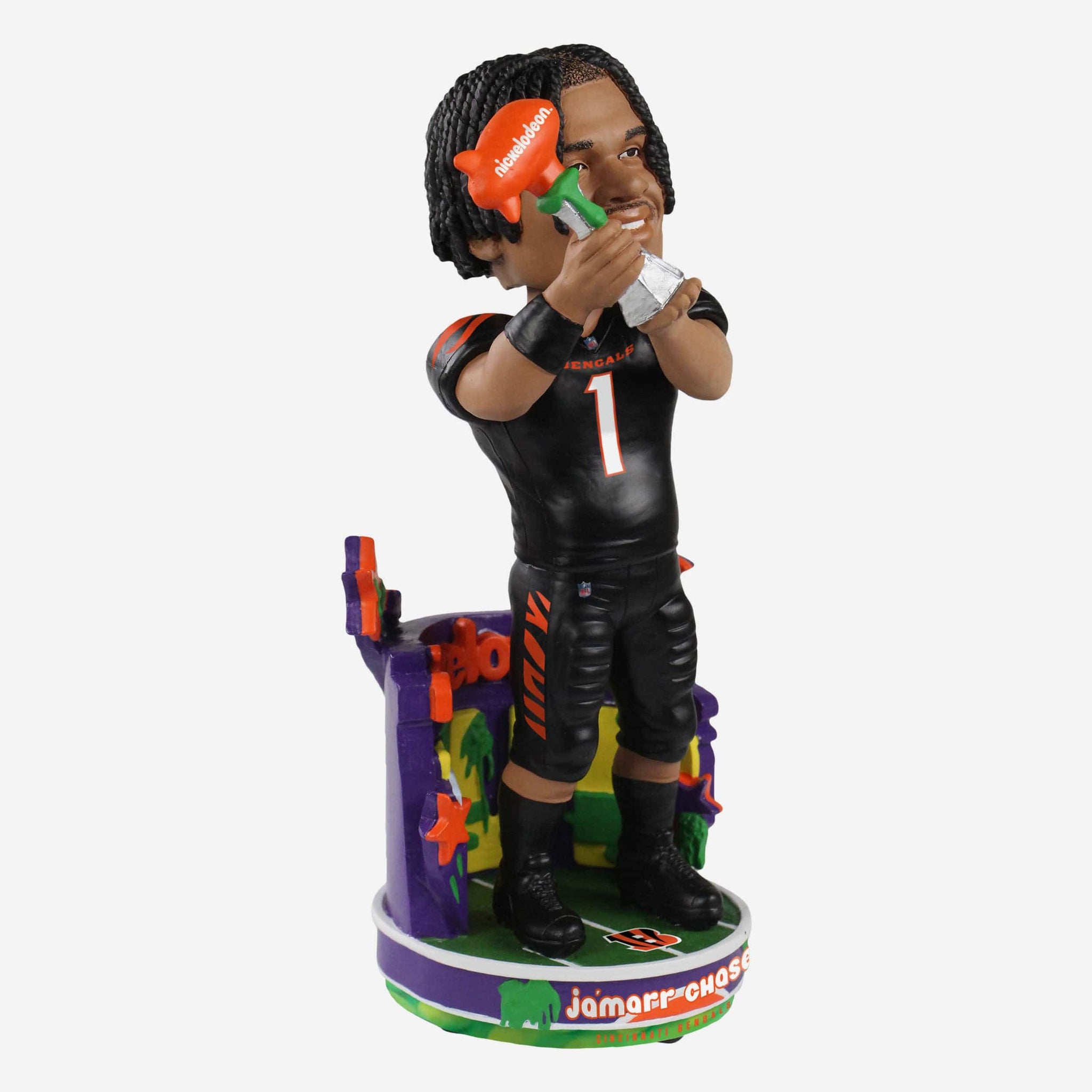 You hear that? That's the sound of the crowd chanting N-V-P! N-V-P! N-V-P! after another legendary performance from this guy. Introducing the Ja'Marr Chase Cincinnati Bengals Nickelodeon NVP Bobblehead! He's gonna have to make some more room on that trophy case.
