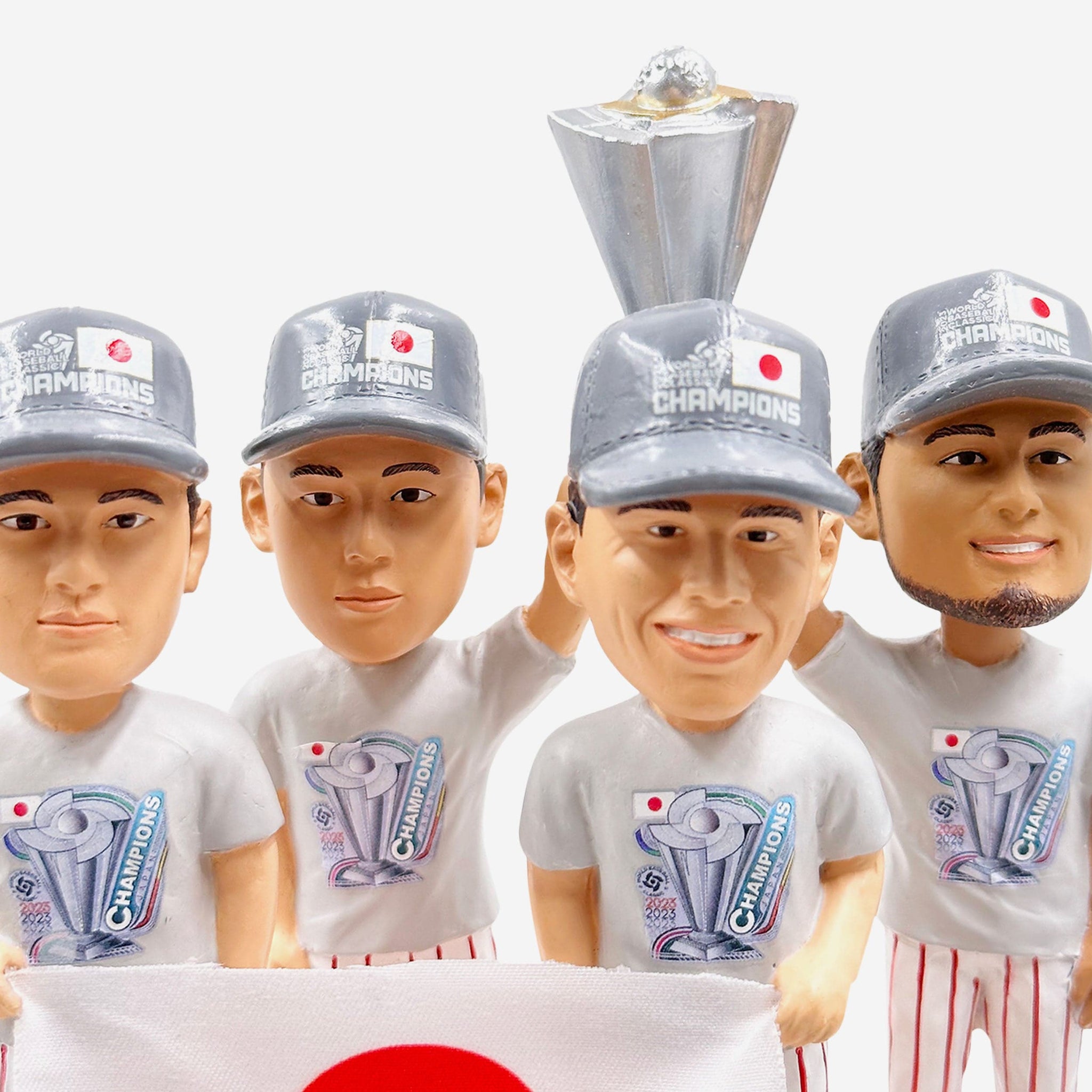 These four are on top of the world. Championships are always in style, and the Japan 2023 World Baseball Classic Champions Cap & Tee Mini Bobblehead Scene, starring Shohei Ohtani, Yu Darvish, Masataka Yoshida, and Lars Nootbaar, is no exception.