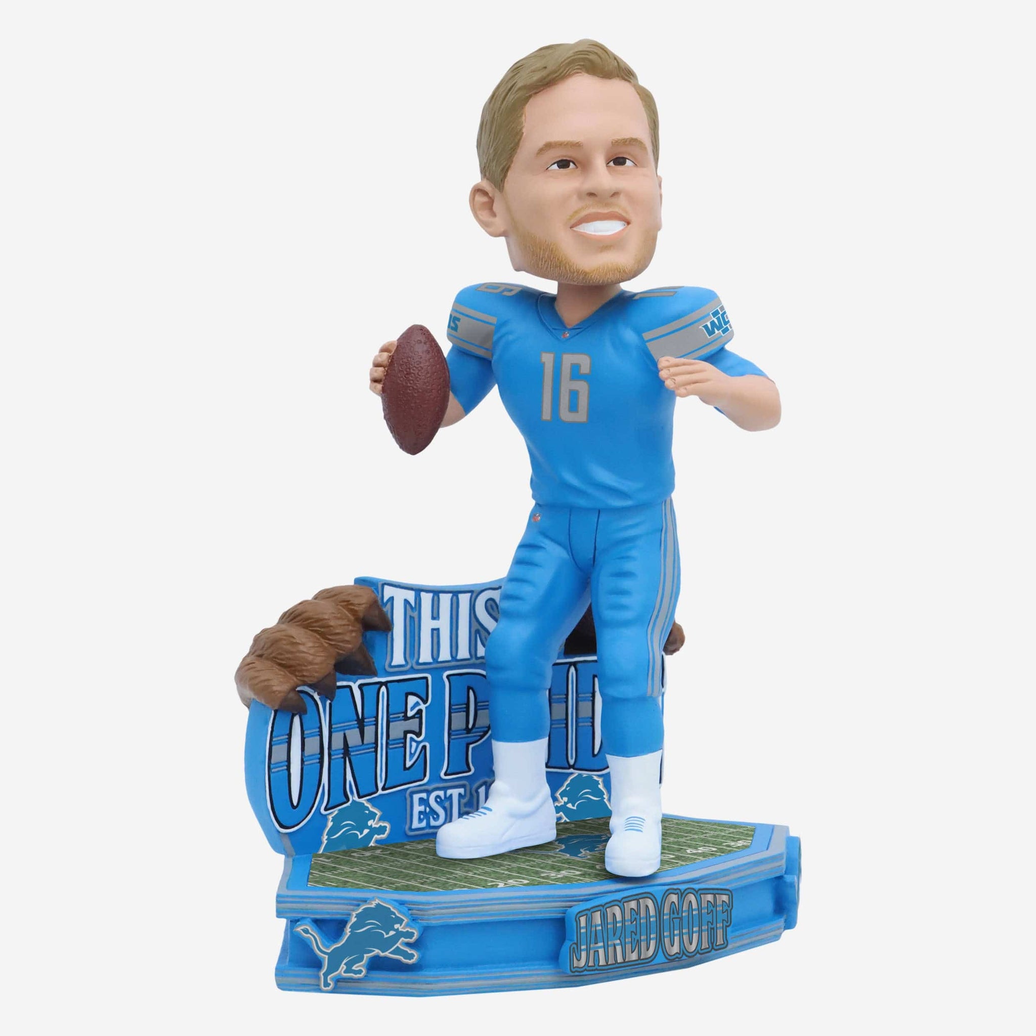 From under center in Detroit to the centerpiece of your collection. Show "Goff" your Lions pride with this Jared Goff Detroit Lions One Pride Bobblehead.