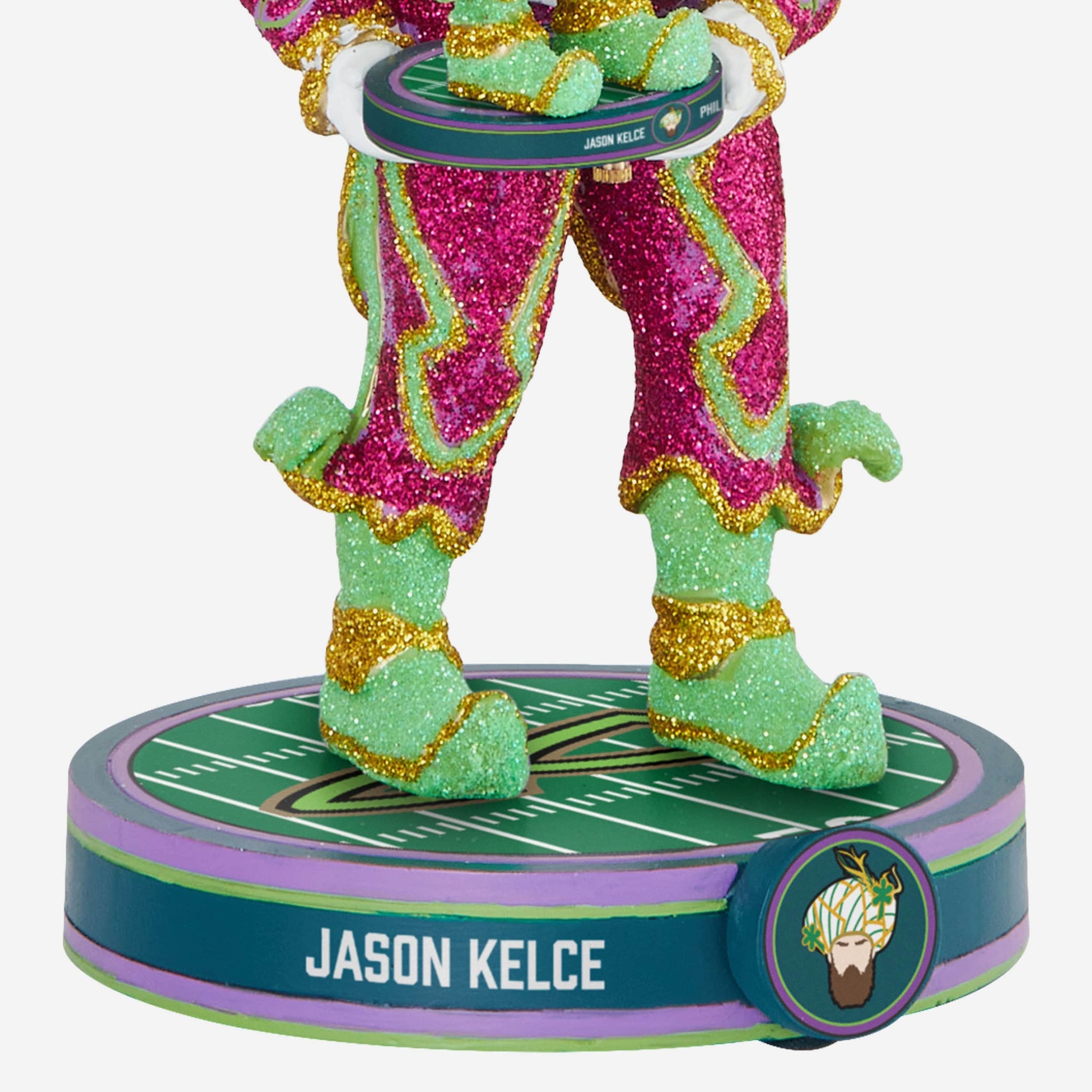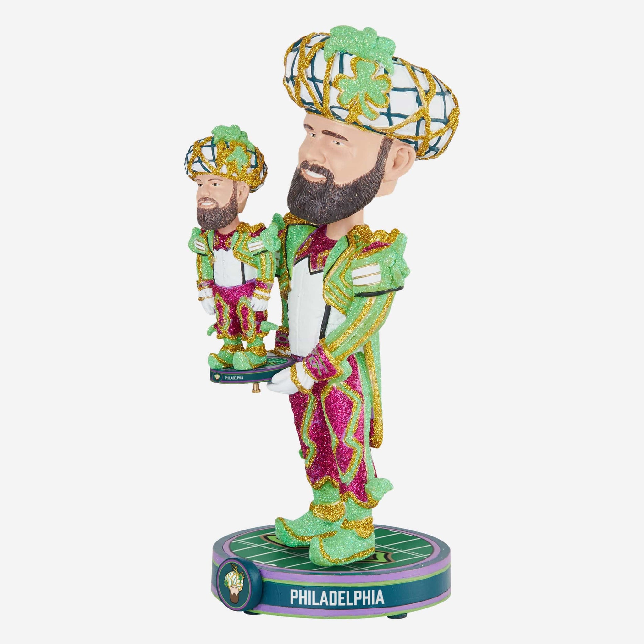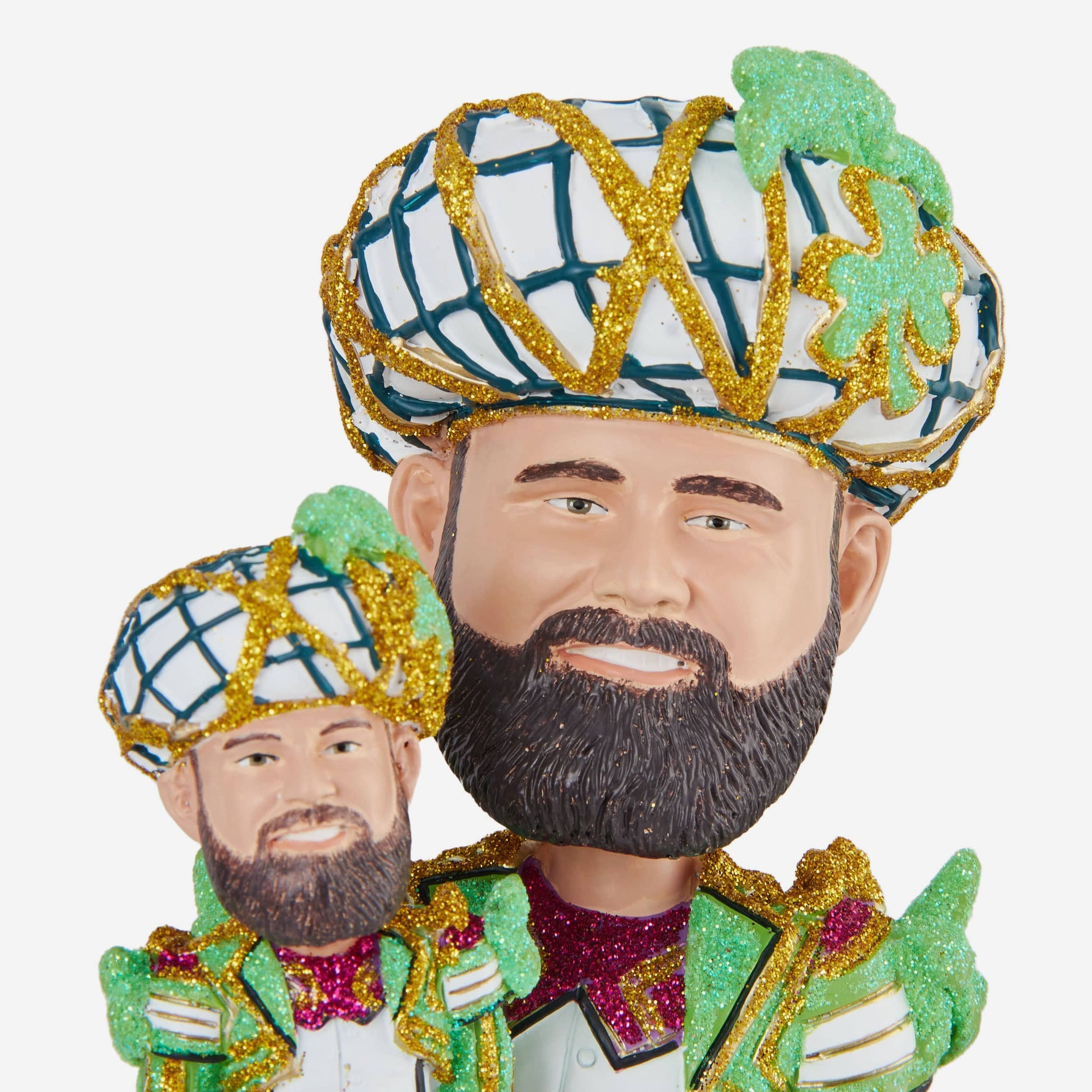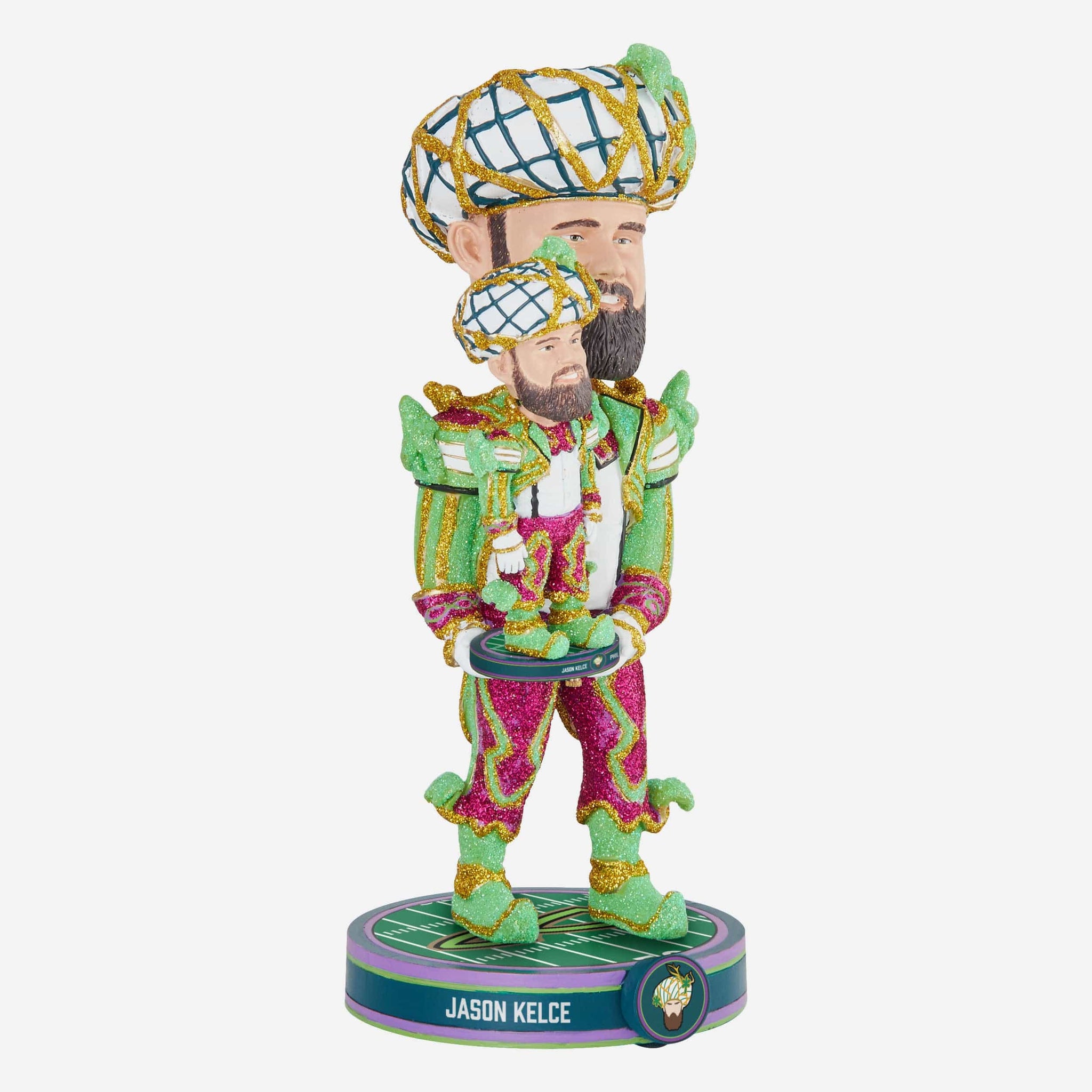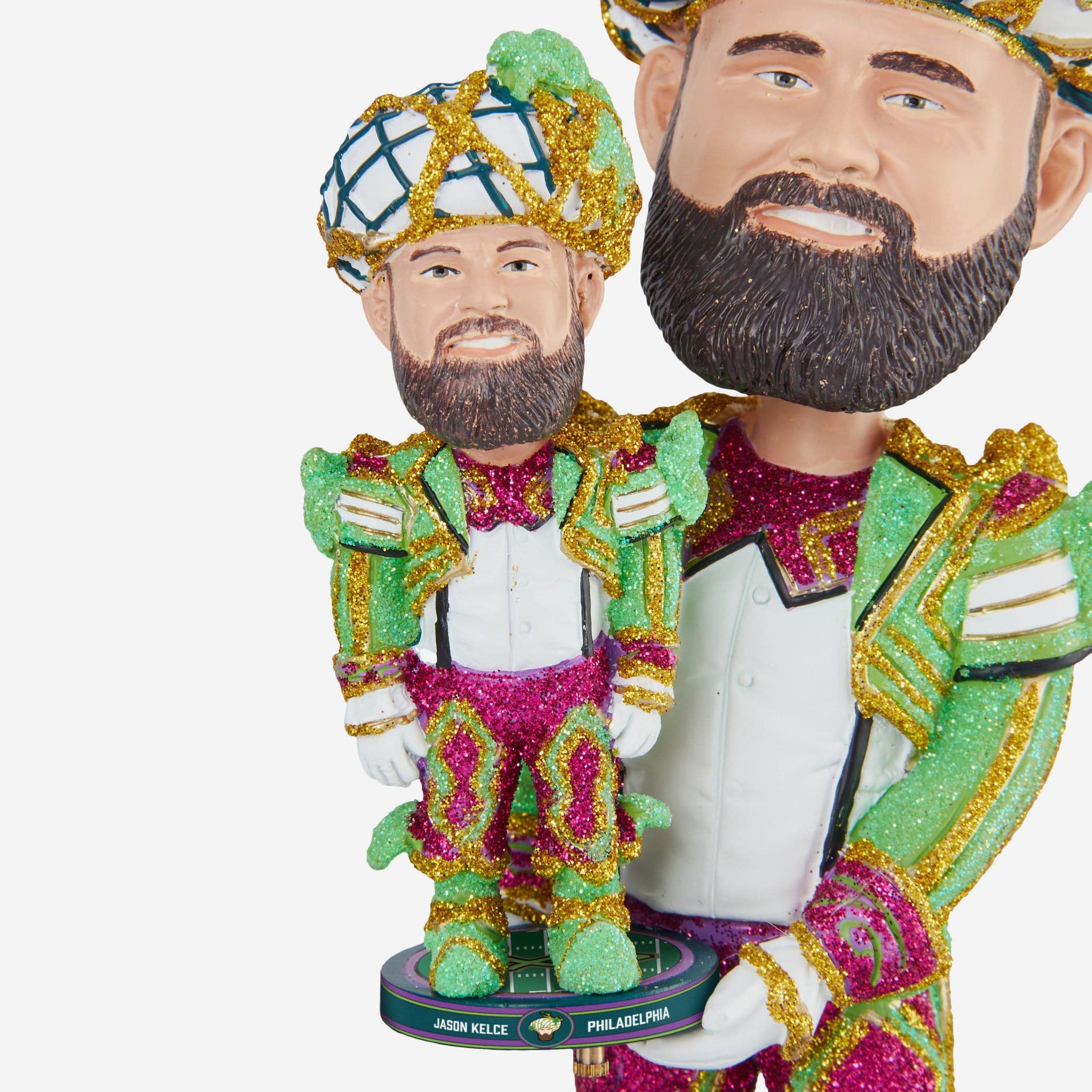Your favorite star is in good hands - their own! Get ready to double down in your collection with this Jason Kelce Mummer Suit Bobble Dubblz Bobblehead.