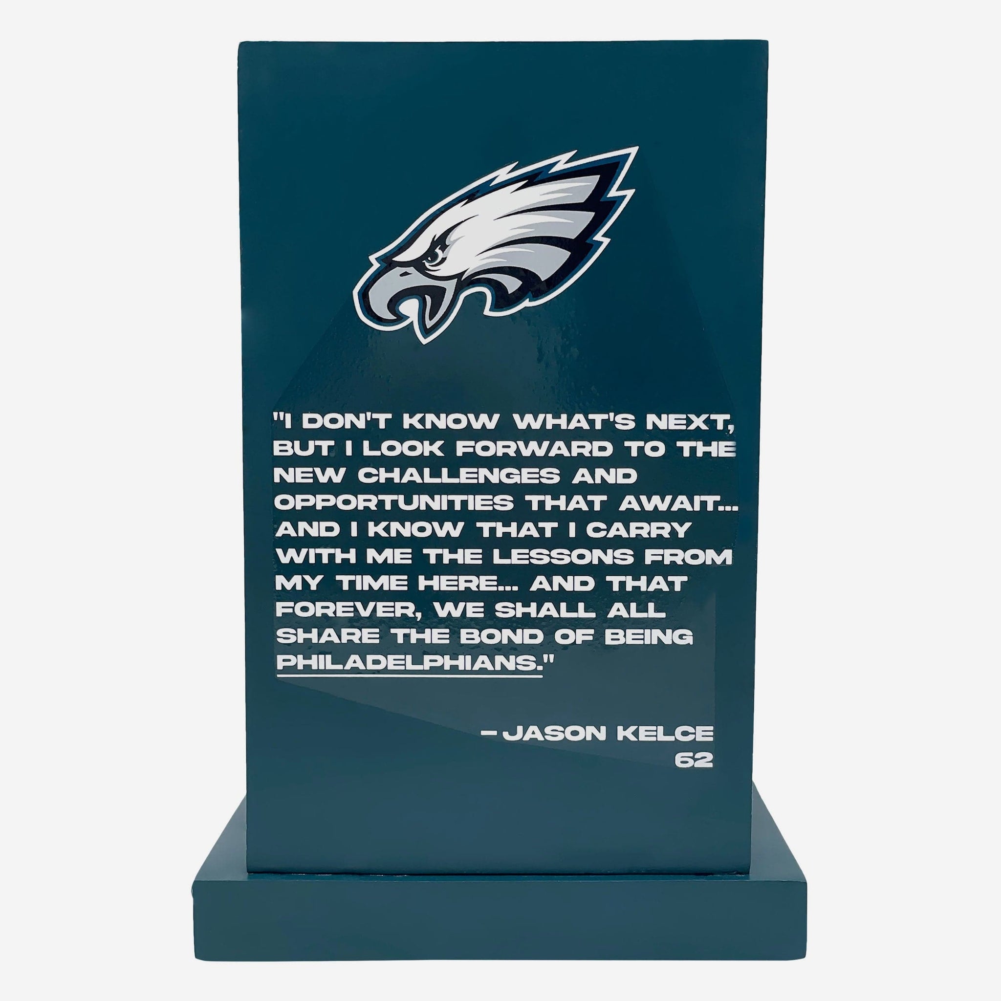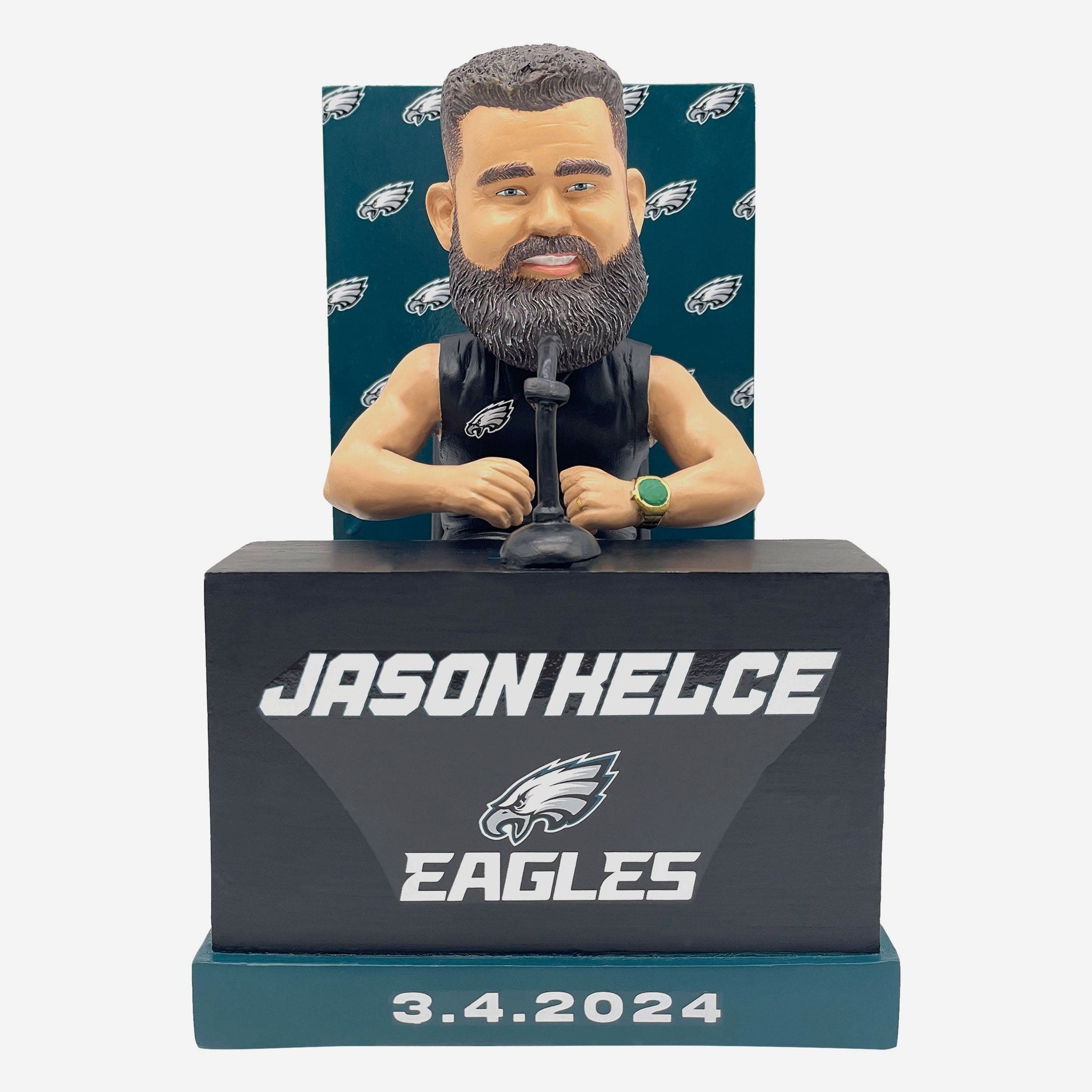 March 4, 2024: Kelce gives an emotional farewell to the Eagles. Forever share the bond of being Philadelphians with the Jason Kelce Philadelphia Eagles Podium Retirement Bobblehead.