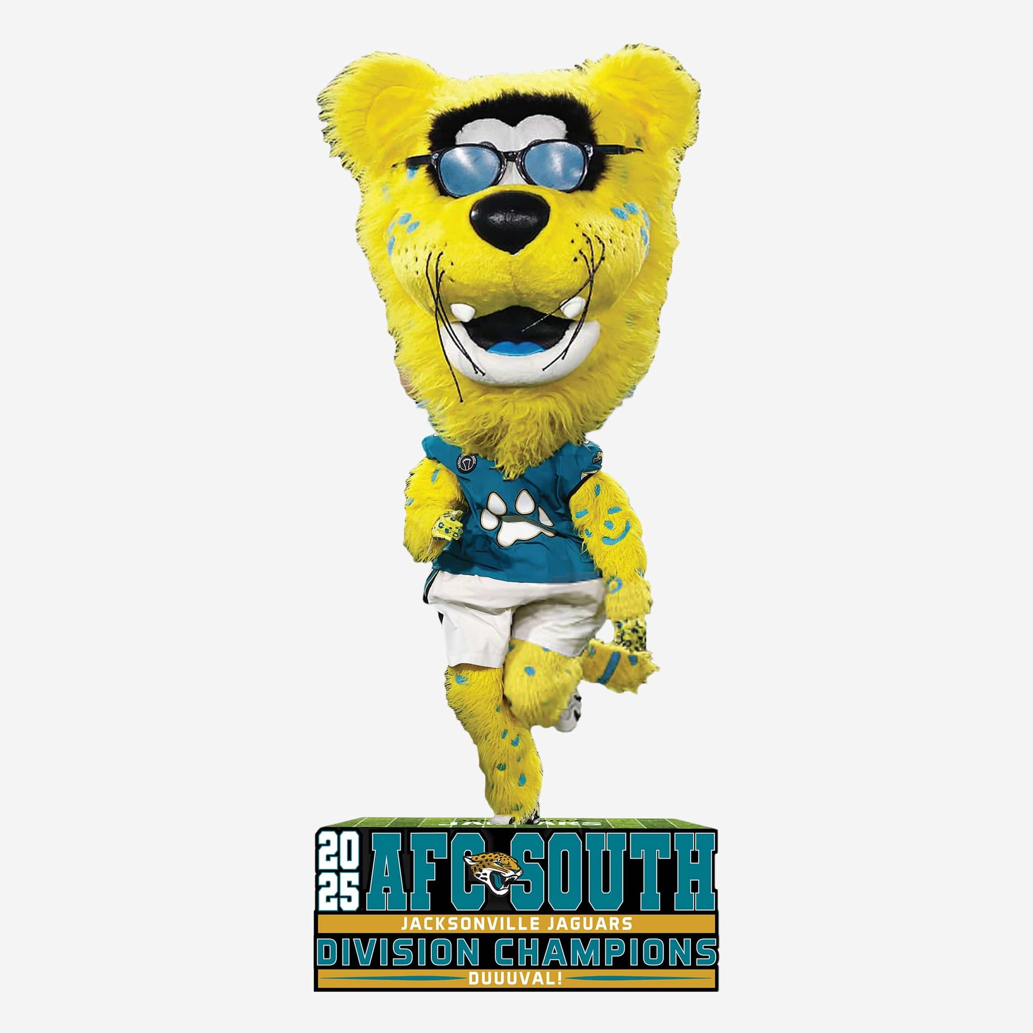 DUUUVAL! Celebrate a division-clinching season in true Jaguars style with this Jaxson de Ville Jacksonville Jaguars AFC South Division Champion Mini Bighead Bobblehead.