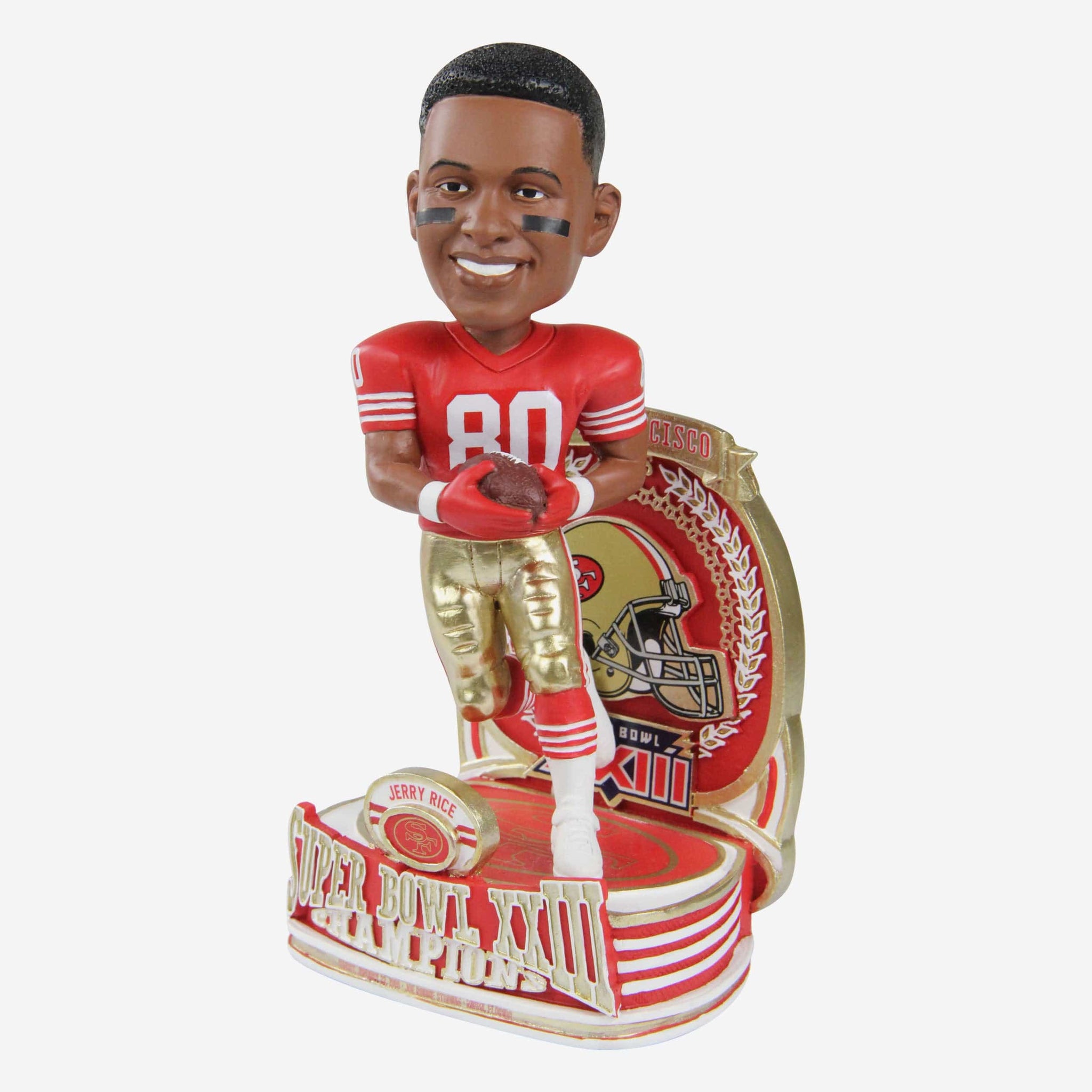 11 catches for 215 yards and a touchdown? Yeah, Jerry Rice did that on the game's grandest stage. Re-live some championship glory with an all-time great by bringing this Jerry Rice San Francisco 49ers Super Bowl XXIII Champions Commemorative Bobblehead to your collection.