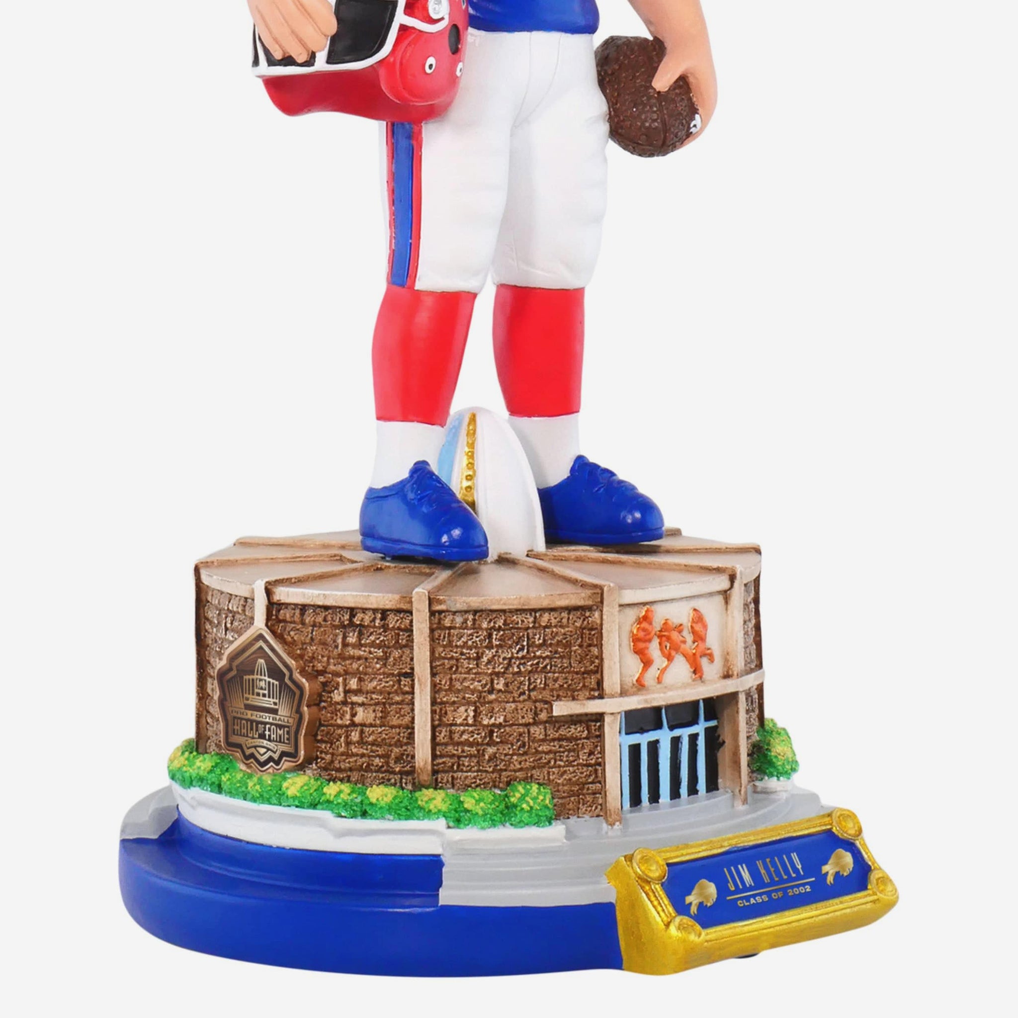 • Portrays Kelly in his gameday uniform, holding his helmet in a timeless Hall of Fame–worthy pose