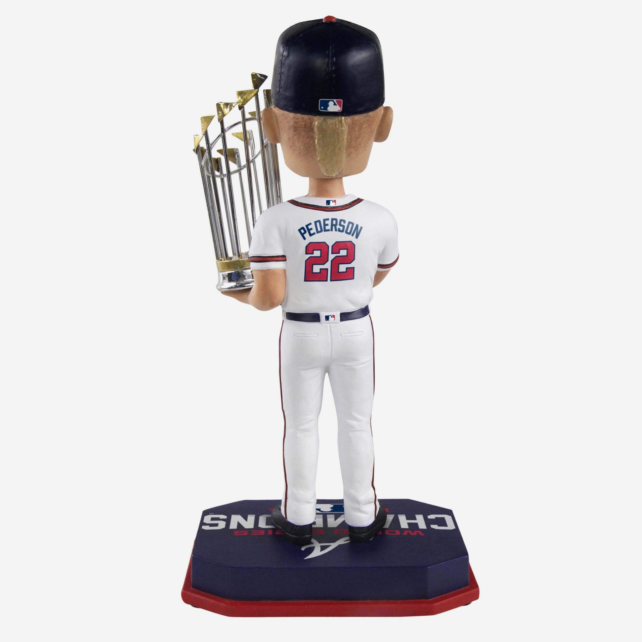 Bad news: You didn't get to go on the field and celebrate with the team. Good news: You can still celebrate with your favorite star in the friendly confines of your collection with this Joc Pederson Atlanta Braves 2021 World Series Champions Bobblehead!