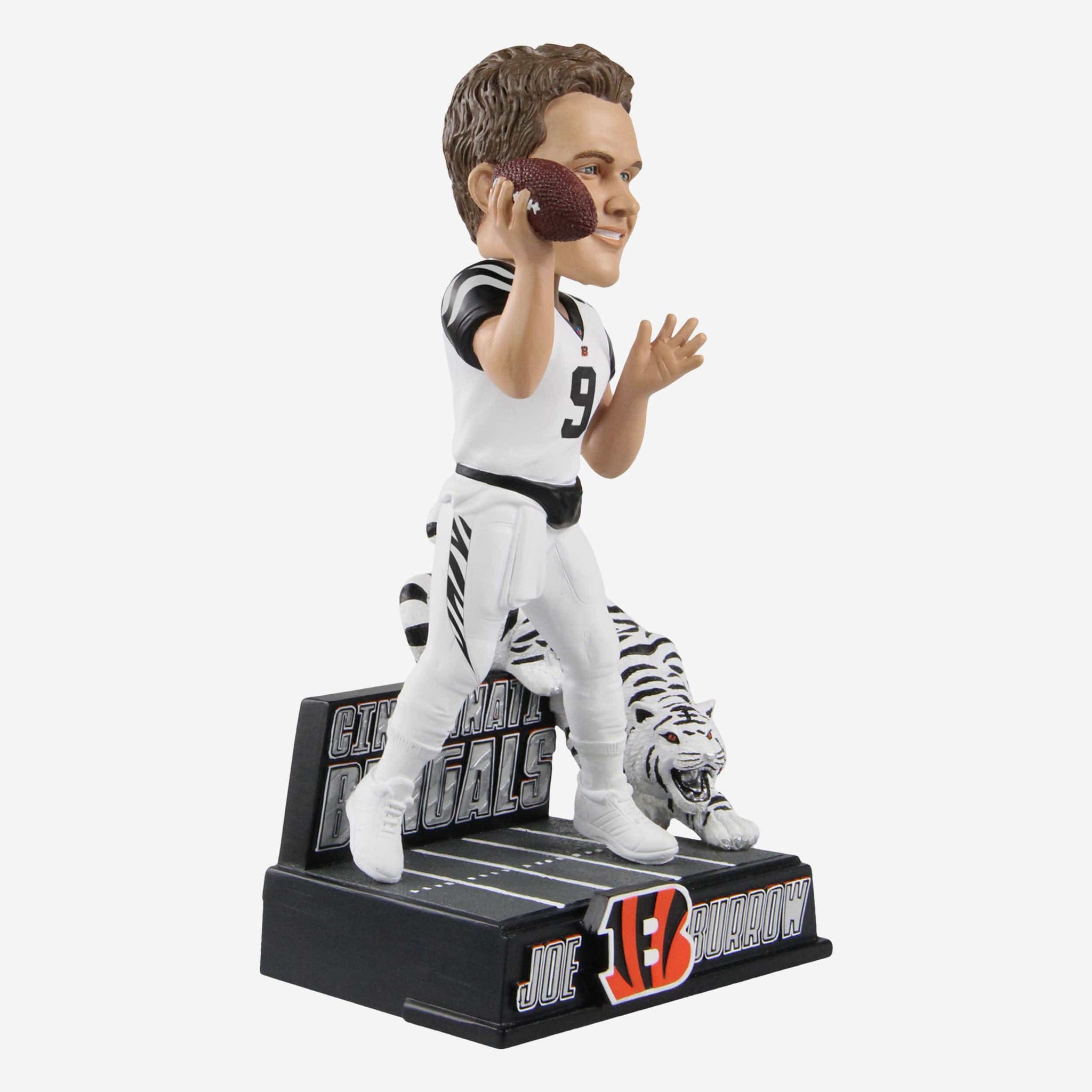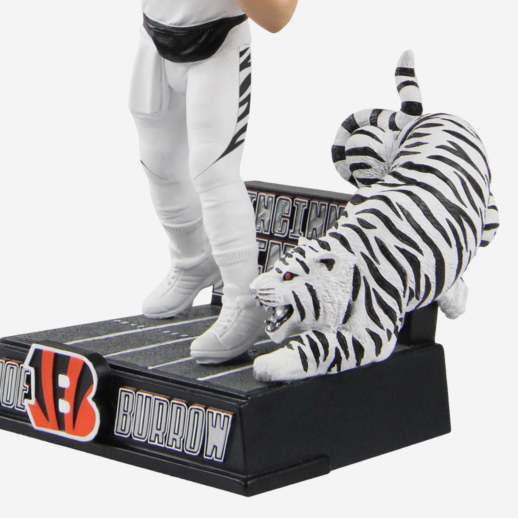 Does your collection have the eye of the tiger? If not, let's change that. Bring the heat with the icy white style of this Joe Burrow Cincinnati Bengals White Tiger Bobblehead.