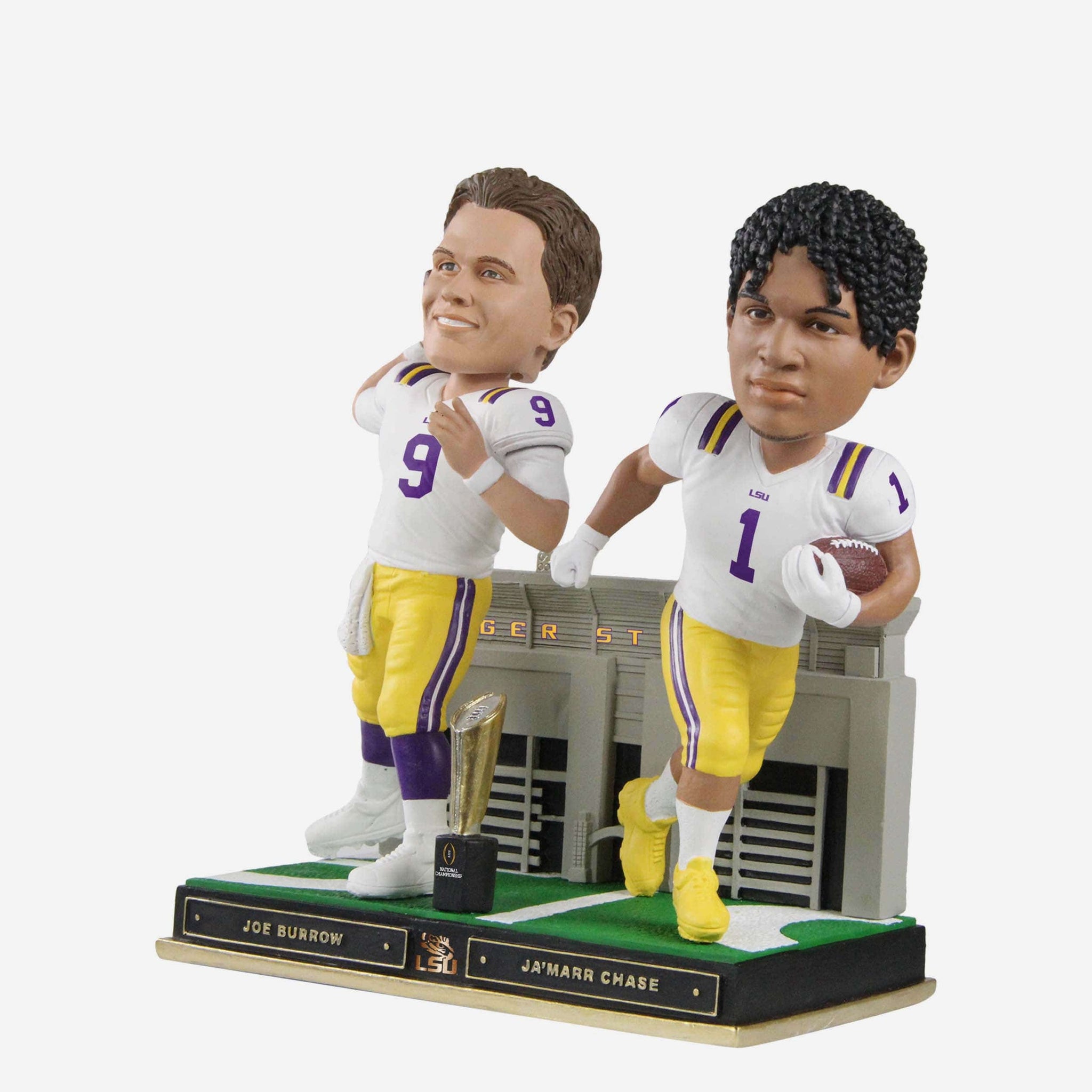 Death Valley ALWAYS came alive when this dynamic duo took the field. Celebrate Cajun Country's can't-miss connection with this Joe Burrow & Ja'Marr Chase LSU Tigers 2019 Trophy Dual Bobblehead.