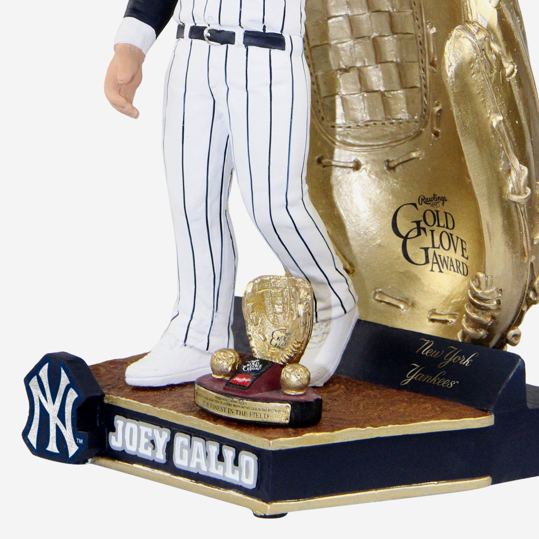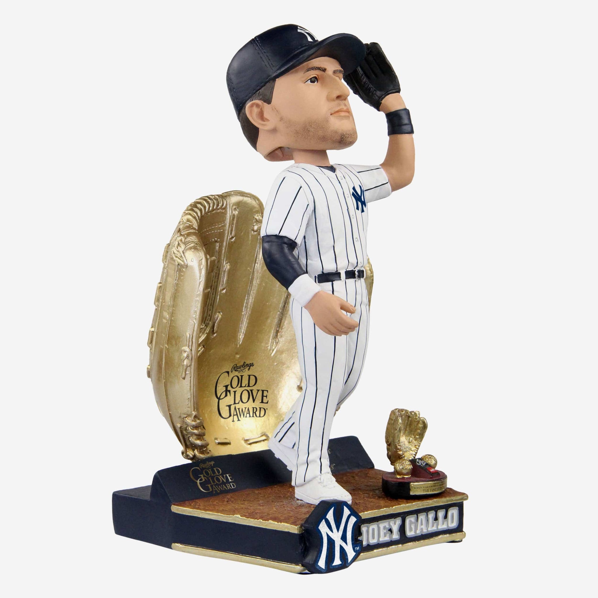 A Gold Glove award looks pretty good paired with pinstripes. Let everyone know what fielding excellence looks like with the Joey Gallo New York Yankees 2021 Gold Glove Bobblehead.