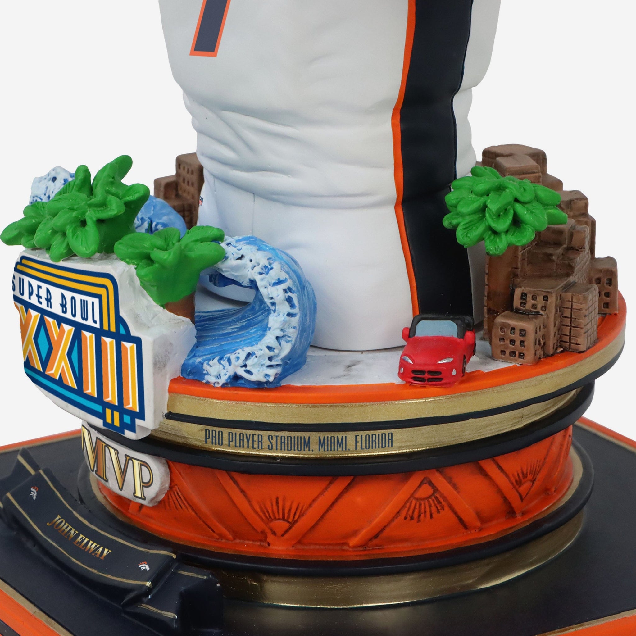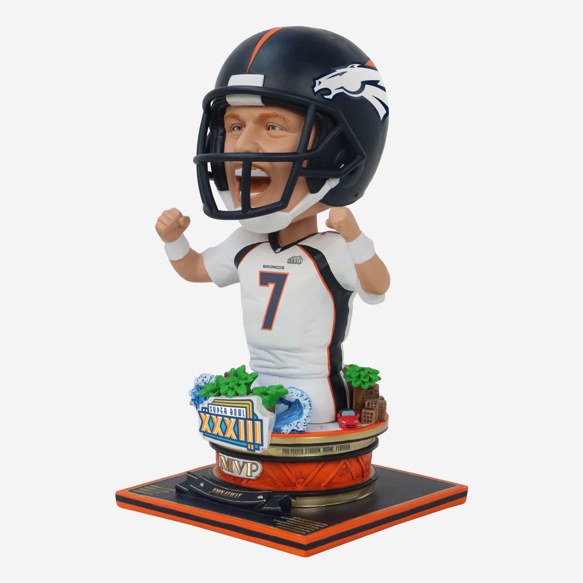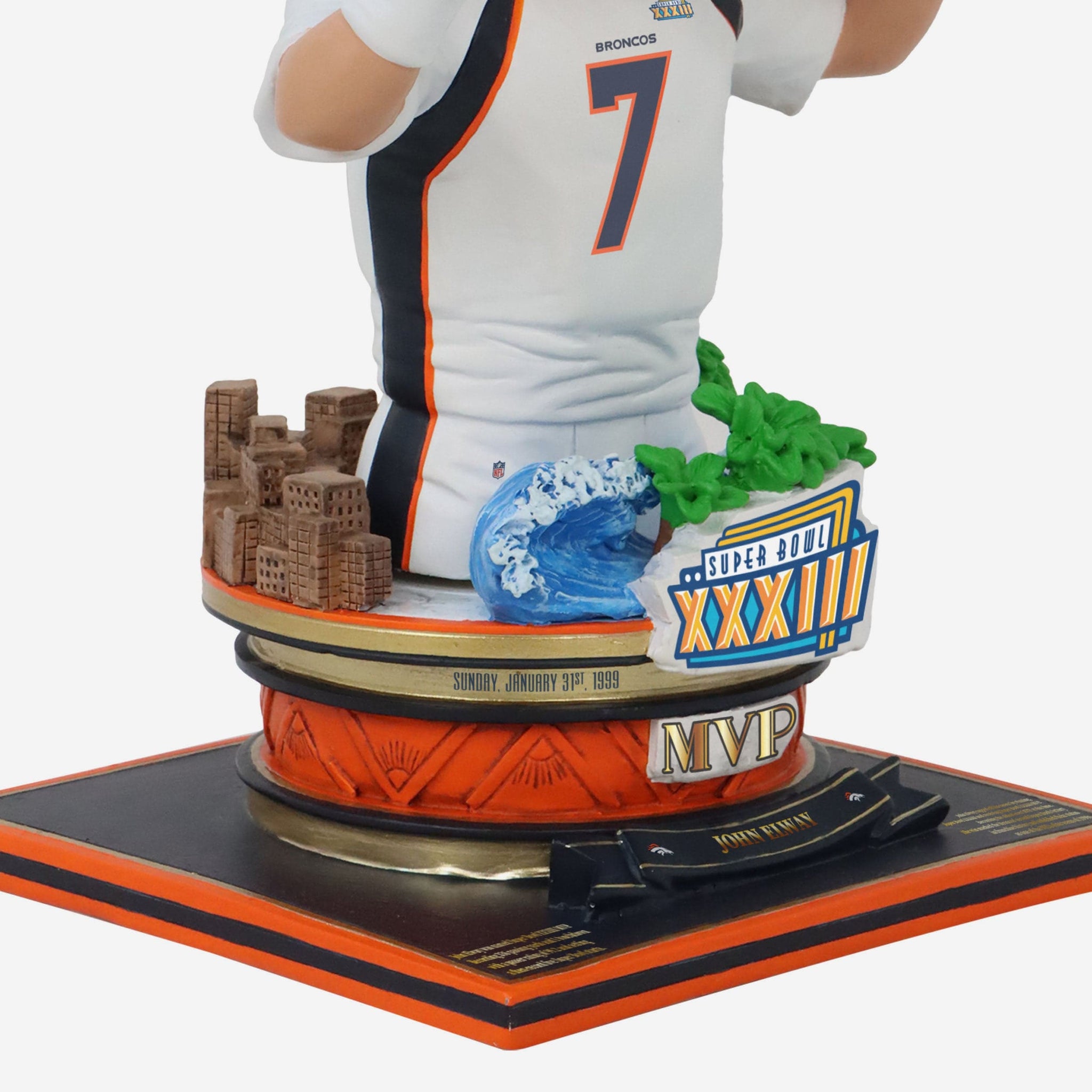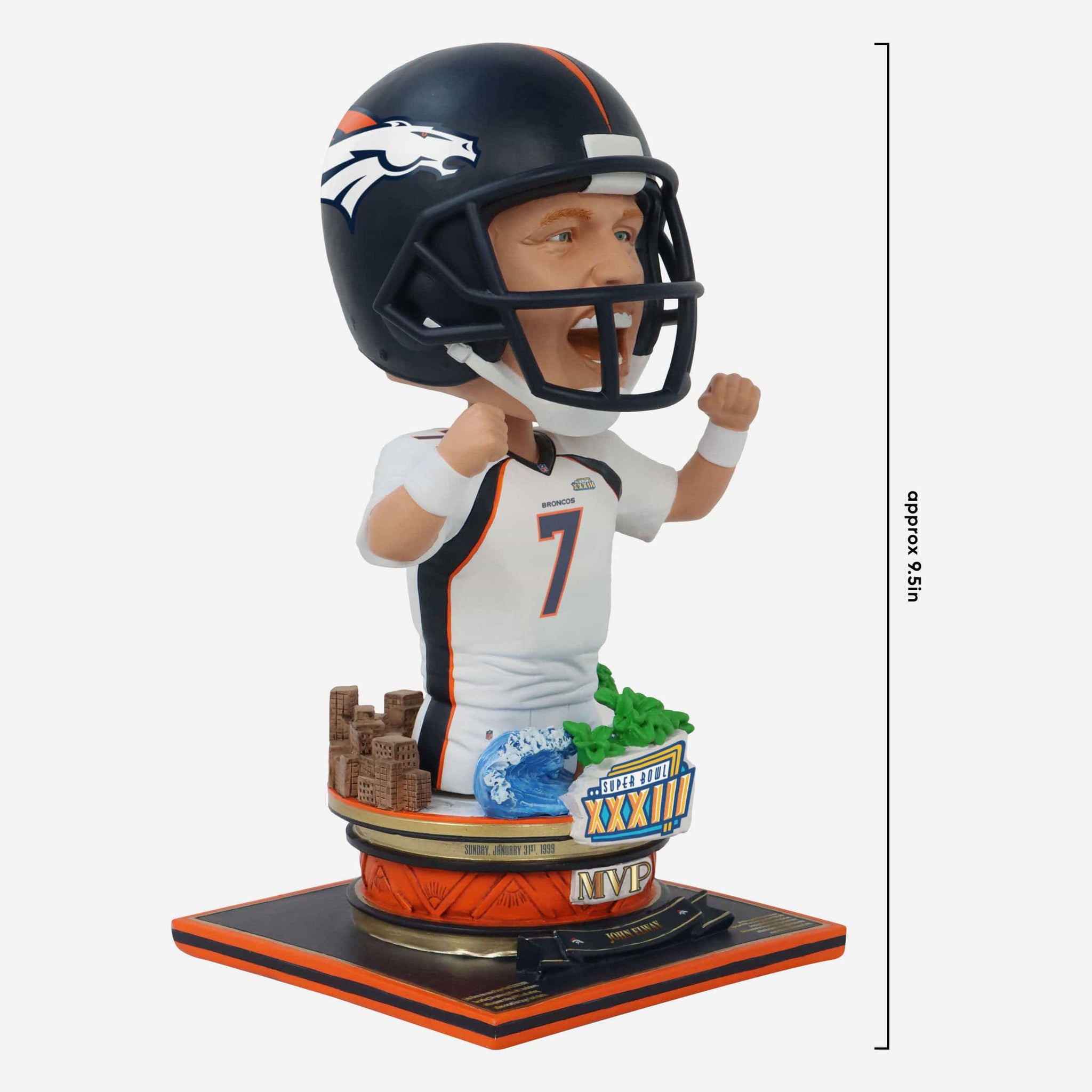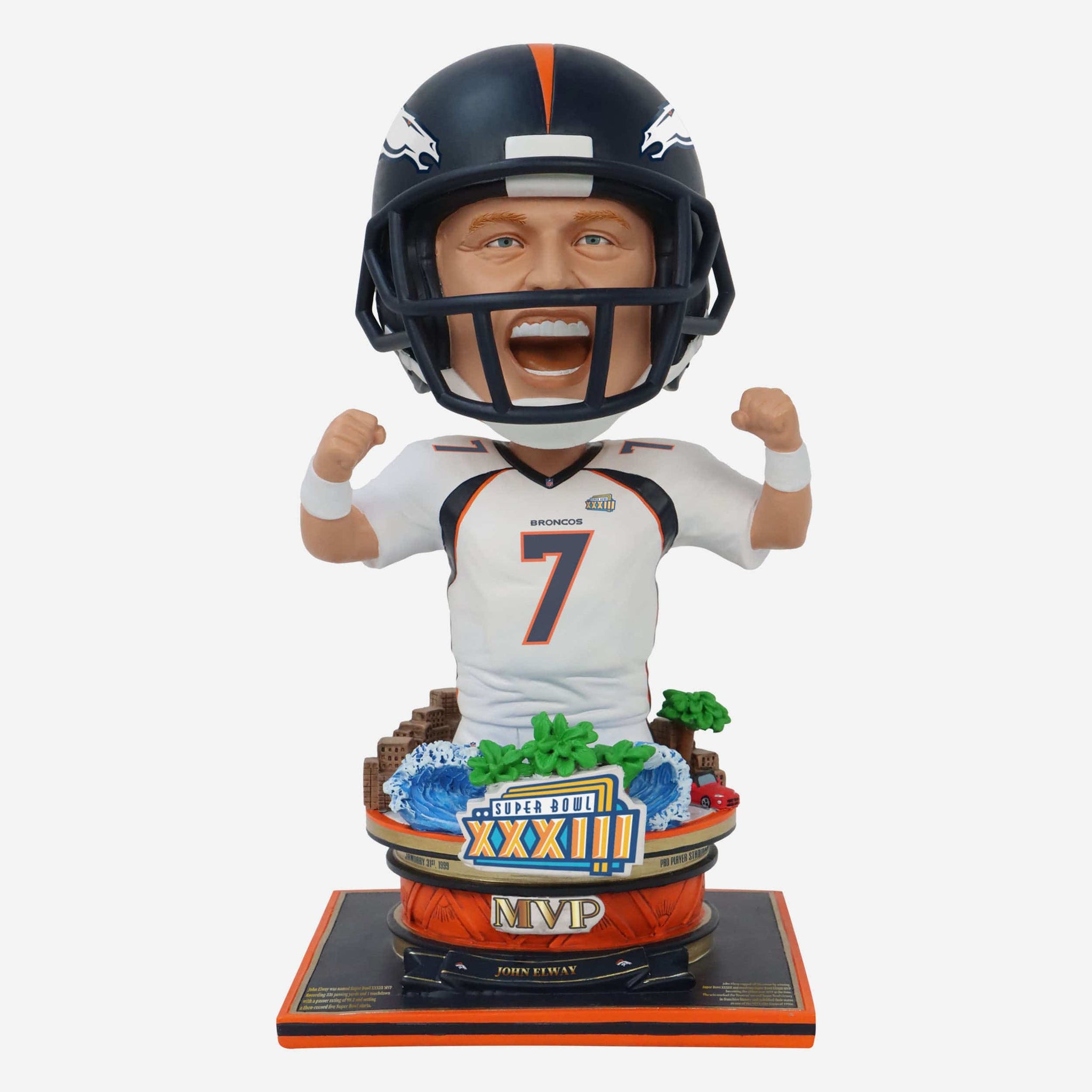 M-V-P! M-V-P! Turn back the clock and show off a "Super" player from the past with this John Elway Denver Broncos Super Bowl XXXIII MVP Bust Bighead Bobblehead.