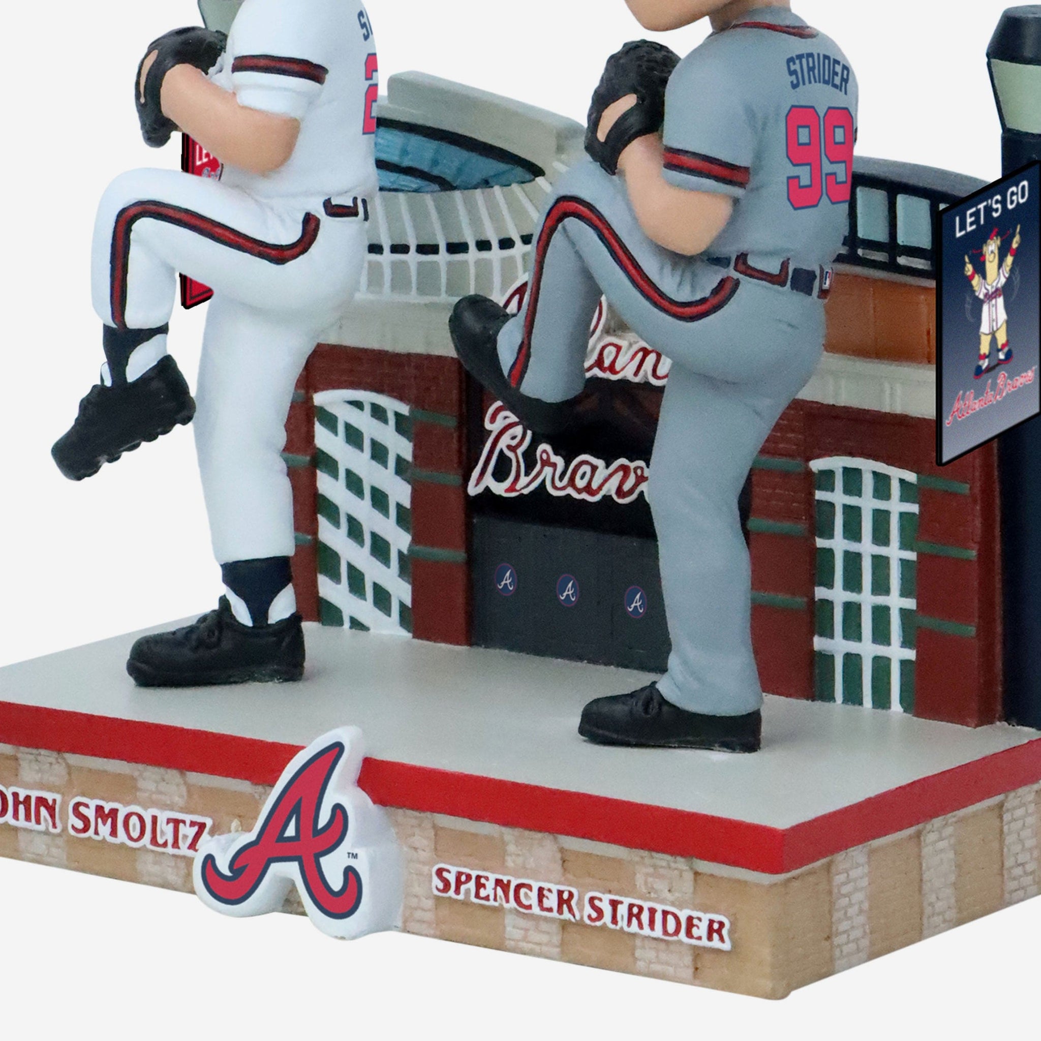 Your rotation is in for a timeless upgrade. Bring a Braves legend of the past and a star of today together with the John Smoltz & Spencer Strider Atlanta Braves Then and Now Bobblehead.