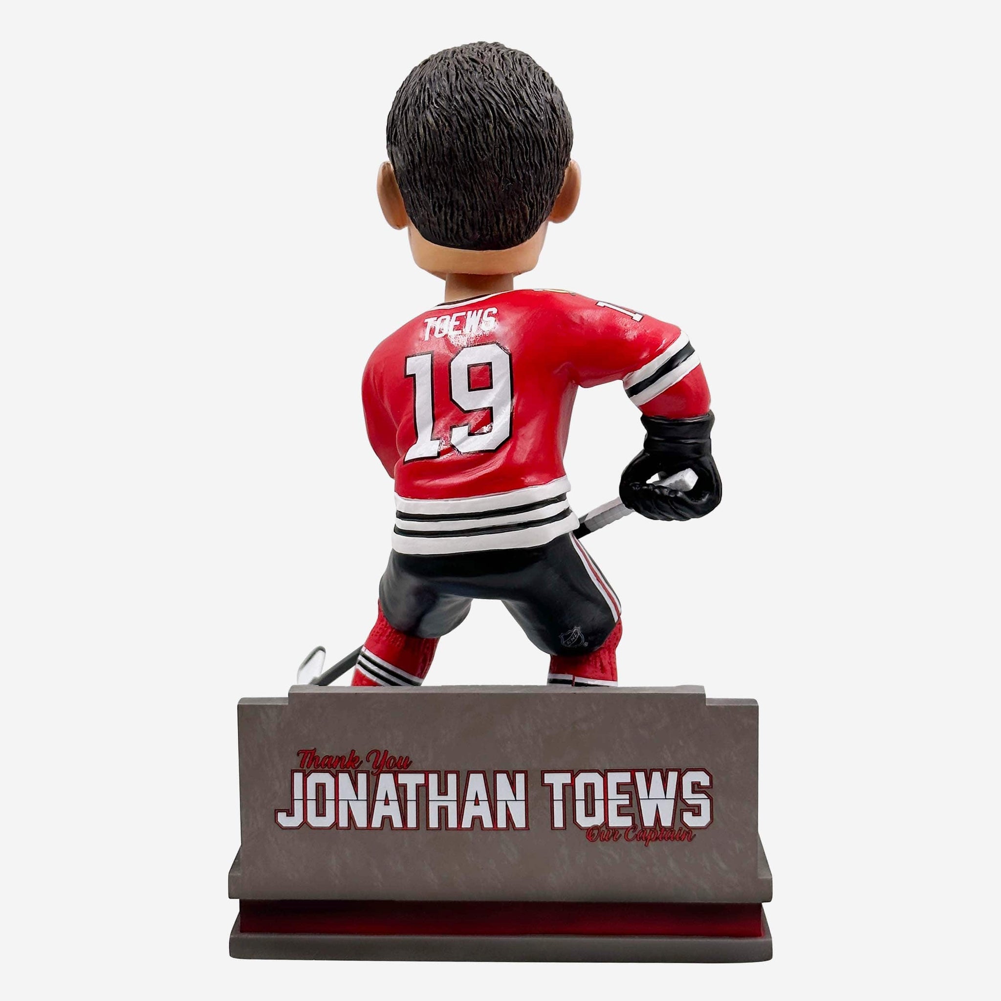 Three championships. One MVP. 10 All-Star nods. It all adds up to one incredible Chi Town curtain call. Celebrate a legendary Blackhawks career with the Jonathan Toews Chicago Blackhawks Farewell Bobblehead.