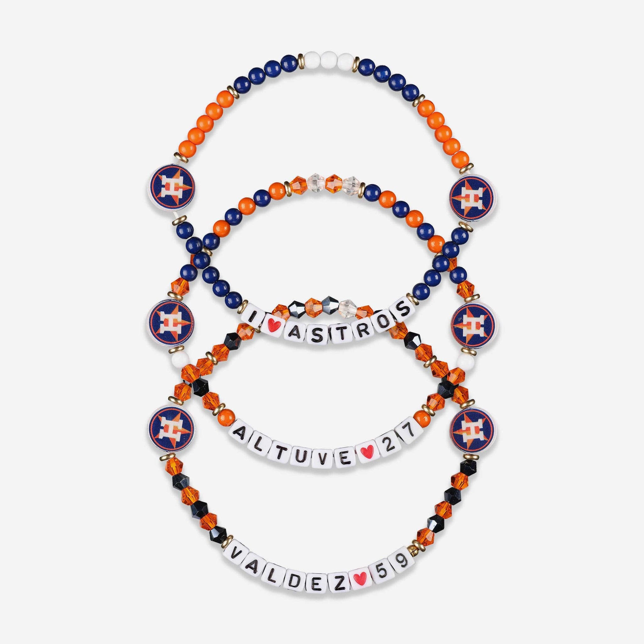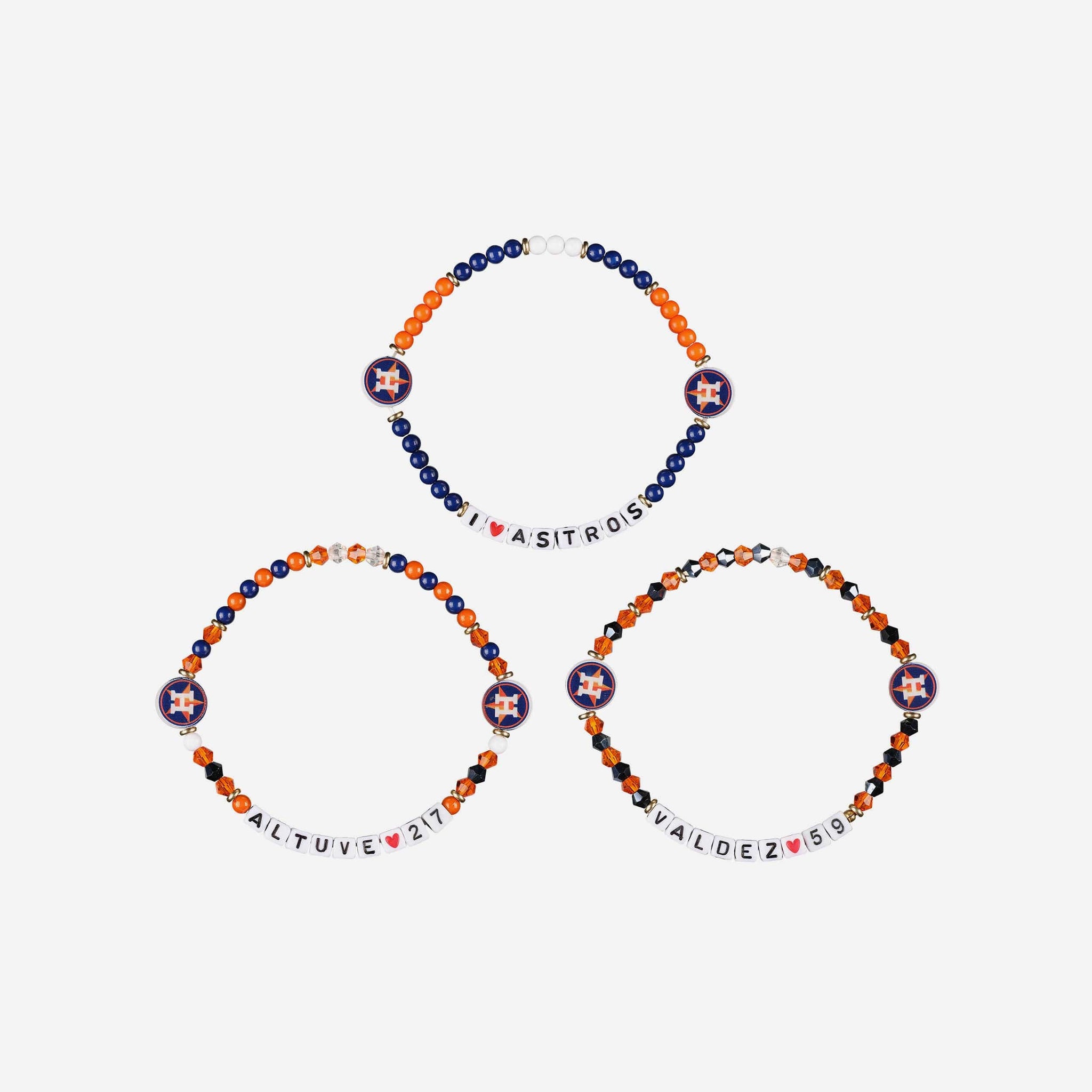 Accessorize and maximize your fandom while impressing your fellow fans with this Jose Altuve & Framber Valdez Houston Astros 3 Pack Player Friendship Bracelet. These matching friendship bracelets have an all-over team-colored design and team logo displays, which makes them the perfect way to show your support for the Houston Astros and get in on the latest accessory craze.