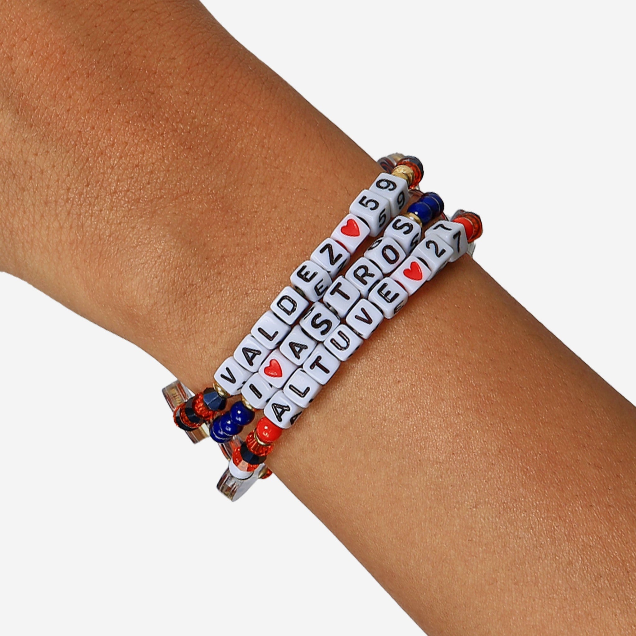 - Thematic words displayed: Letter cubes are organized on a friendship bracelet string to display team-specific words, messages, and player names that will make sure these Jose Altuve & Framber Valdez player friendship bracelets always have your team spirit front and center.