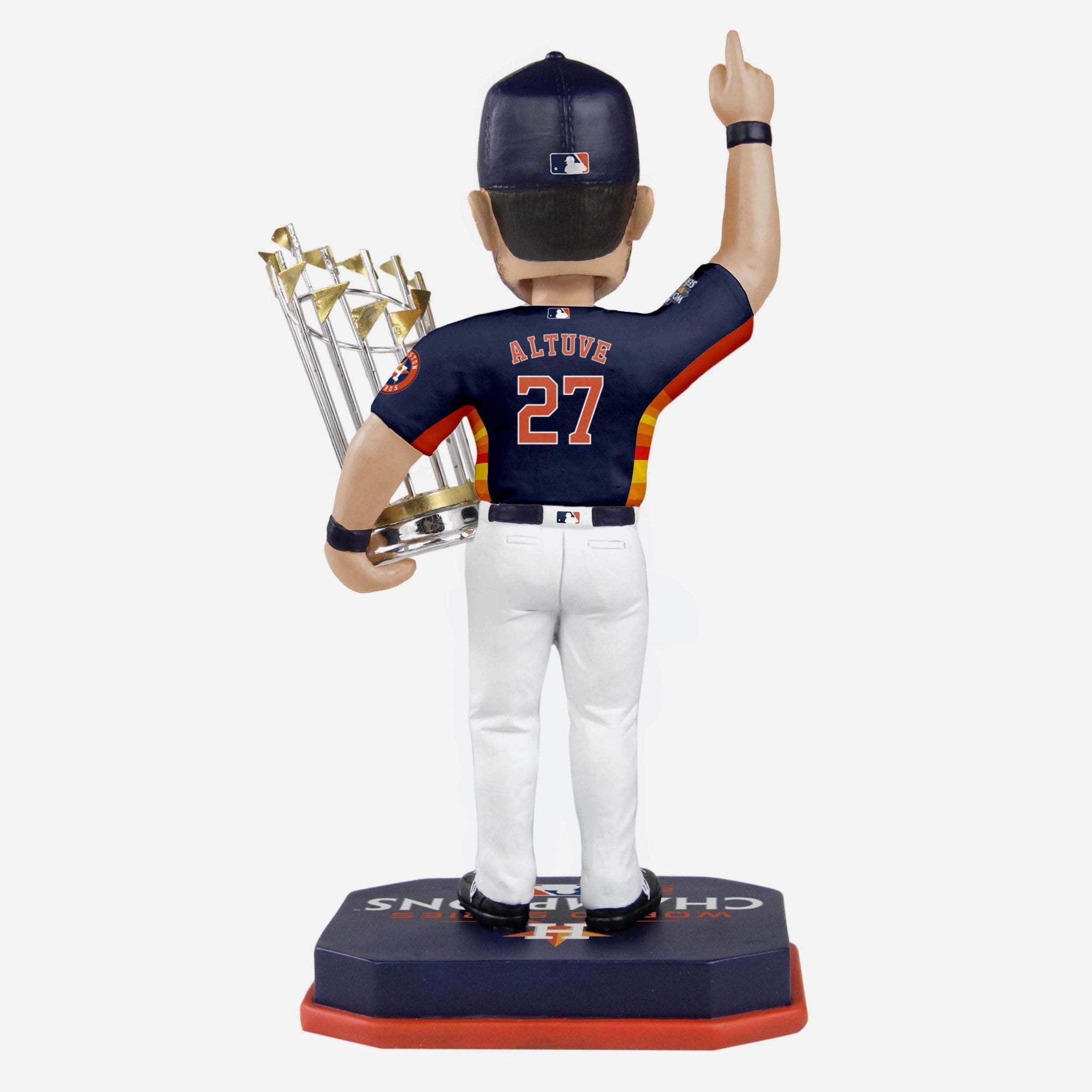 • Portrays Altuve posing in his navy blue gameday uniform and holding World Series championship trophy, because no championship celebration is complete without a little hardware