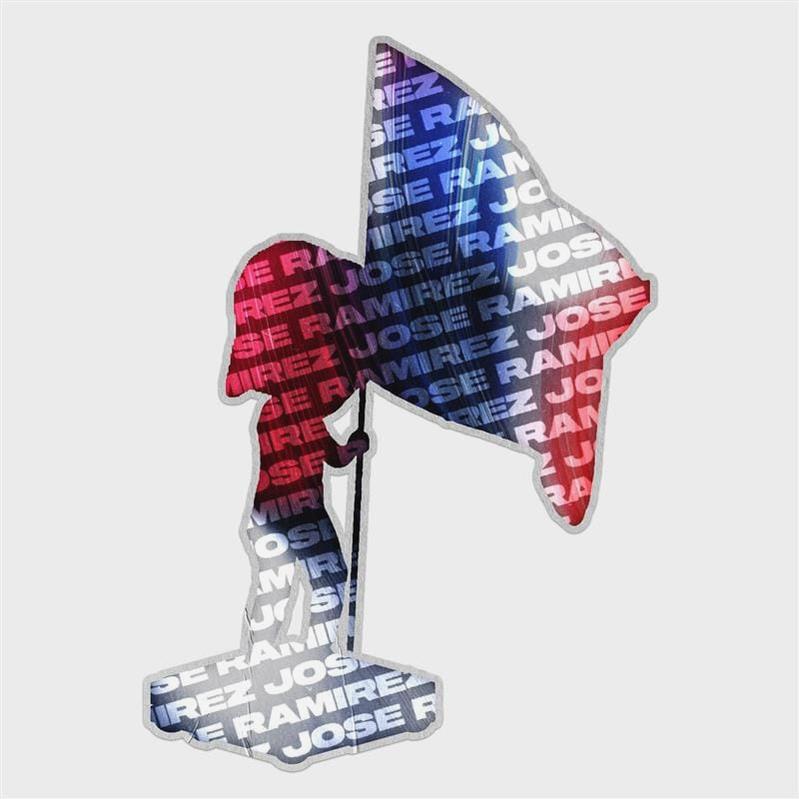 - Portrays Ramírez wearing his gameday uniform, standing proudly and waving a bold “AL Central Champions” team flag