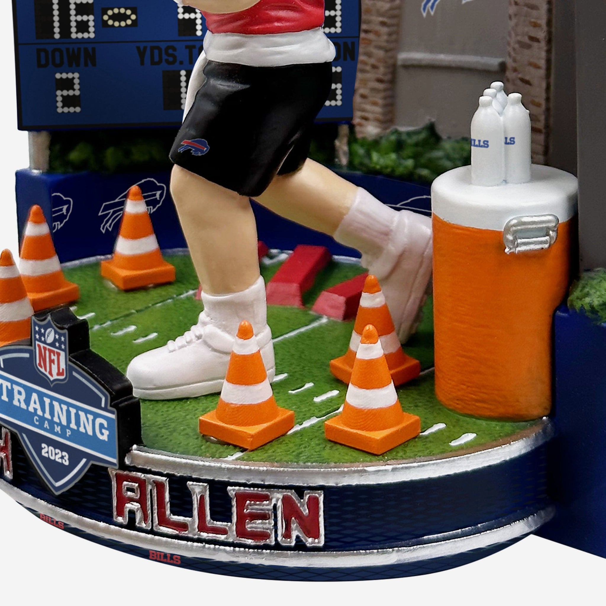 Break out those drill cones and pylons, and make sure the water coolers are filled, because it's training camp time. Get your collection into game shape with this Josh Allen Buffalo Bills 2023 Training Camp Mini Bobblehead Scene.