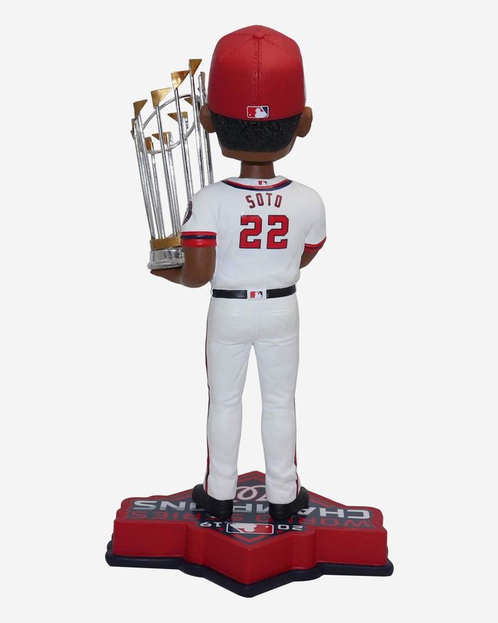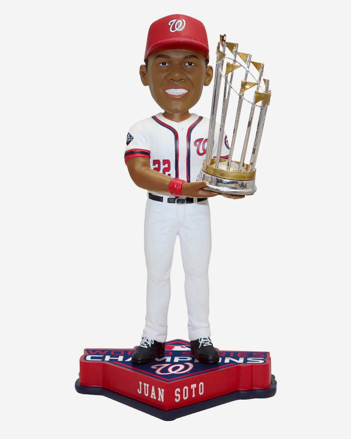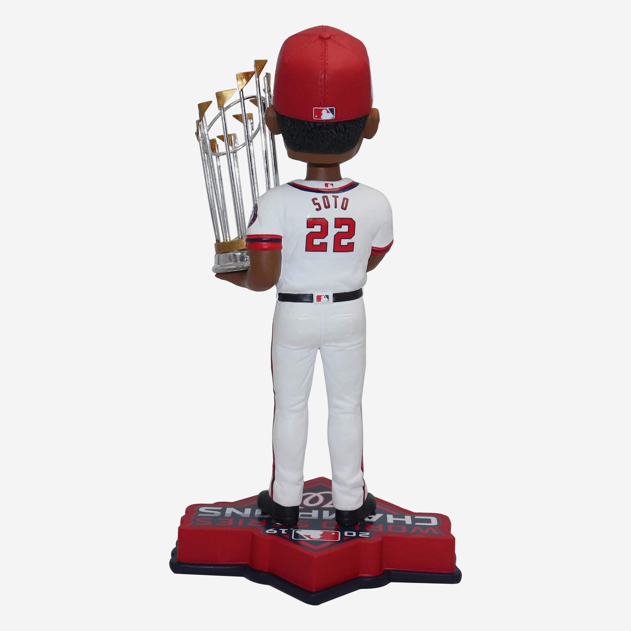 So, you're celebrating a World Series championship. Awesome! But, you didn't get an invite to the team's VIP party. Bummer. That doesn't mean you can't celebrate with your favorite player, though. Just put this Juan Soto Washington Nationals 2019 World Series Champions Bobblehead on your desk and bask in the glory of victory.