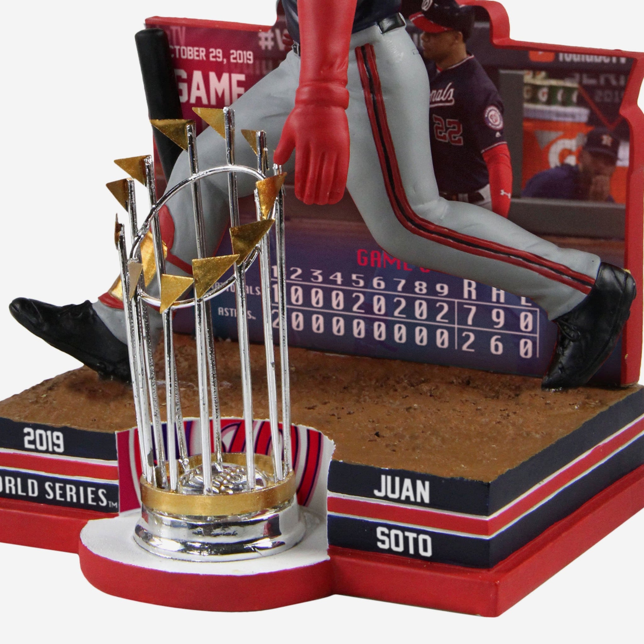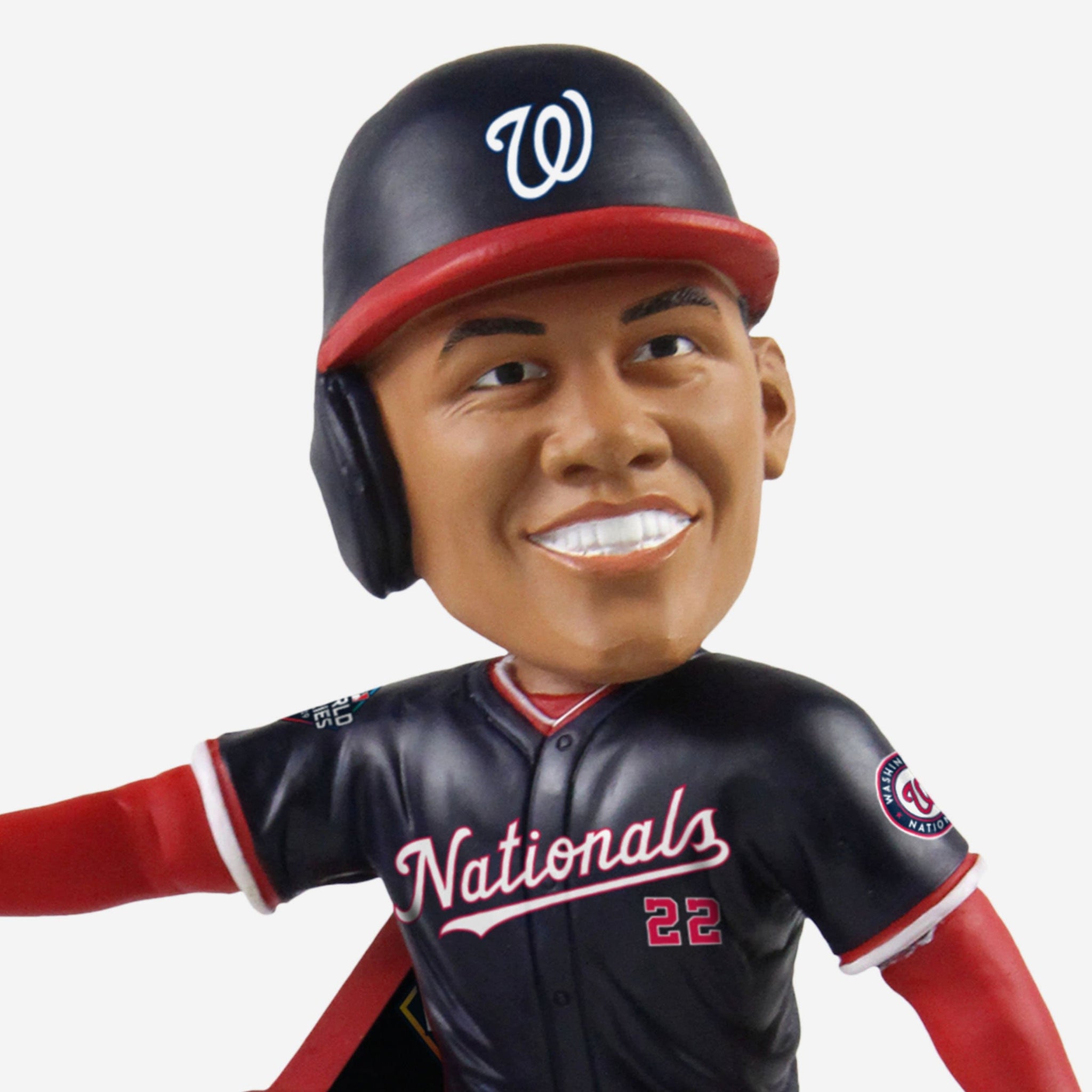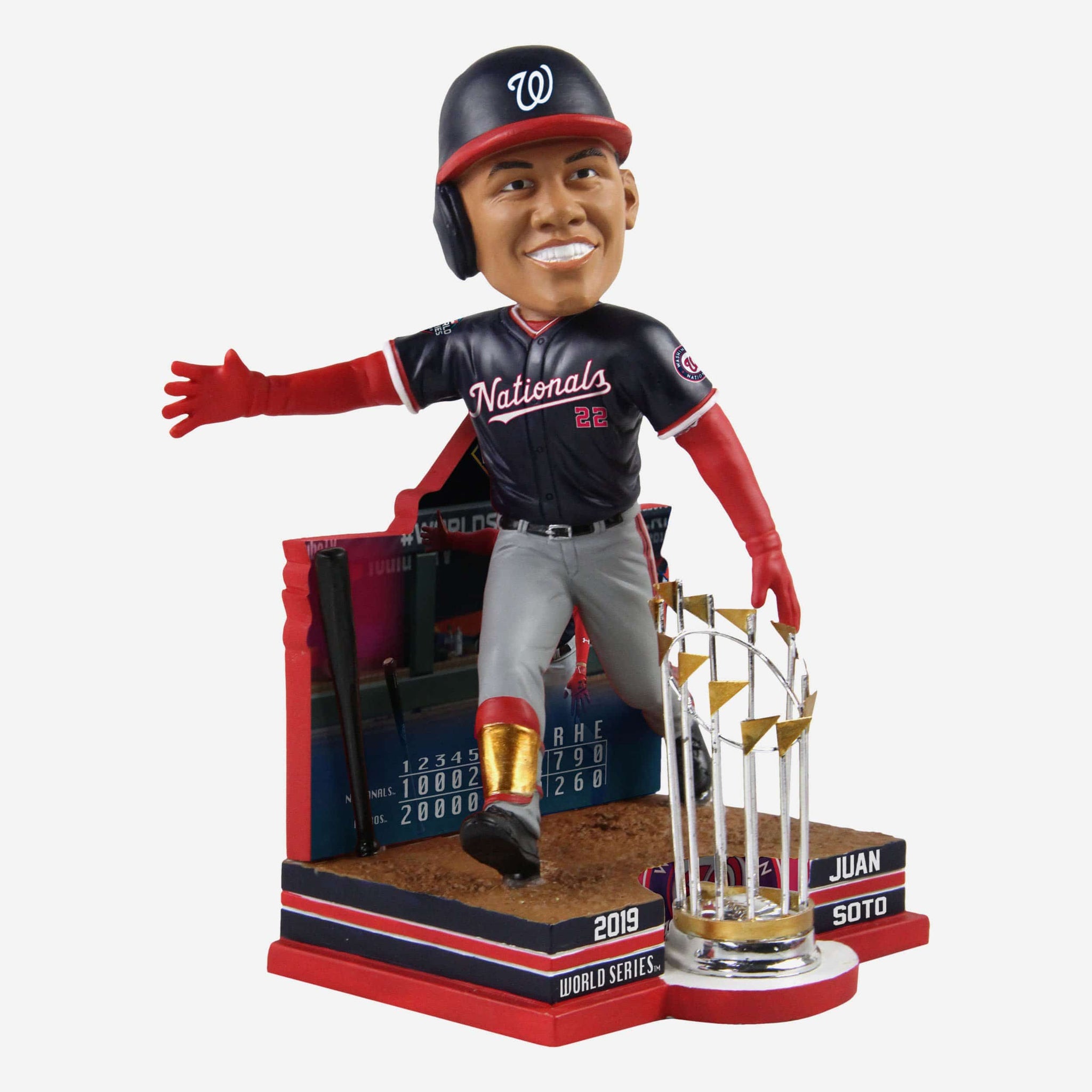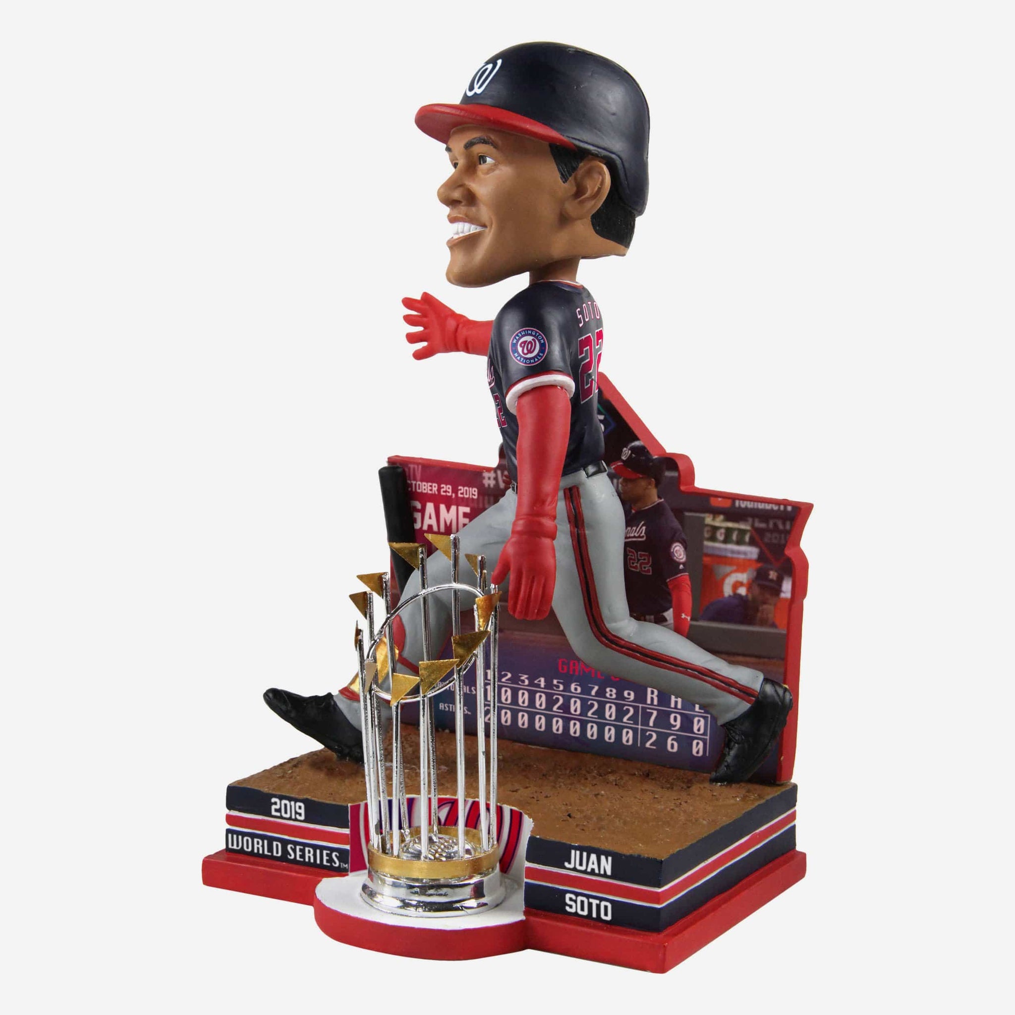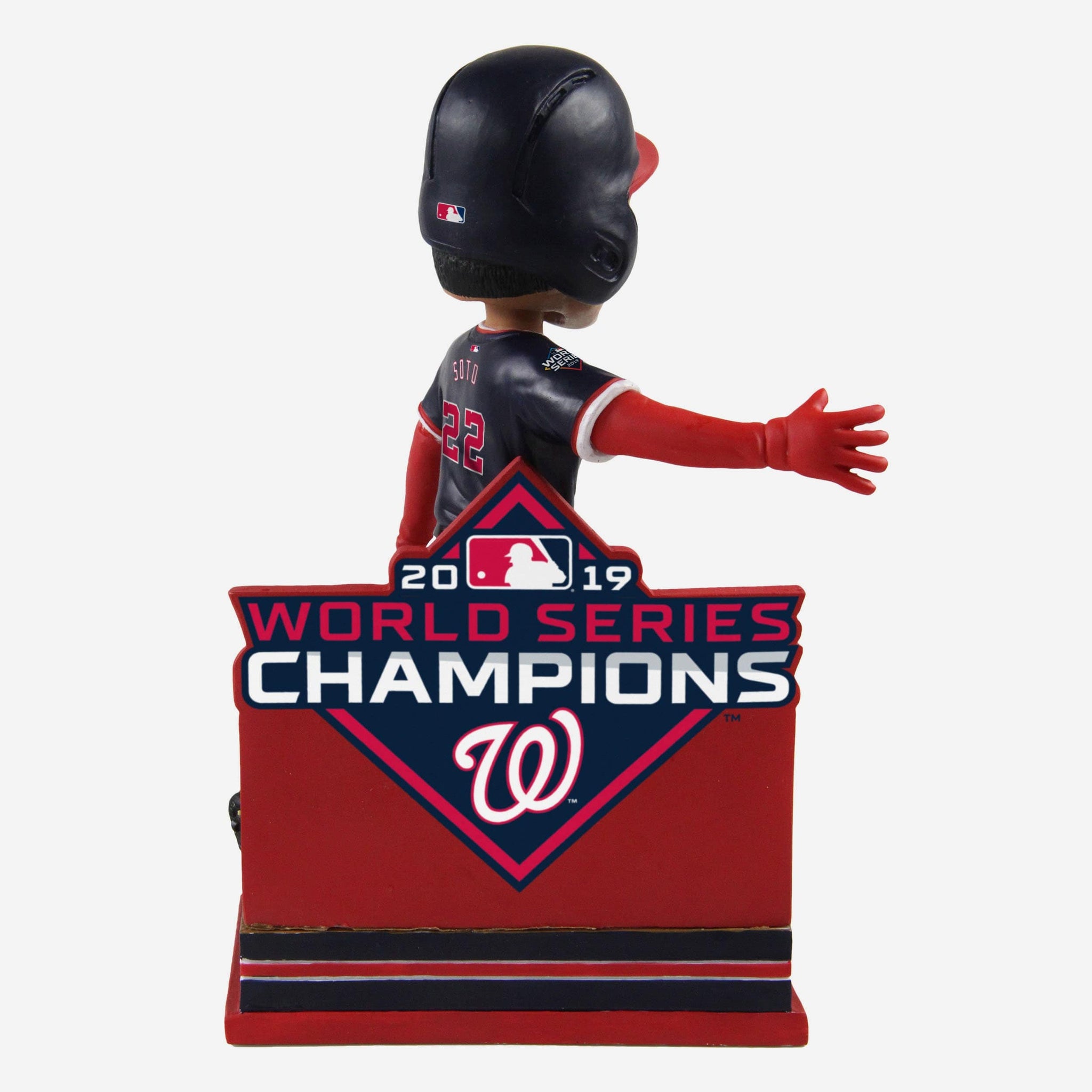 An epic World Series had plenty of epic moments. An epic moment deserves to be celebrated with an epic bobblehead. And this Juan Soto Washington Nationals 2019 World Series Champions Moment Bobblehead is very much an epic bobblehead. Add it to your lineup and show off your Natitude at your desk.