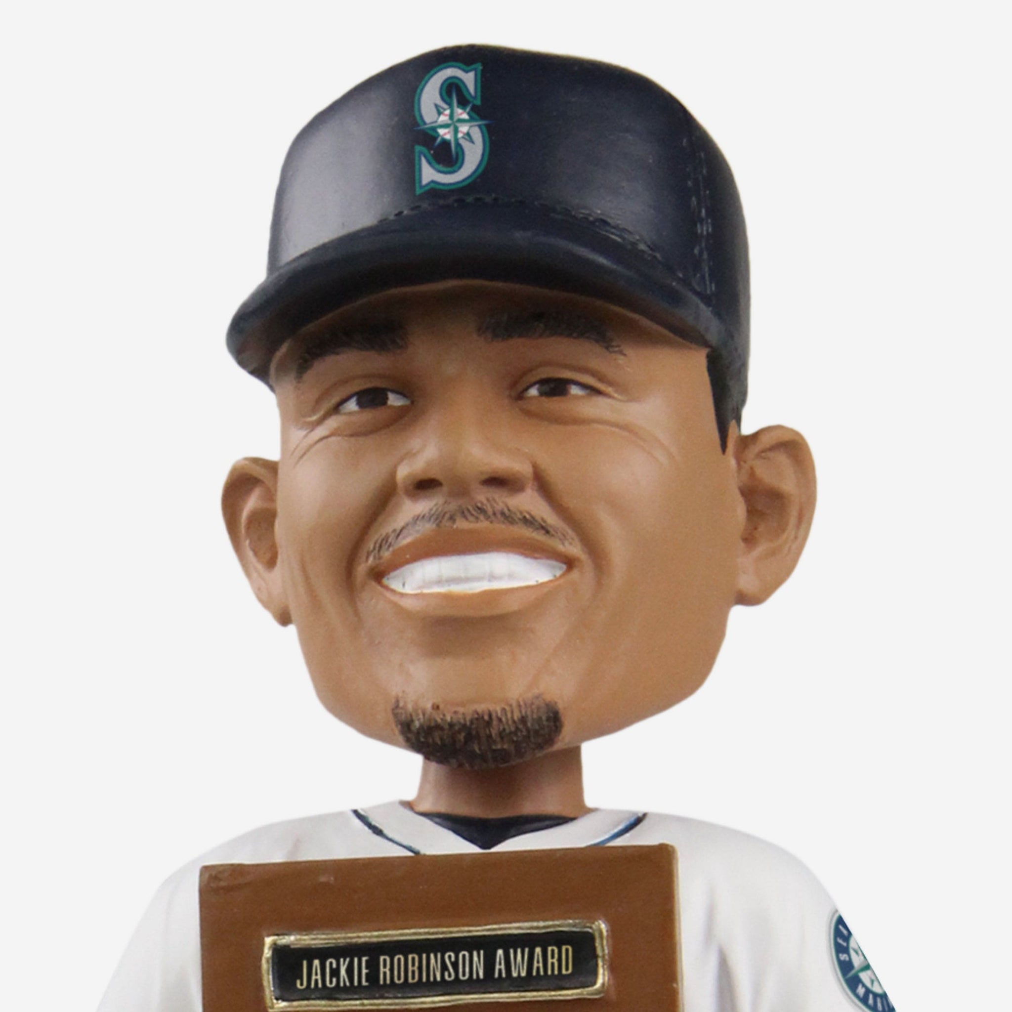 There's a new kid on the block in the AL. All your fellow M's fans will be green, er, teal with envy when they SEA this Julio Rodriguez Seattle Mariners 2022 AL Rookie of the Year Bobblehead in your starting lineup.