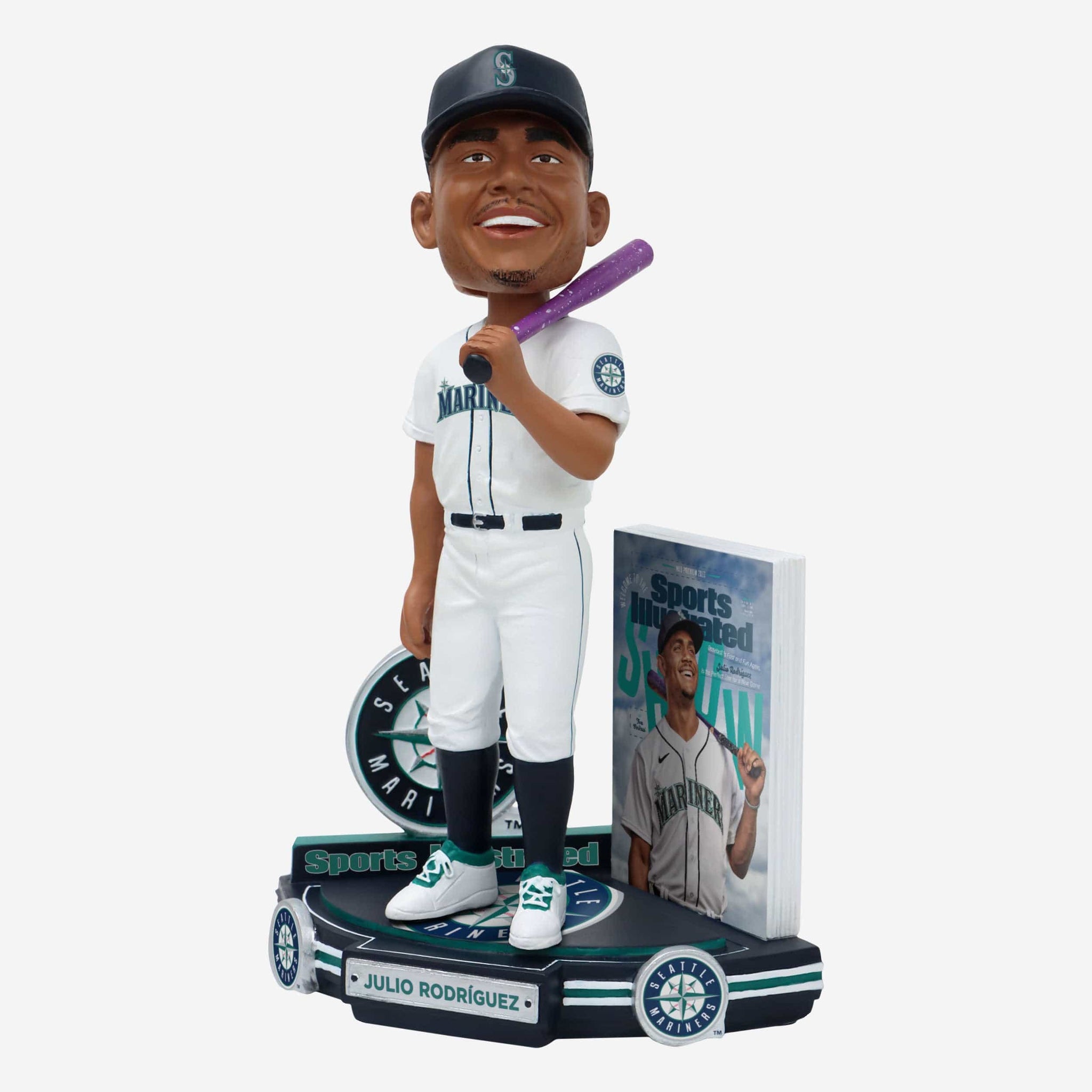 Welcome to the Show! Let everyone know the next wave is now with a Julio Rodriguez Seattle Mariners Welcome To The Show Sports Illustrated Cover Bobblehead.