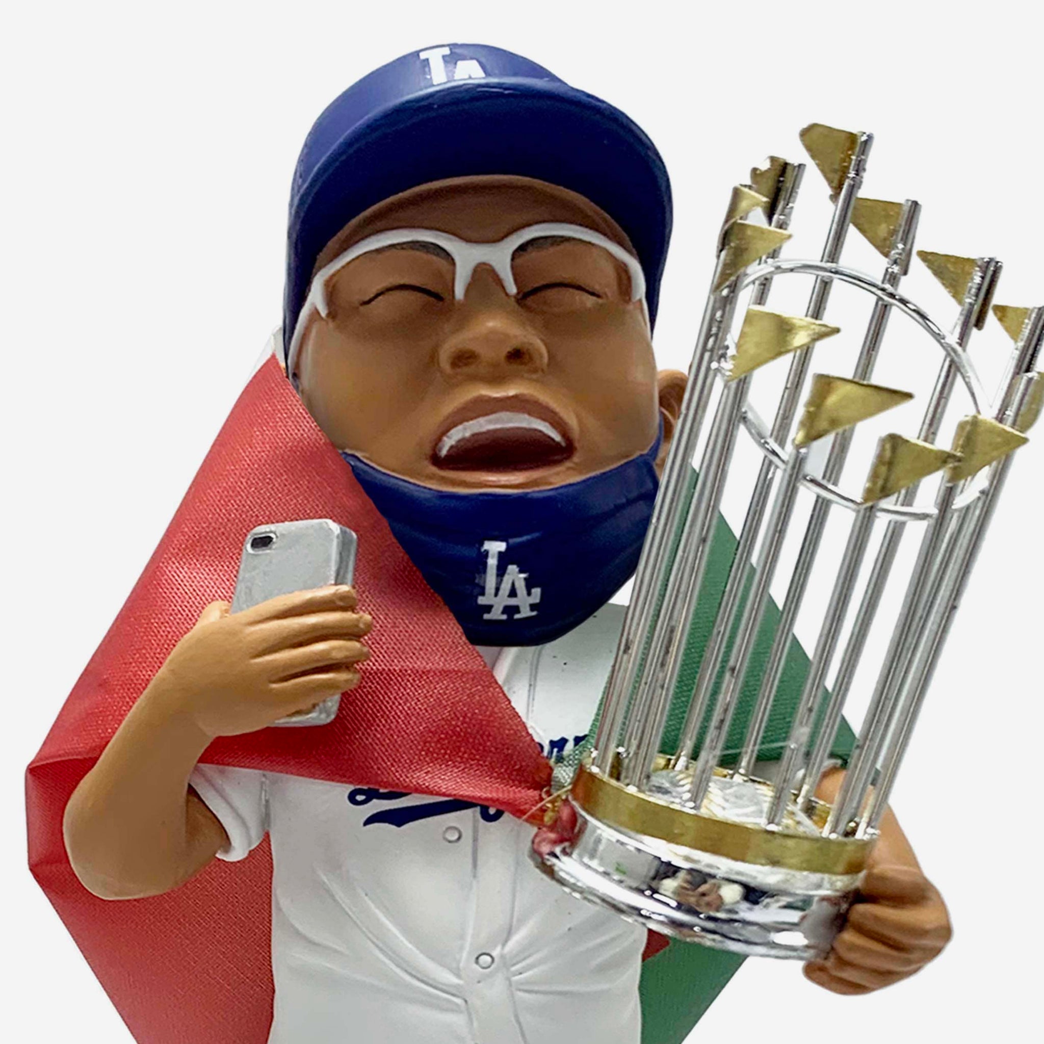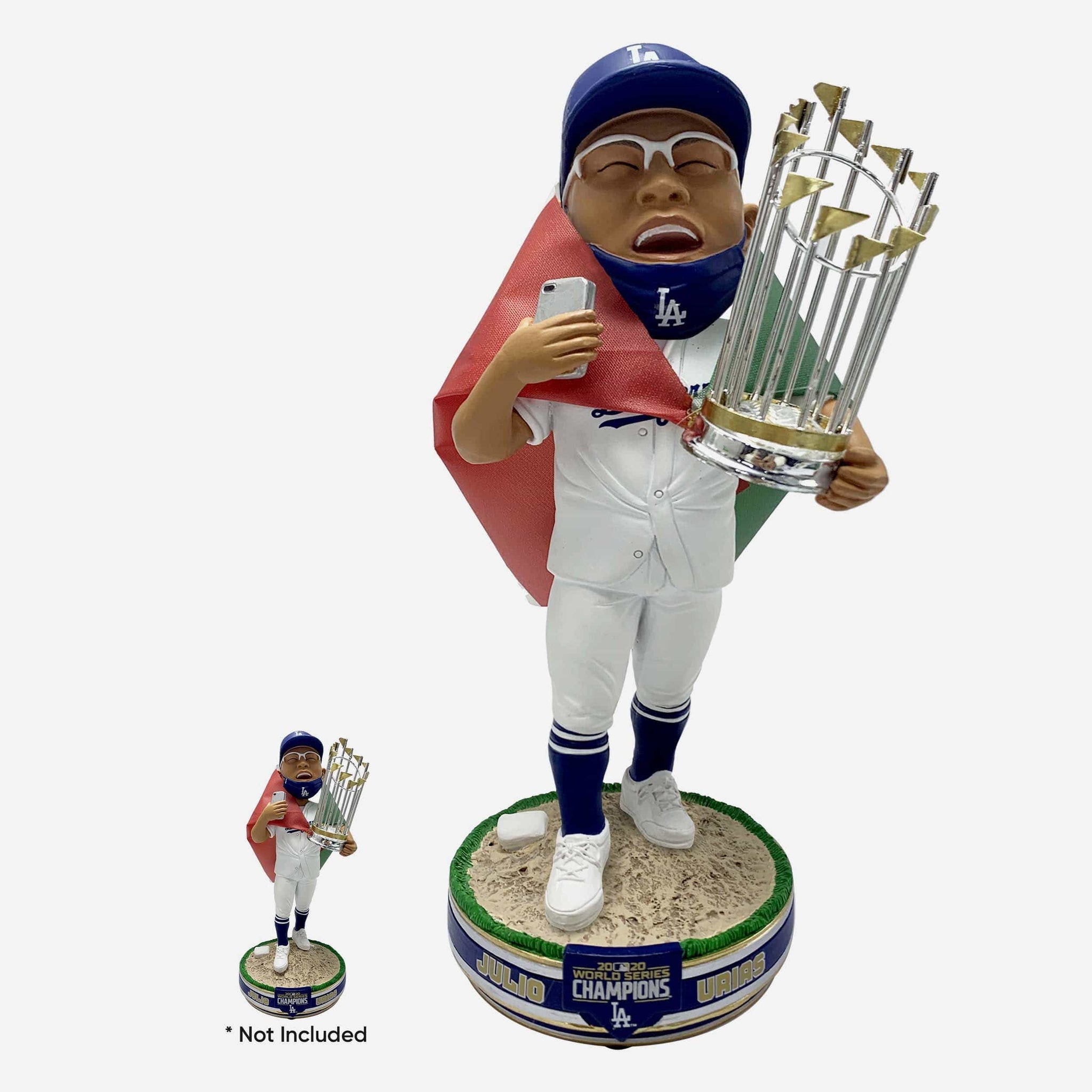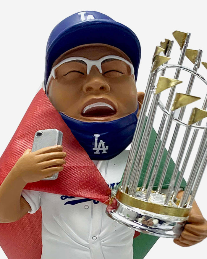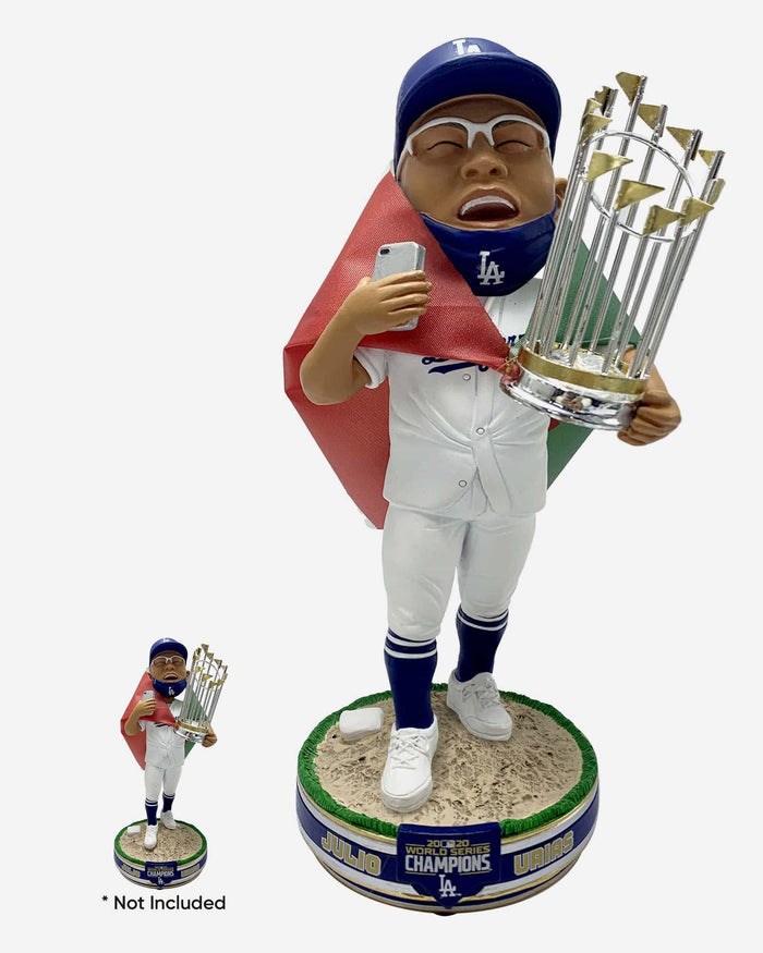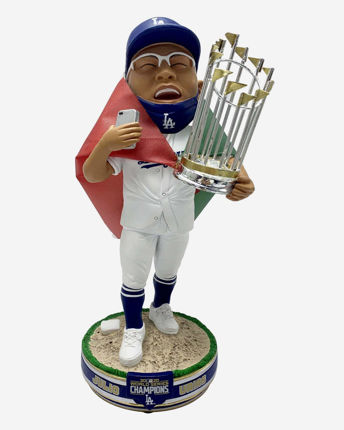 It's time to bobble with the champs, bigger and better than ever before! Go big or go home with the Julio Urias Los Angeles Dodgers 2020 World Series Champions National Flag 3 Ft. Bobblehead!